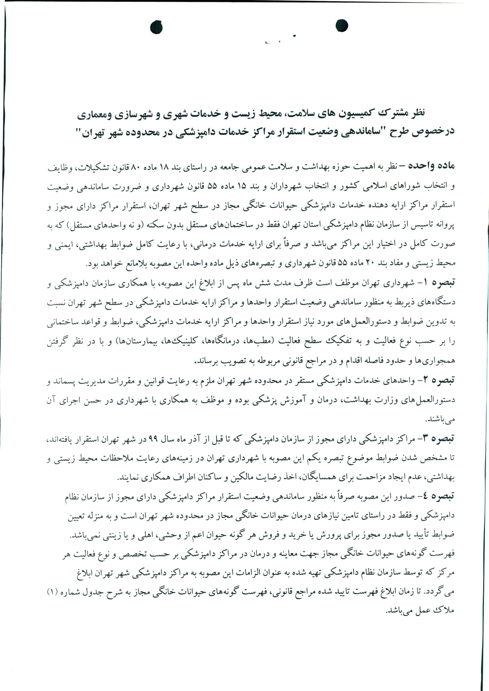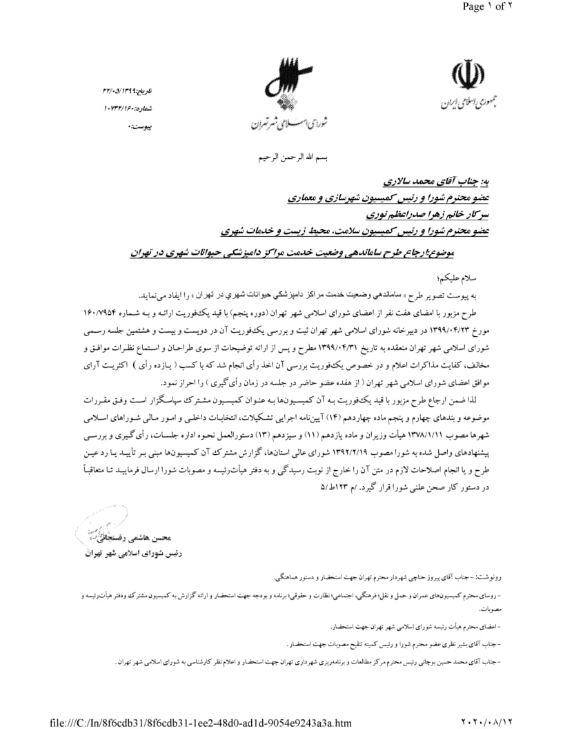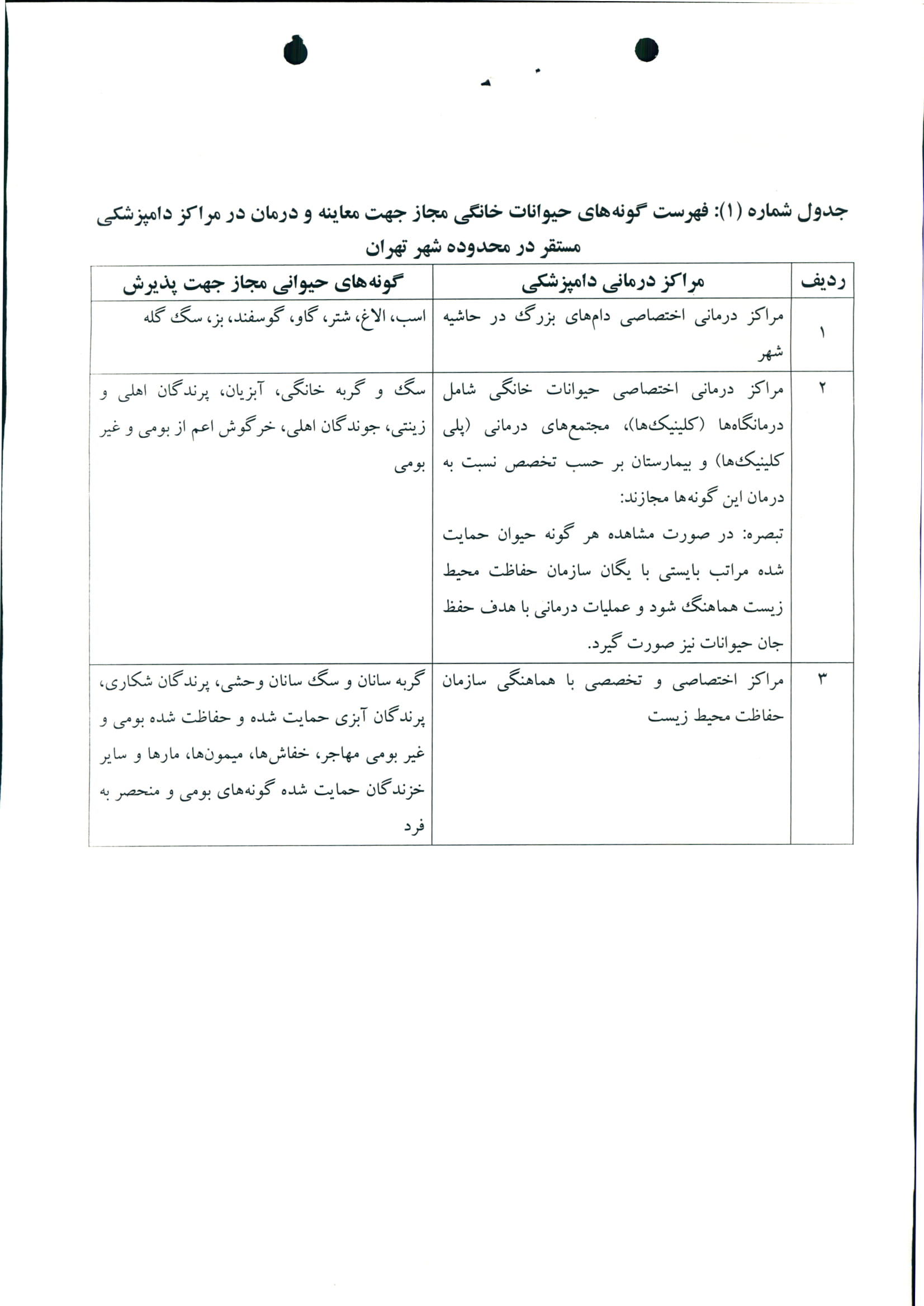 ساماندهي وضعيت استقرار مراكز خدمات دامپزشكي در محدوده شهر تهران