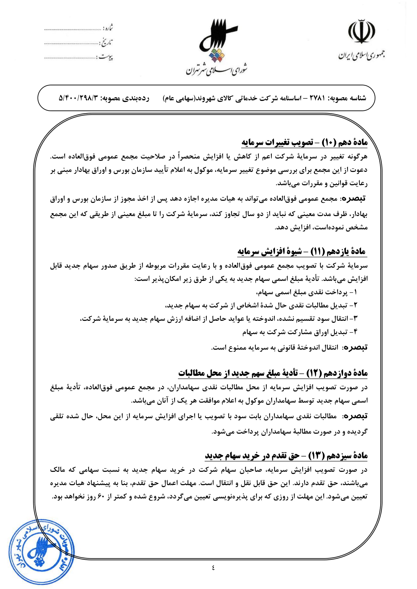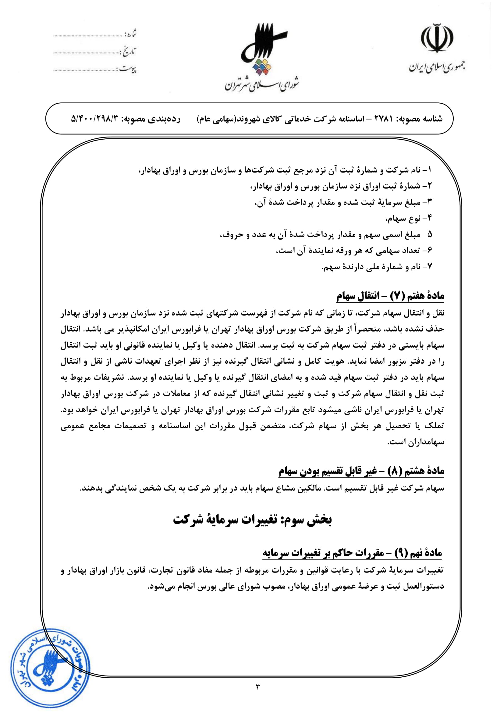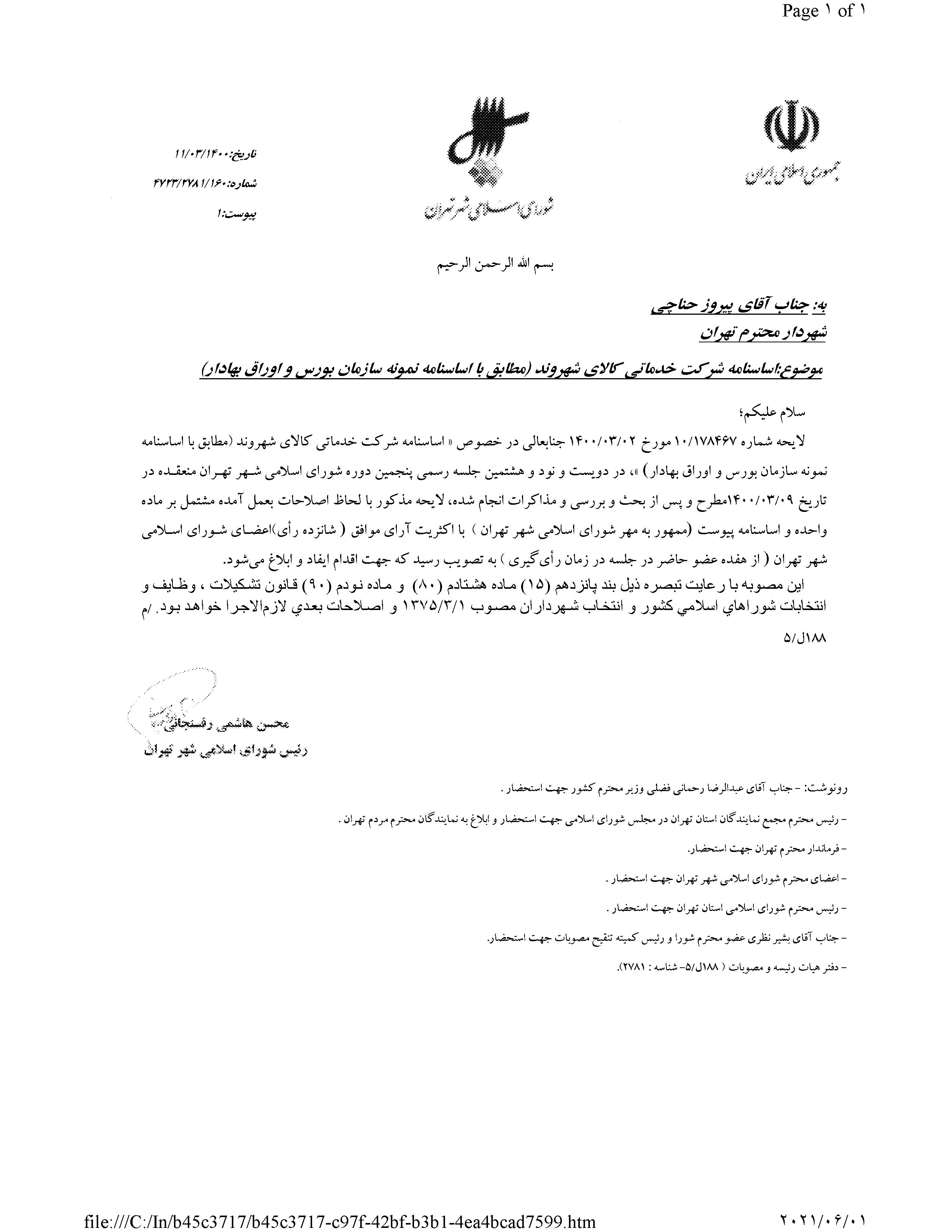 اساسنامه شركت خدماتي كالاي شهروند (مطابق با اساسنامه نمونه سازمان بورس اوراق بهادار)
