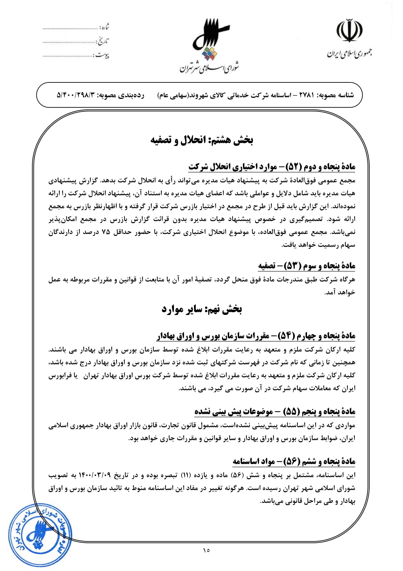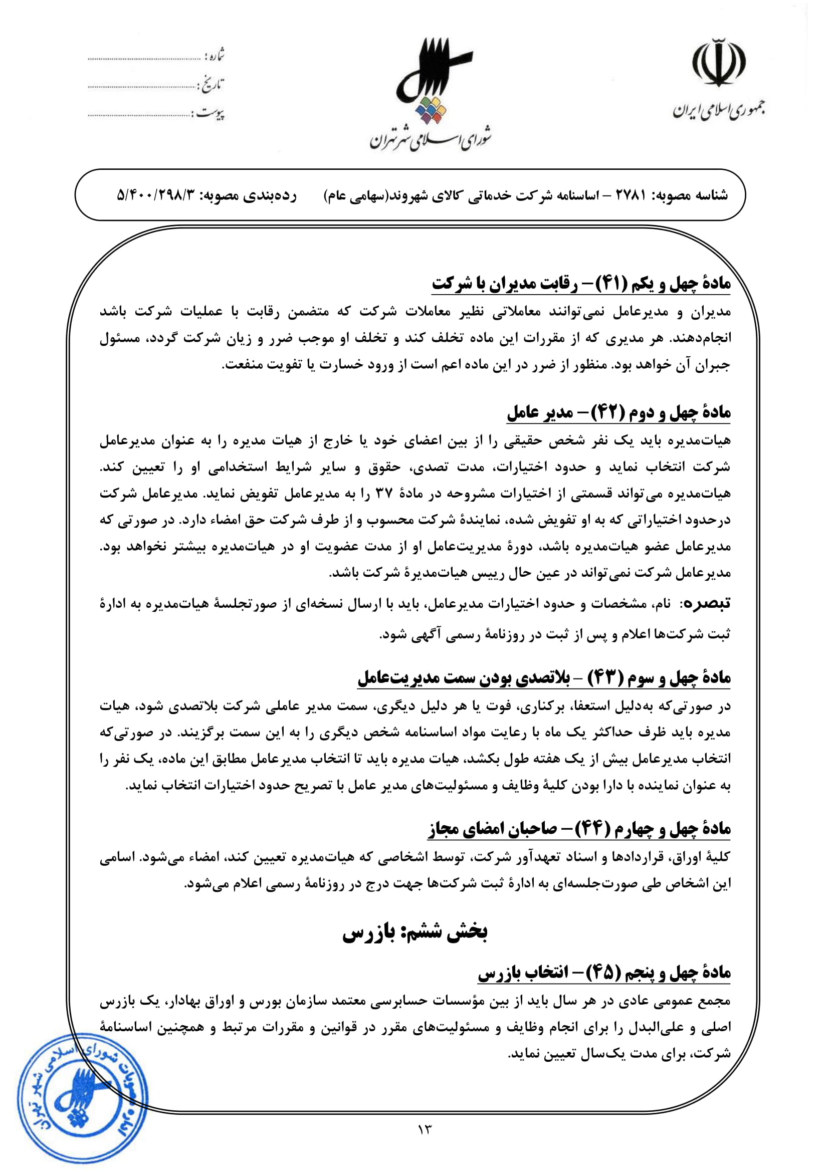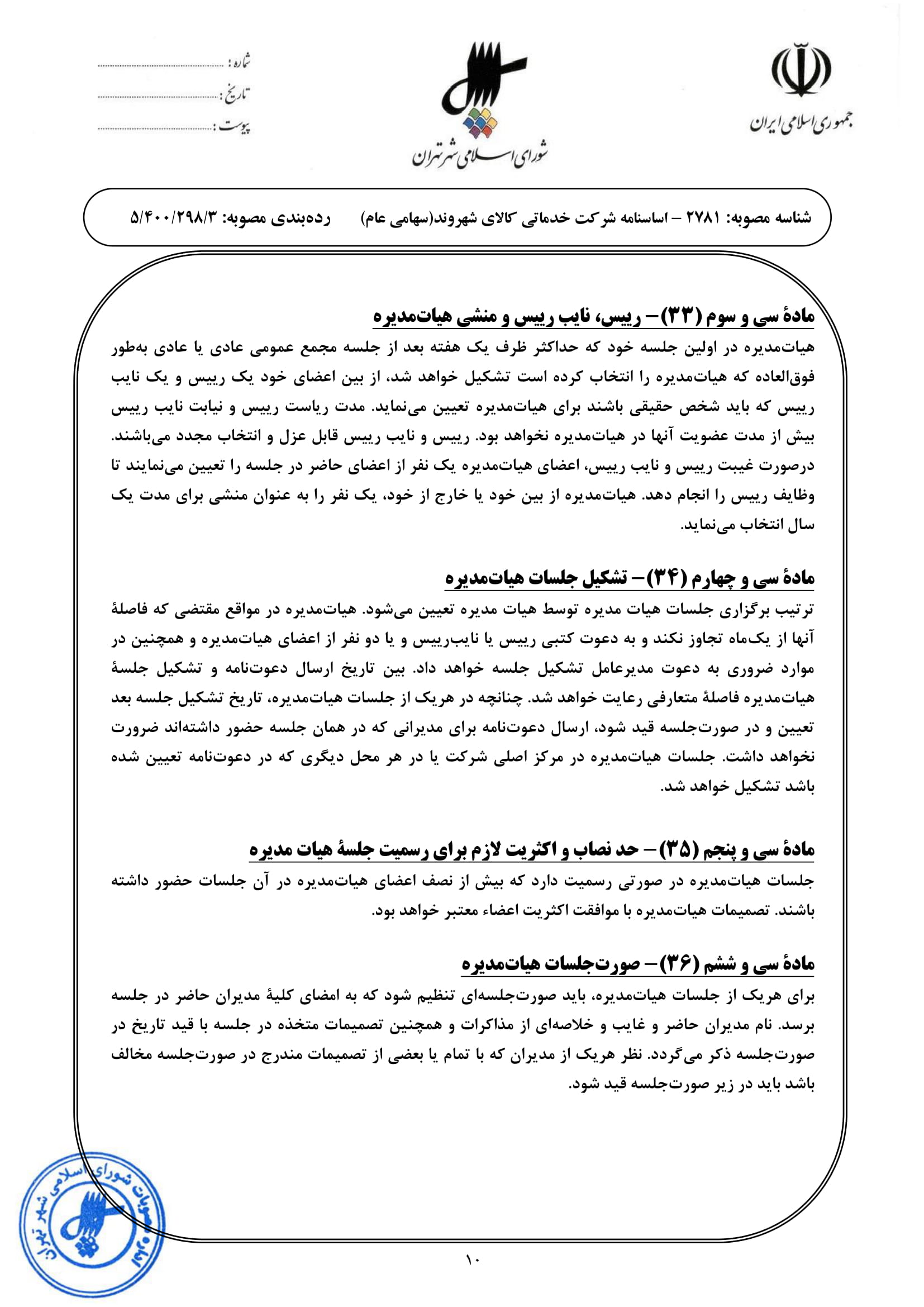 اساسنامه شركت خدماتي كالاي شهروند (مطابق با اساسنامه نمونه سازمان بورس اوراق بهادار)