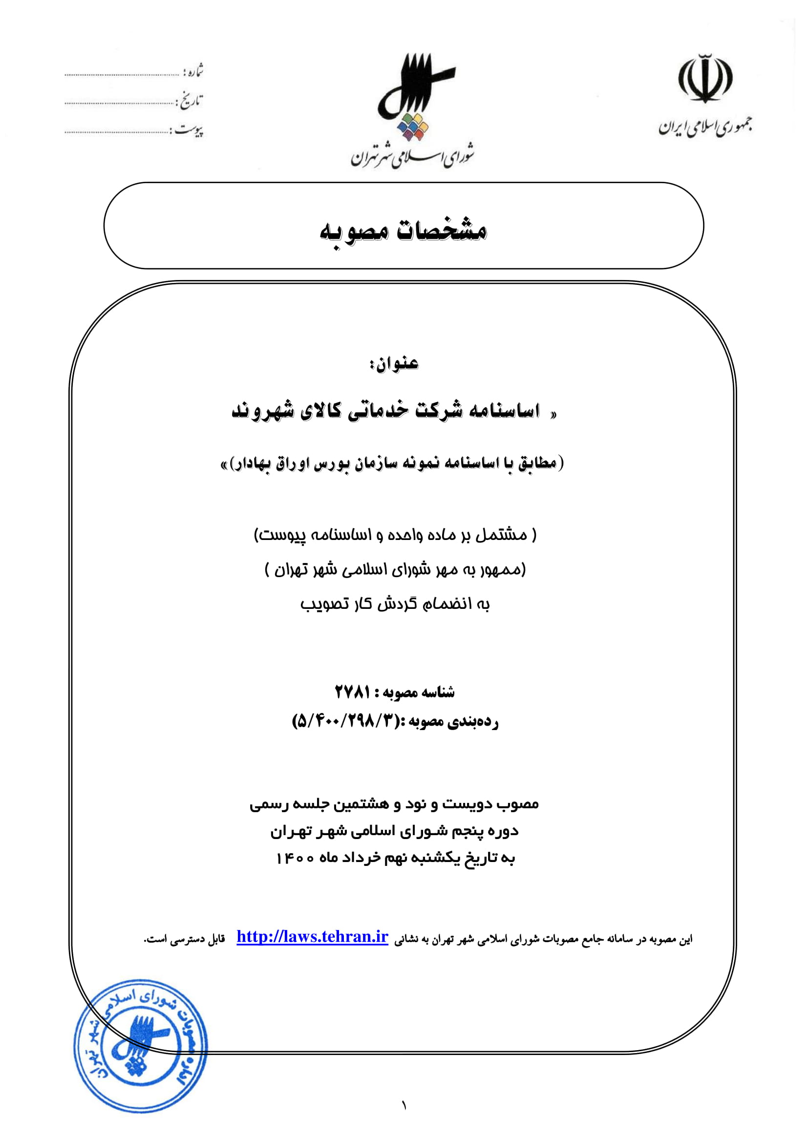 معرفی سامانه جامع مصوبات شورای اسلامی شهر تهران