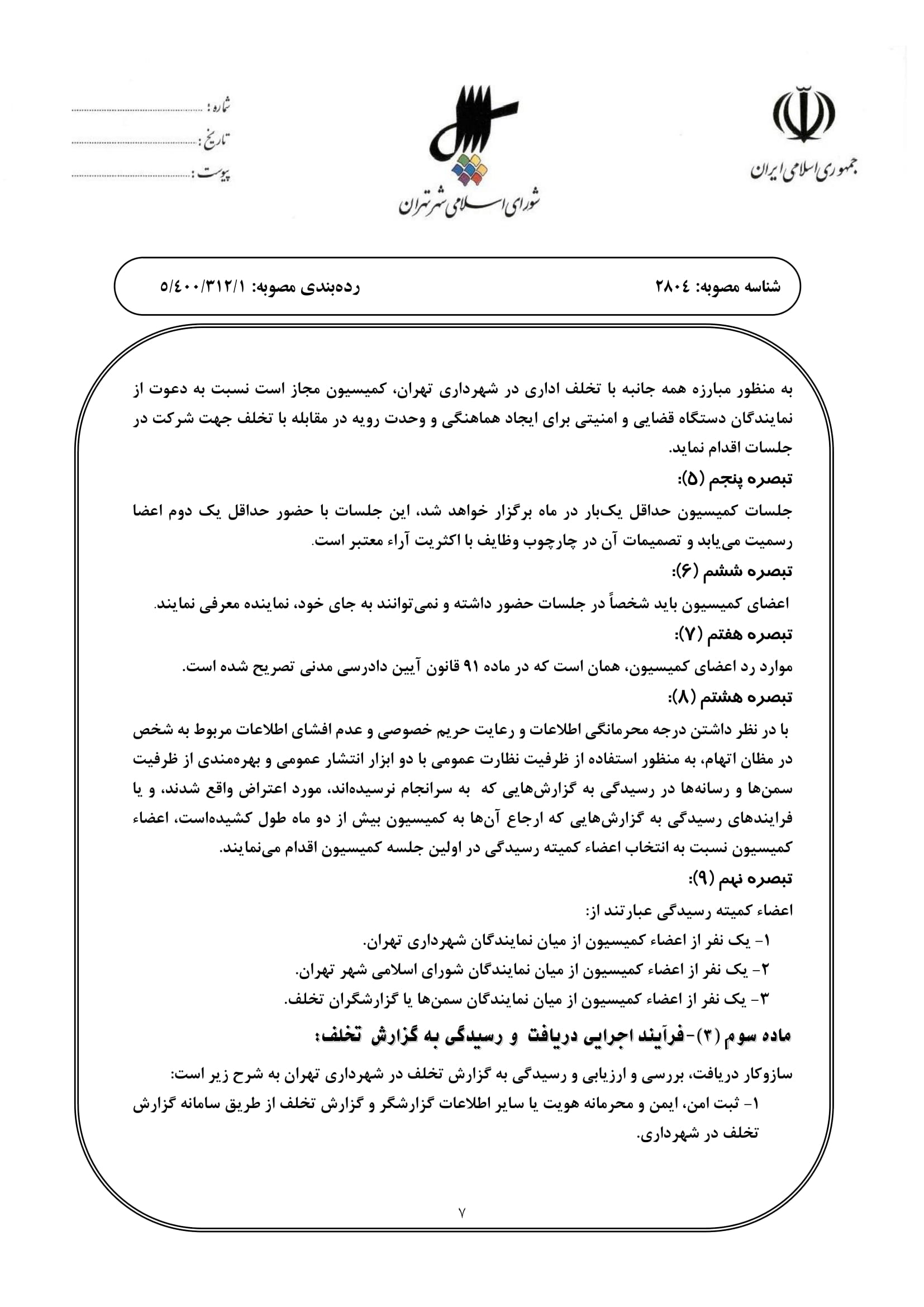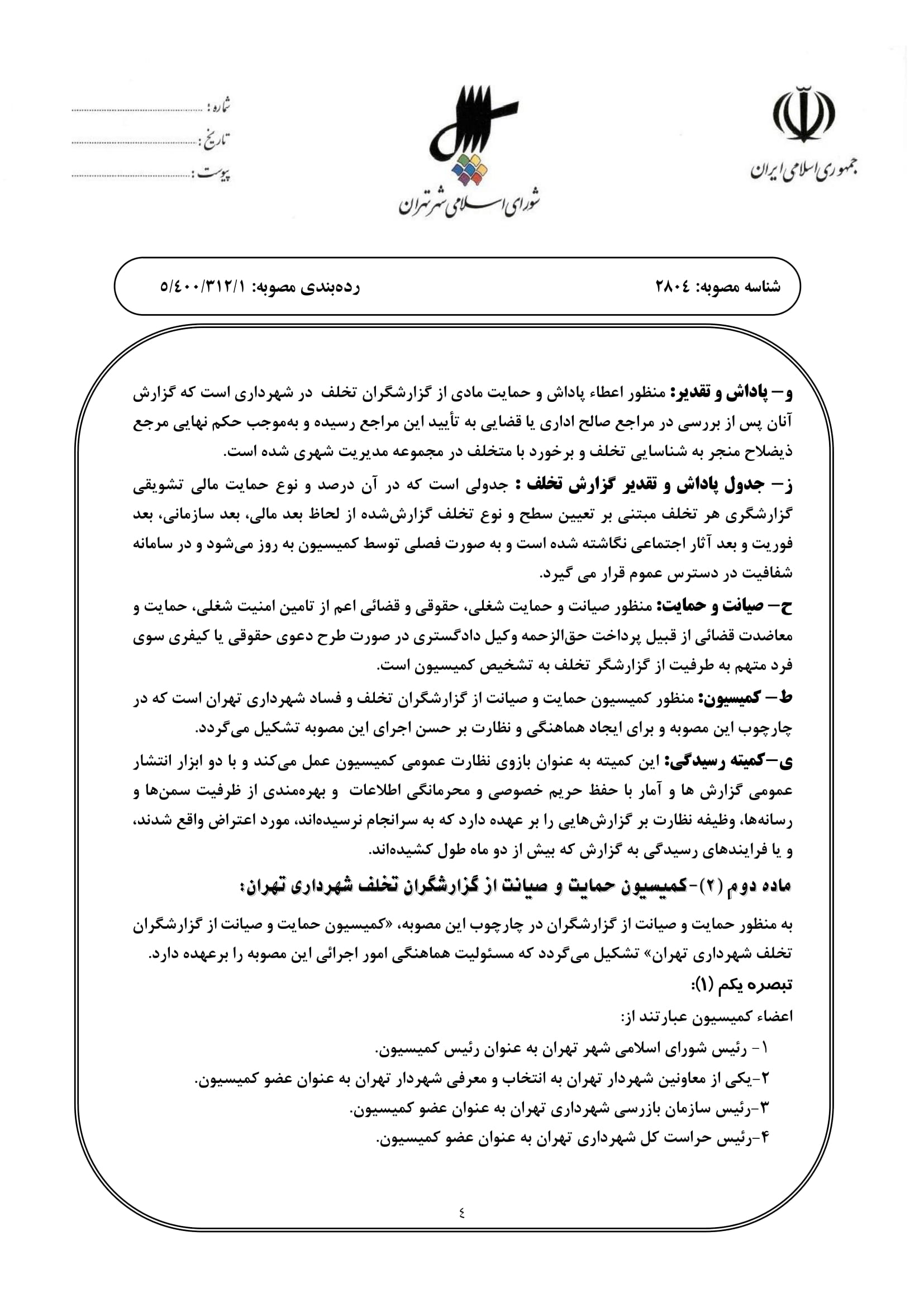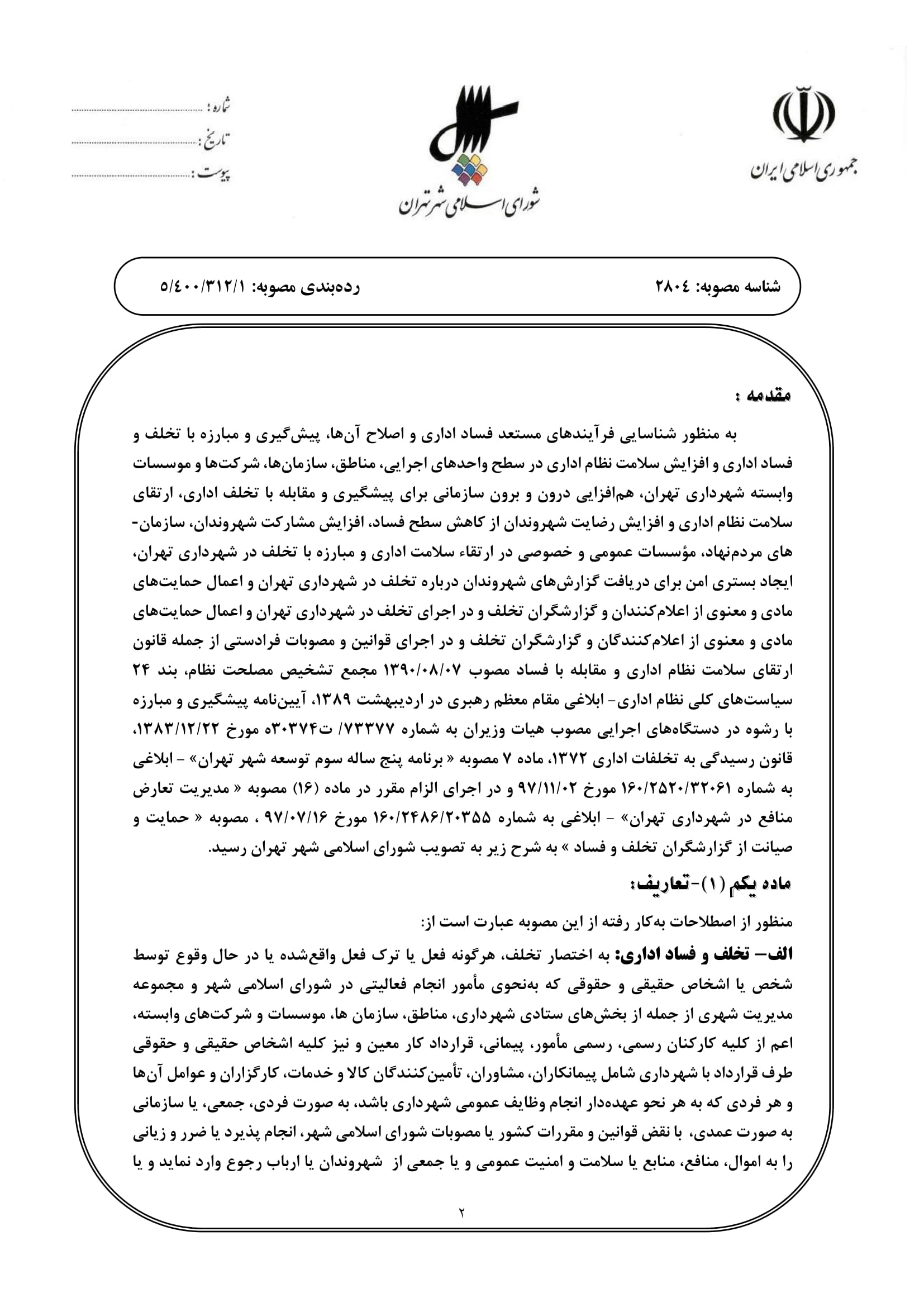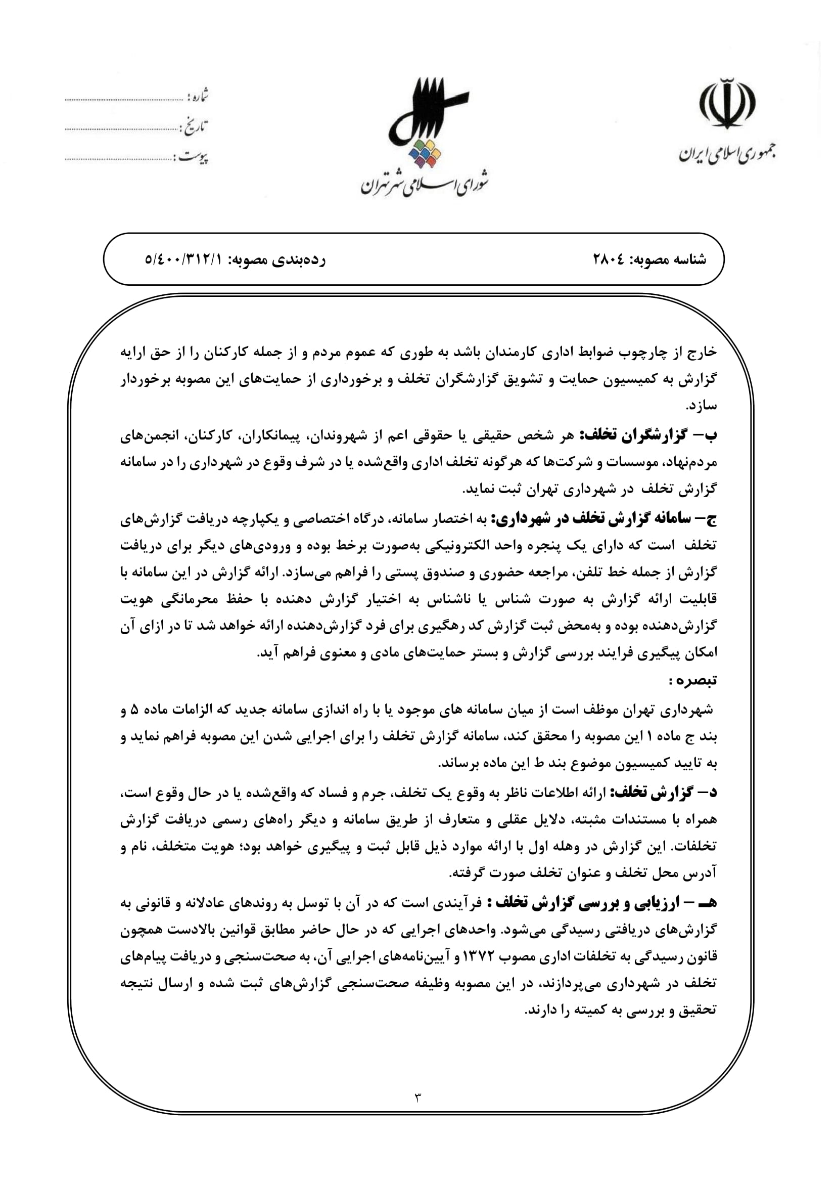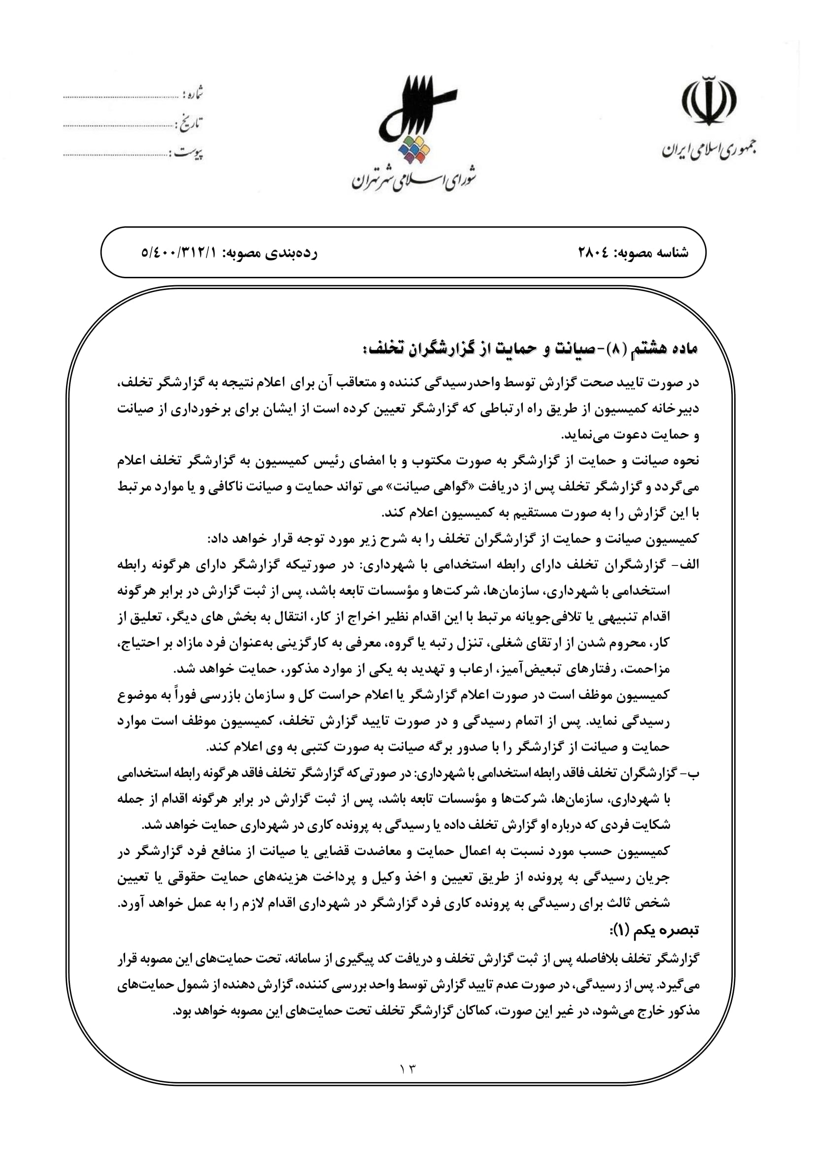 حمايت و صيانت از گزارشگران تخلف و فساد در شهرداري تهران