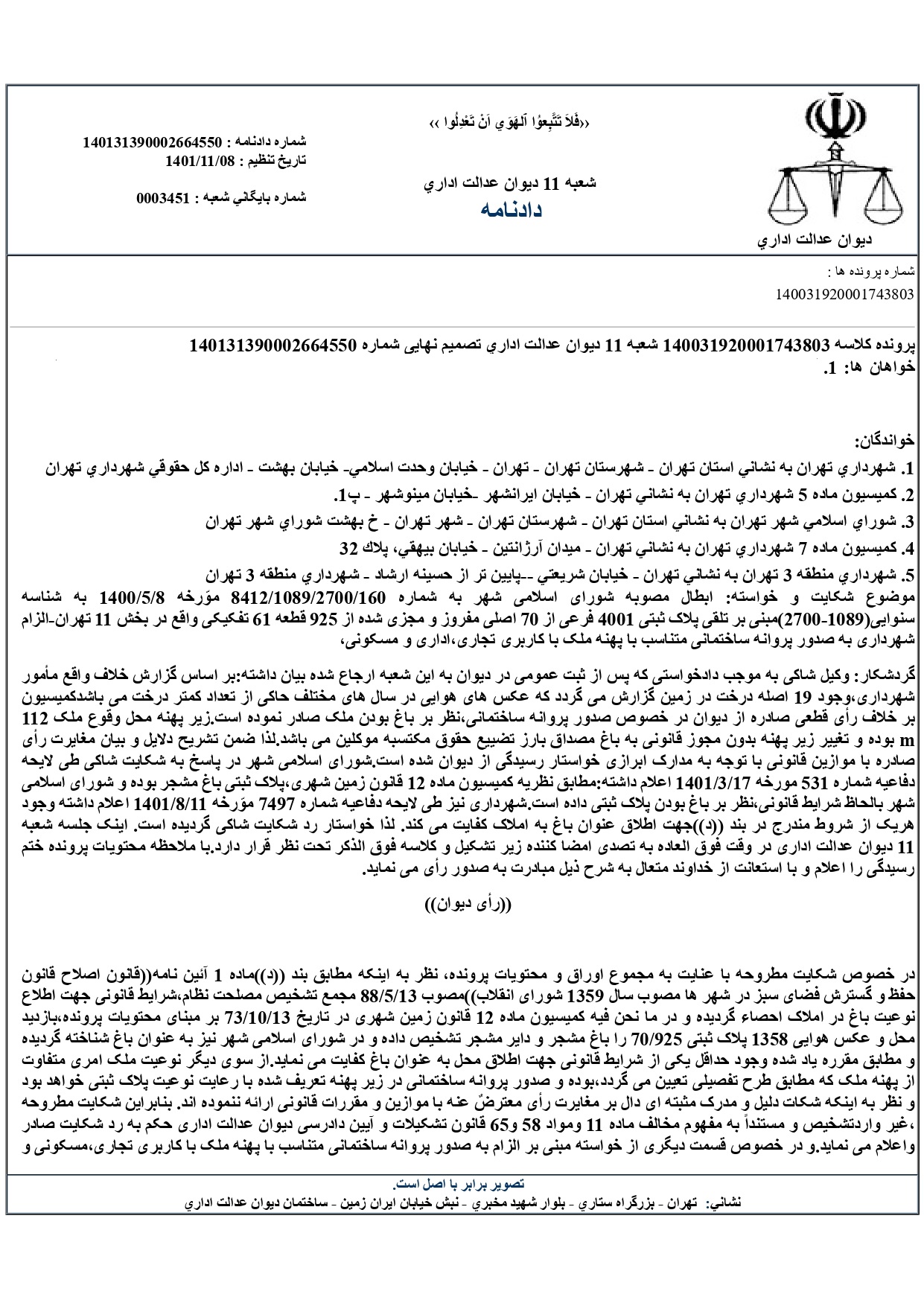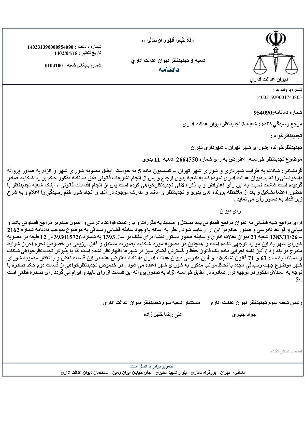 رای شعبه دیوان عدالت اداری