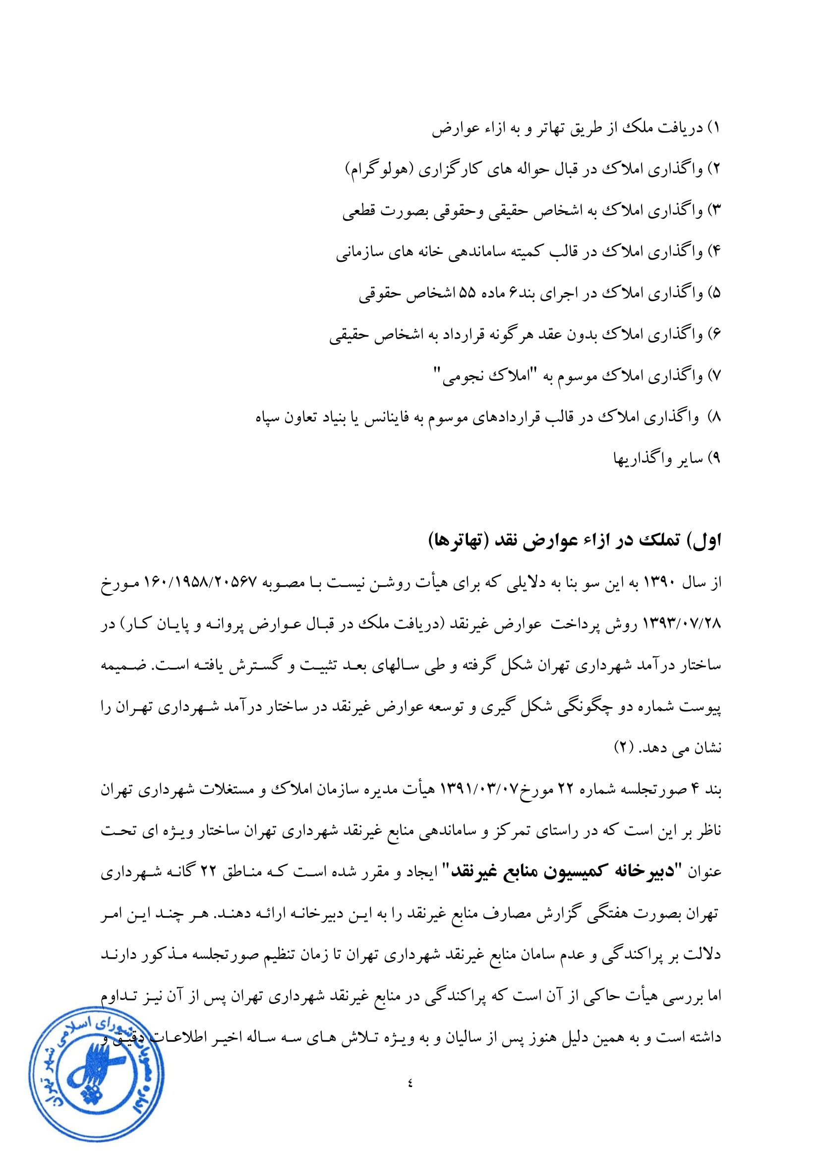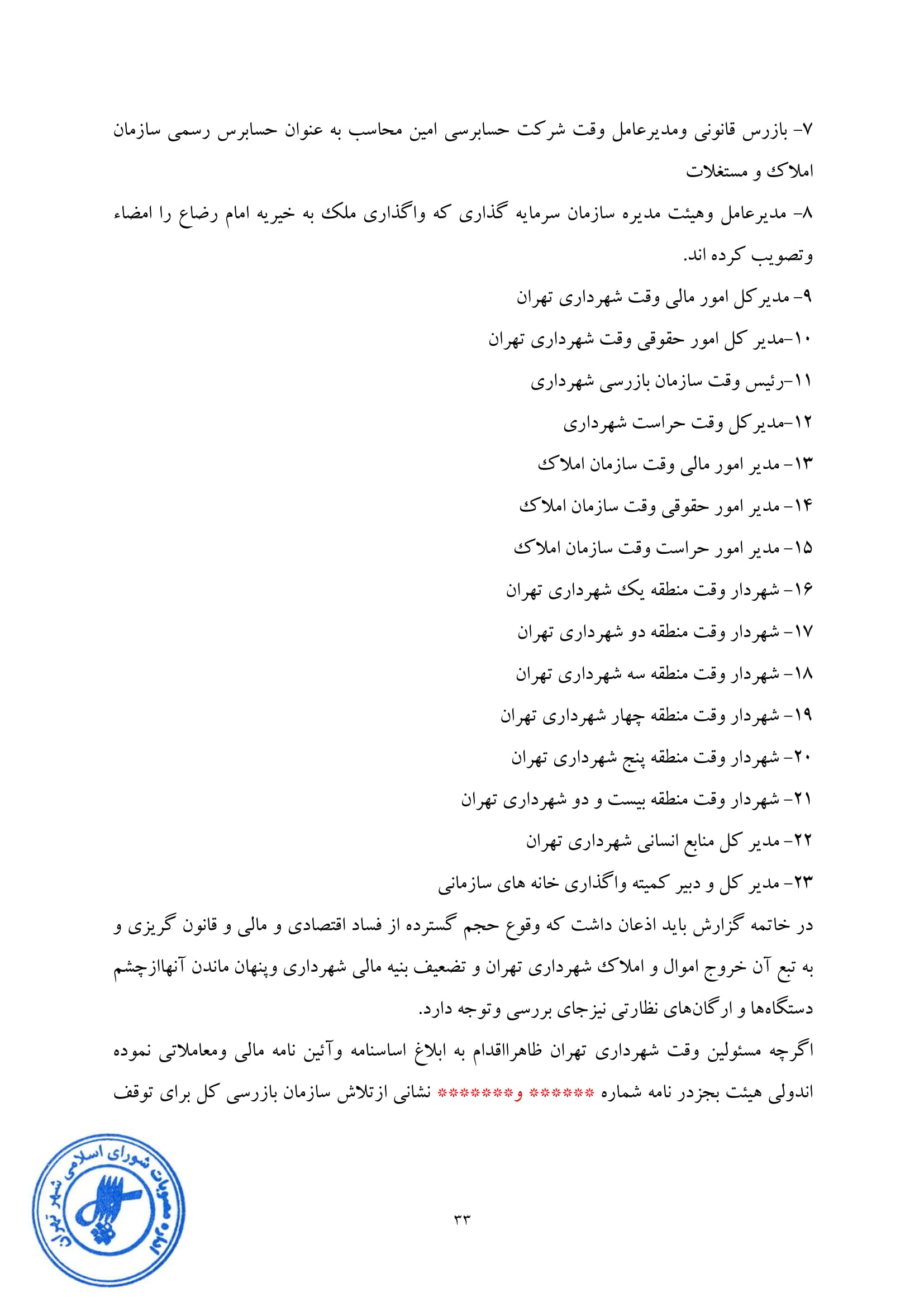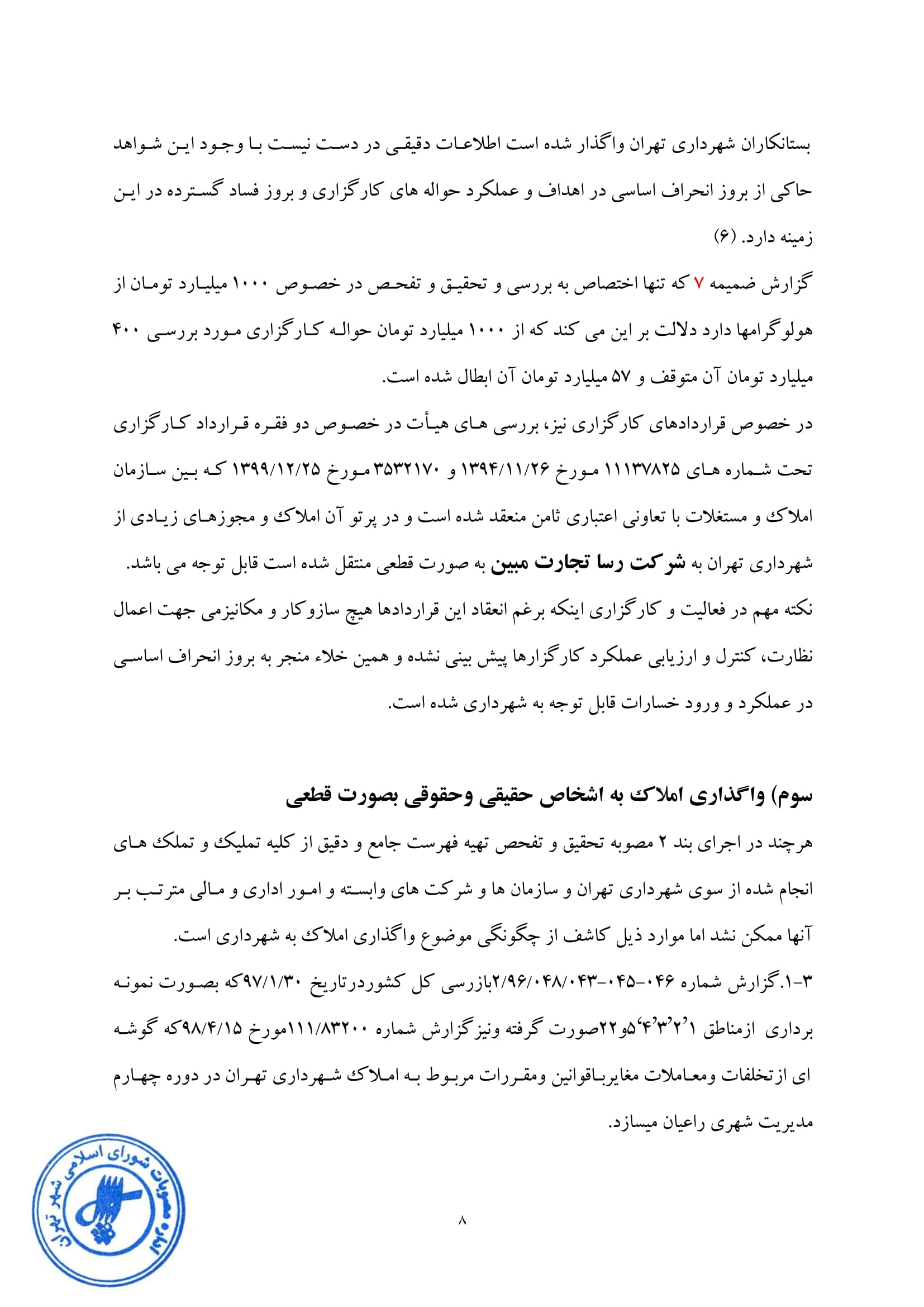 تصويب گزارش تحقيق و تفحص از نحوه واگذاري املاك و مستغلات شهرداري تهران