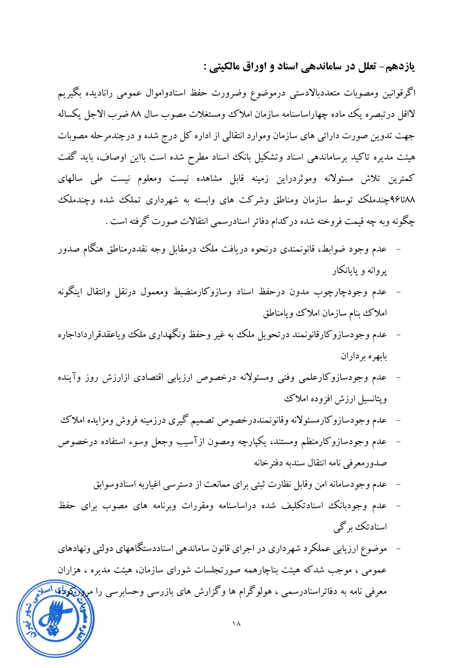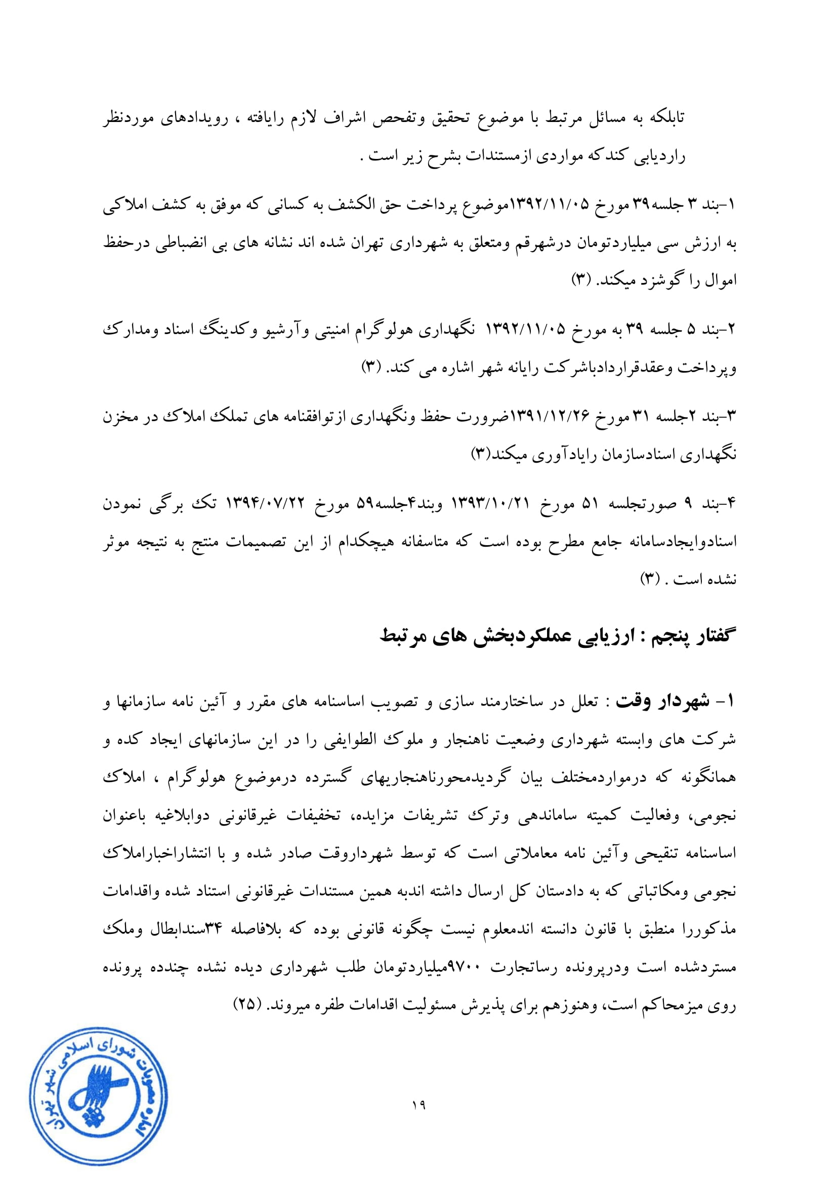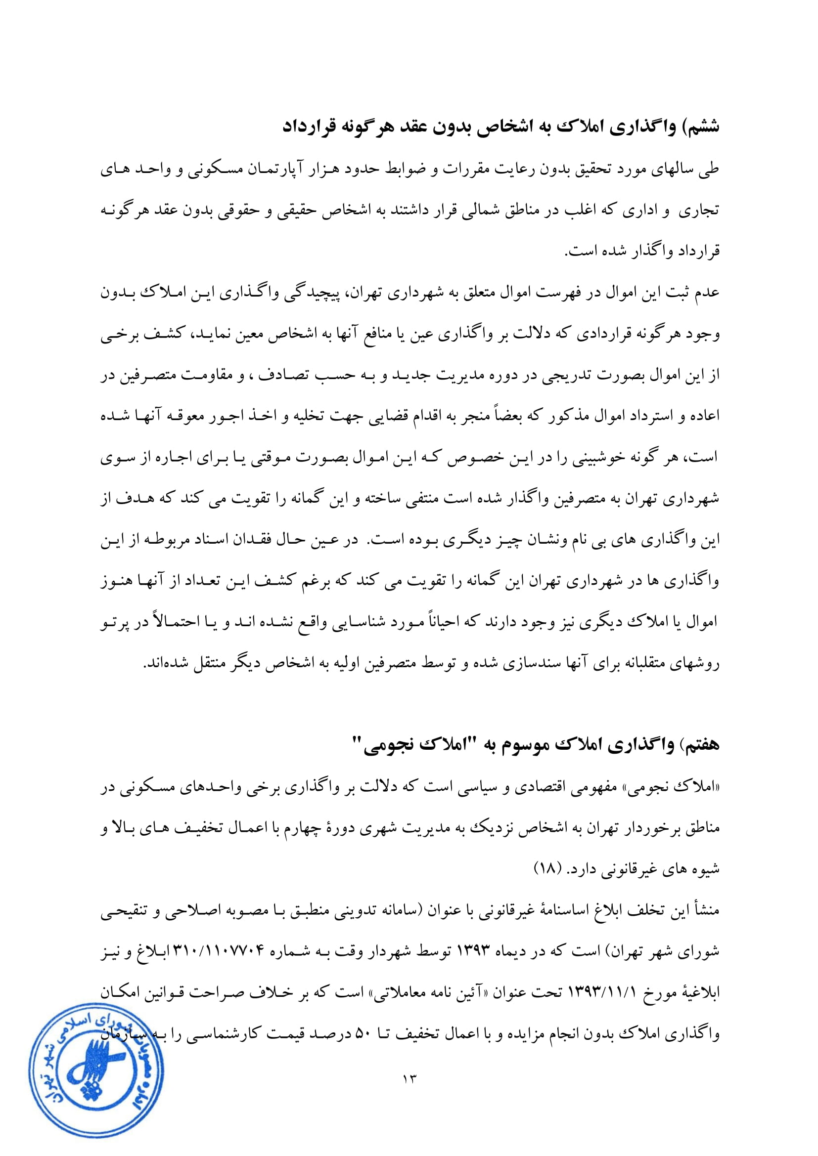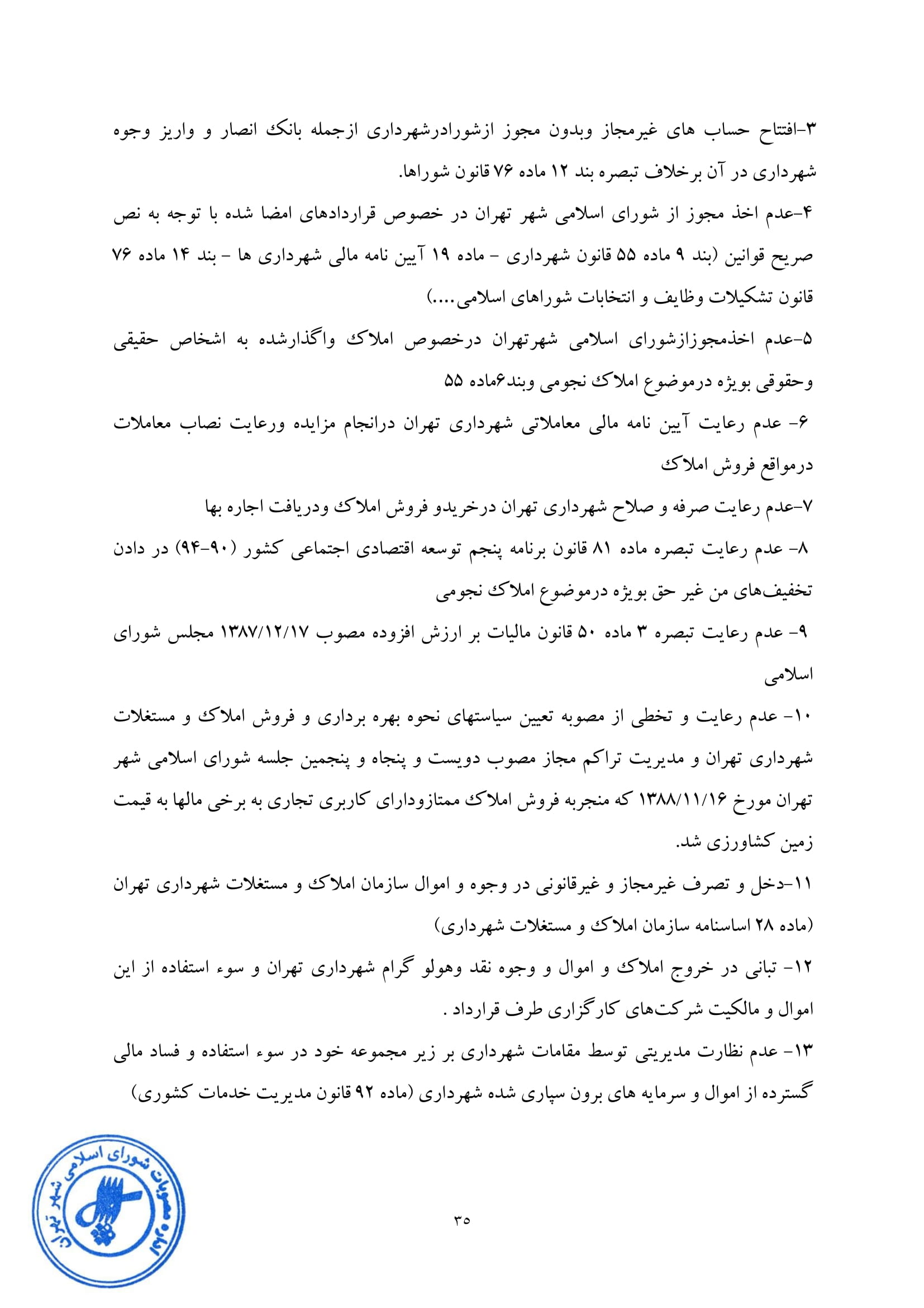 تصويب گزارش تحقيق و تفحص از نحوه واگذاري املاك و مستغلات شهرداري تهران
