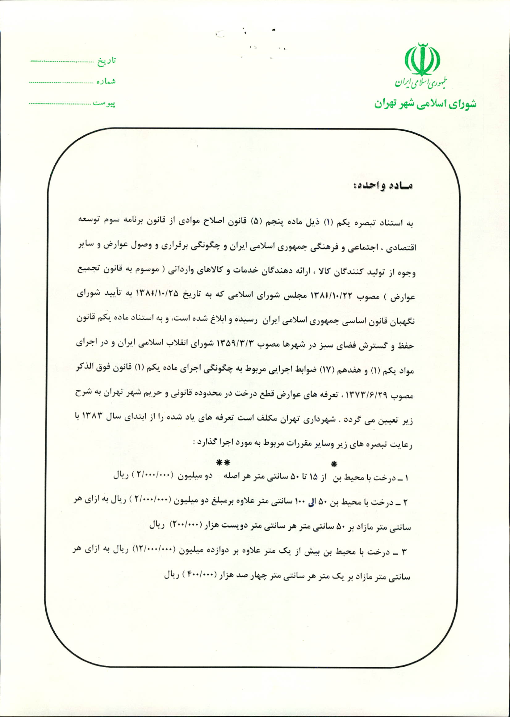 اصلاحيه عوارض حفظ و گسترش فضاي سبز