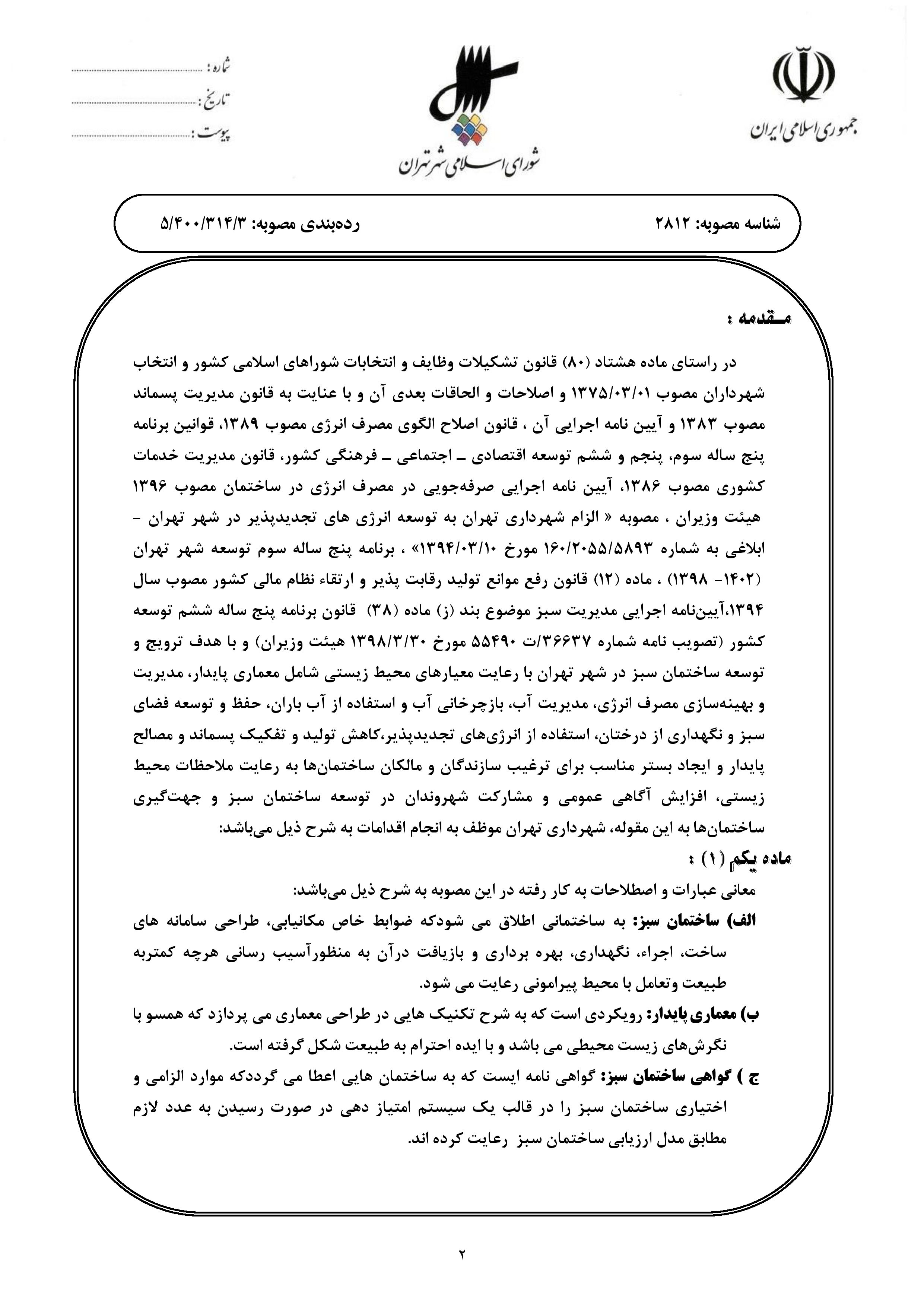 توسعه ساختمان سبز و معماري پايدار در شهر تهران