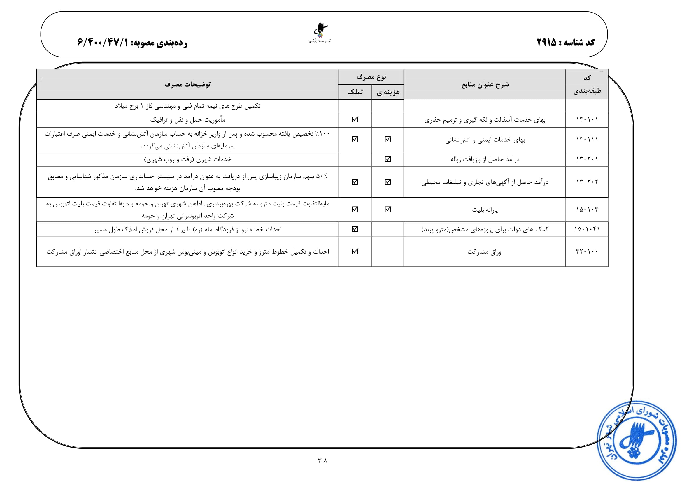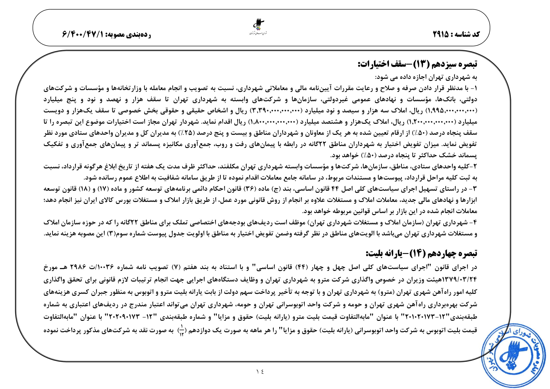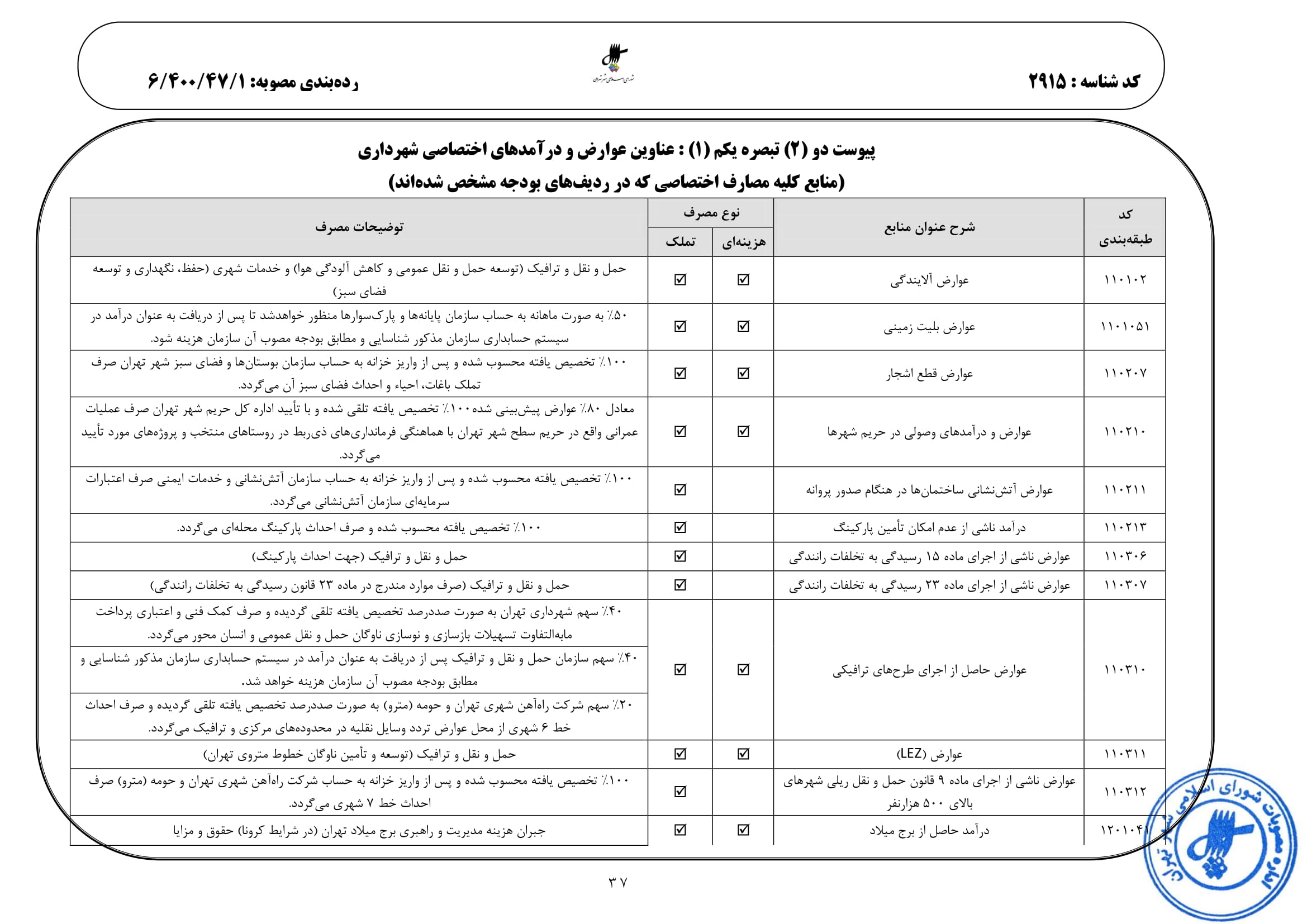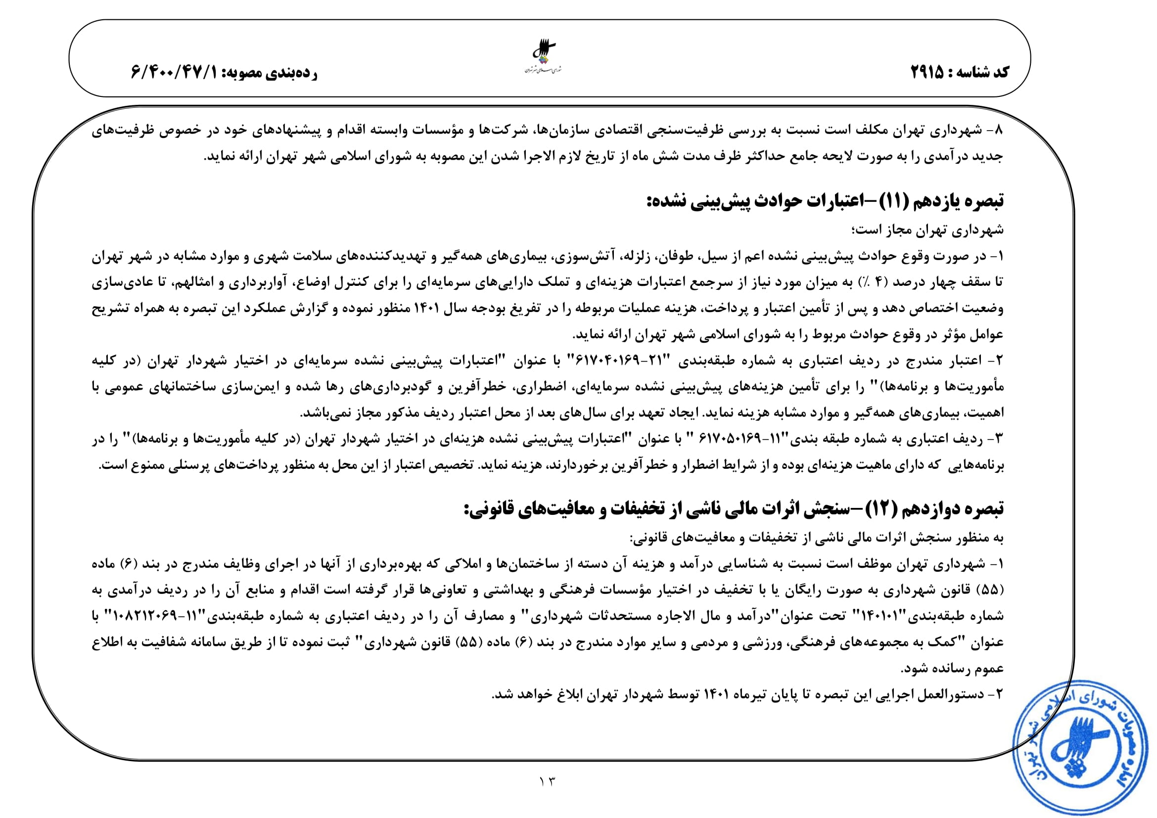 بودجه سال 1401 شهرداري تهران و سازمان‌ها و شركت‌هاي تابعه