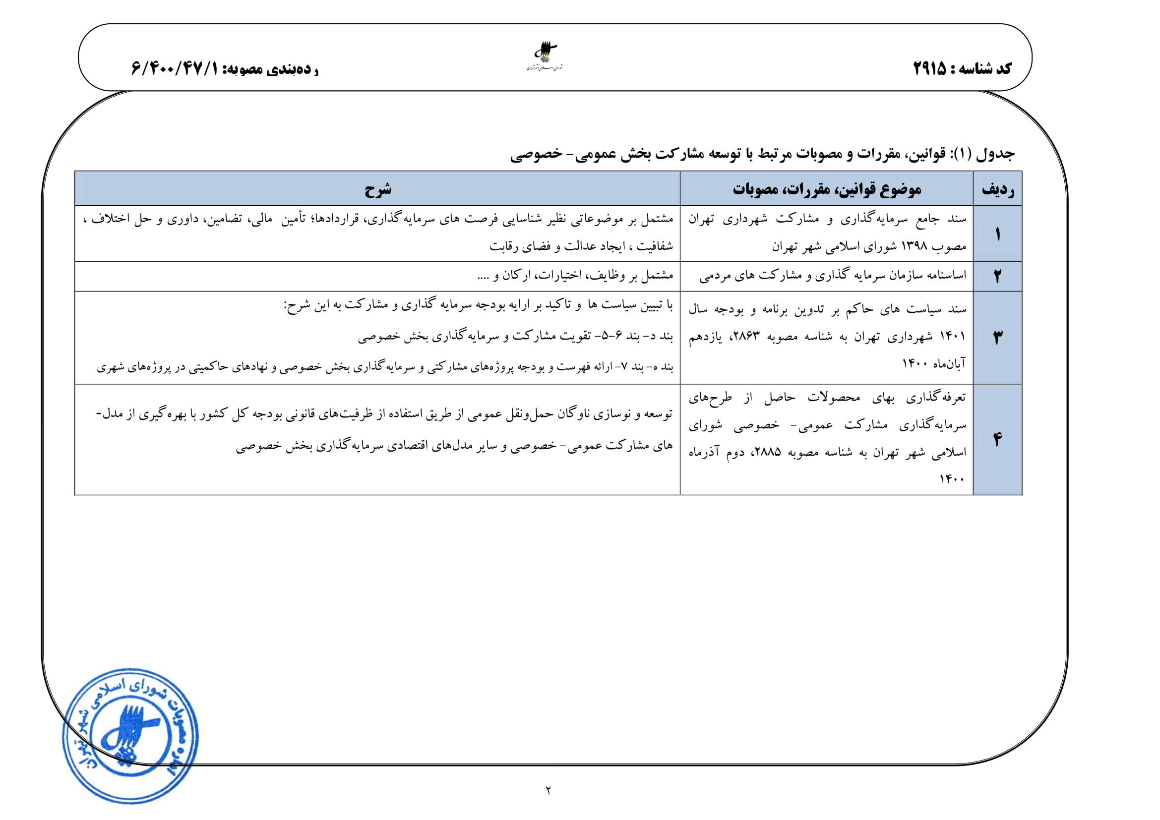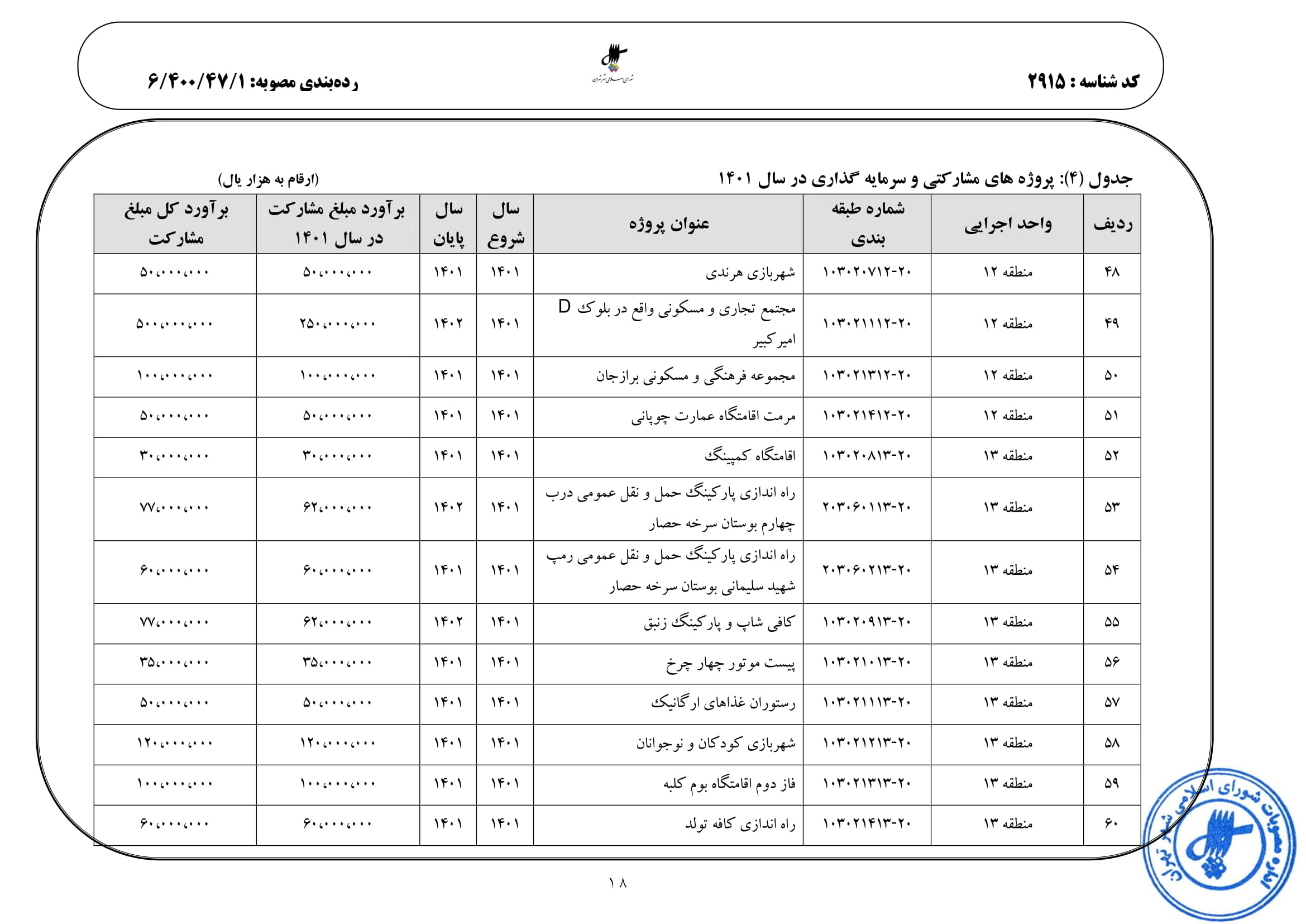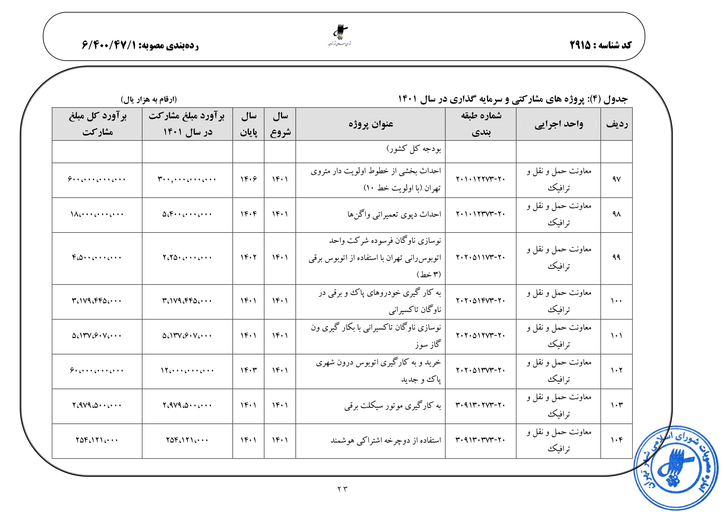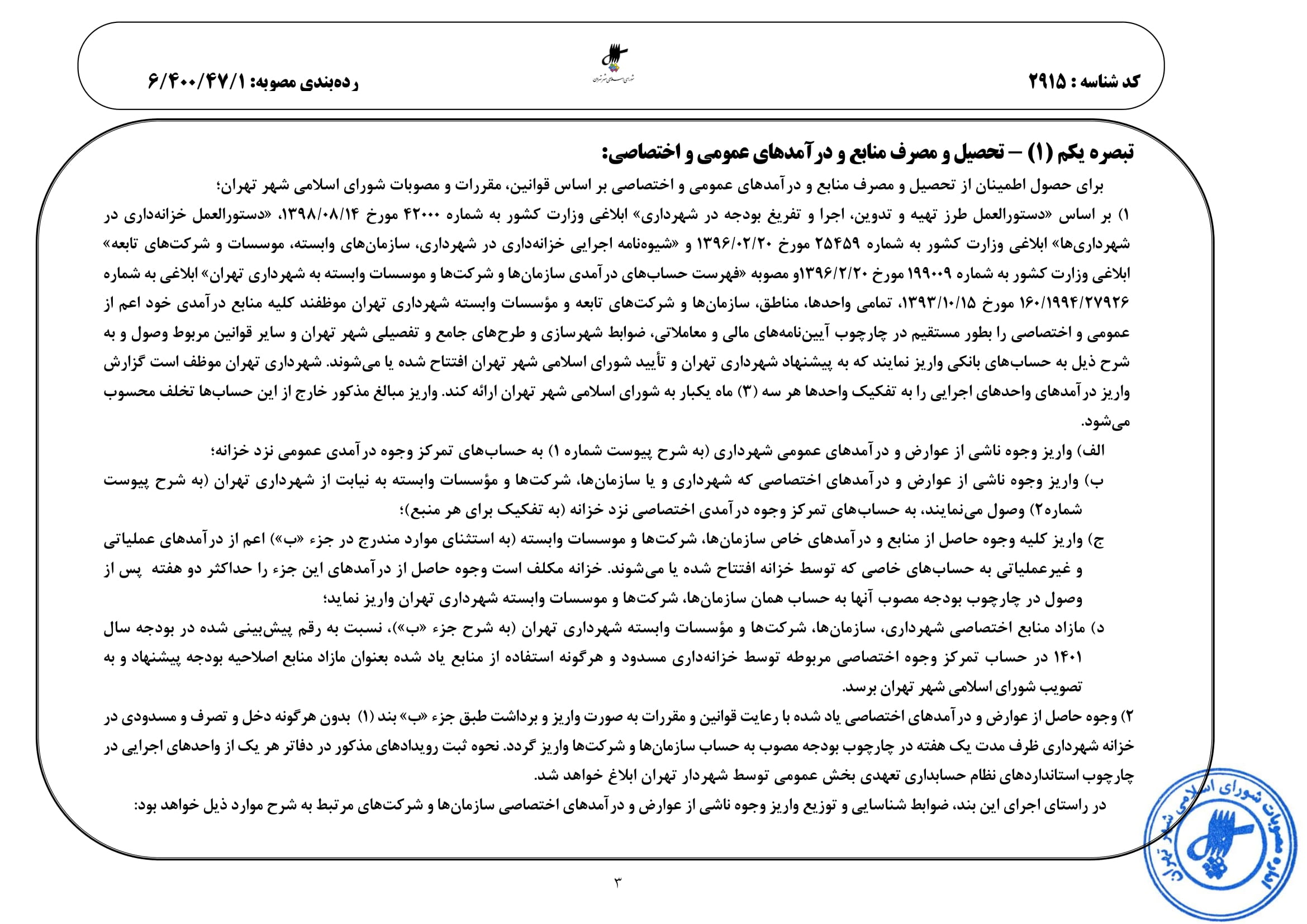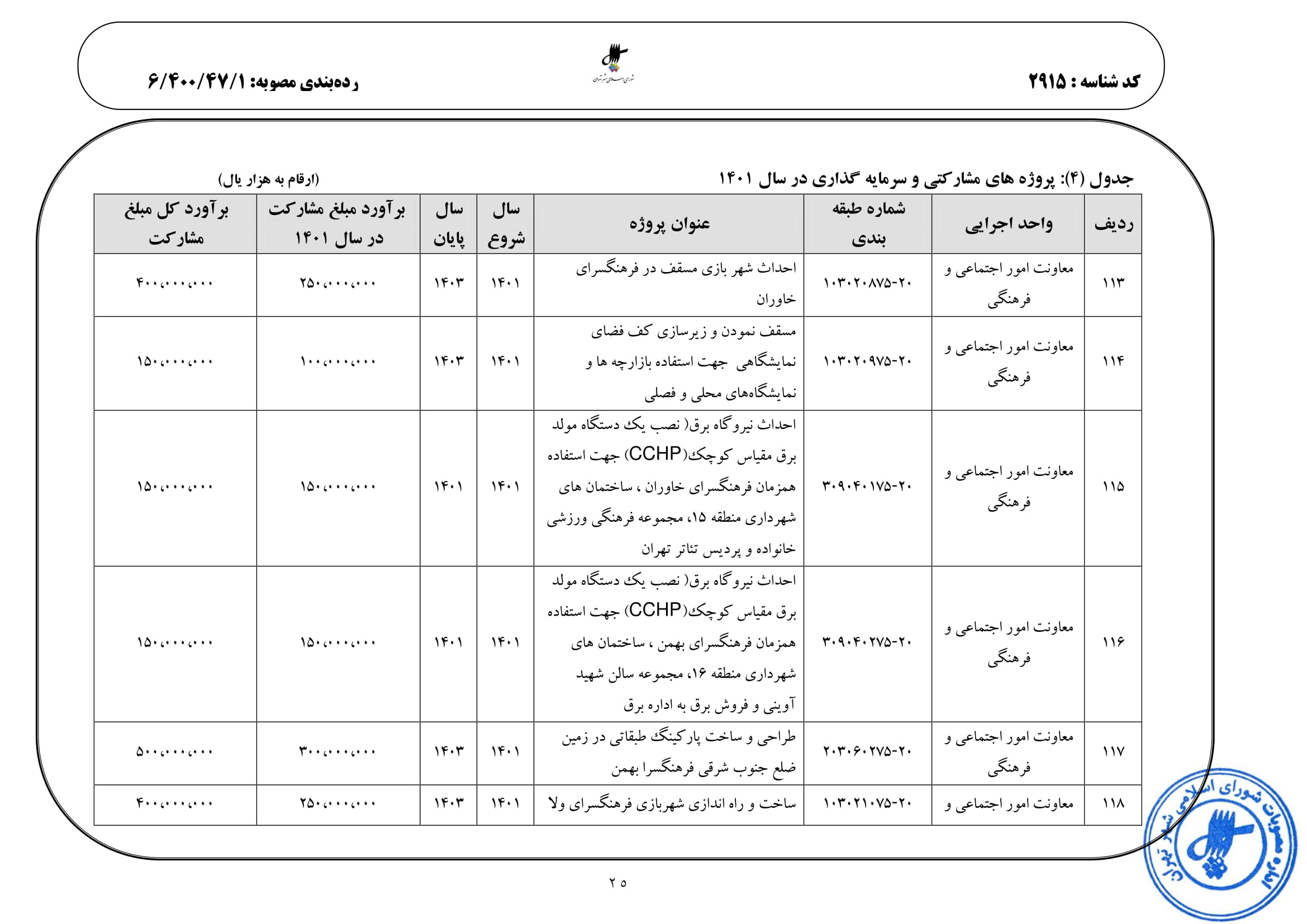 بودجه سال 1401 شهرداري تهران و سازمان‌ها و شركت‌هاي تابعه