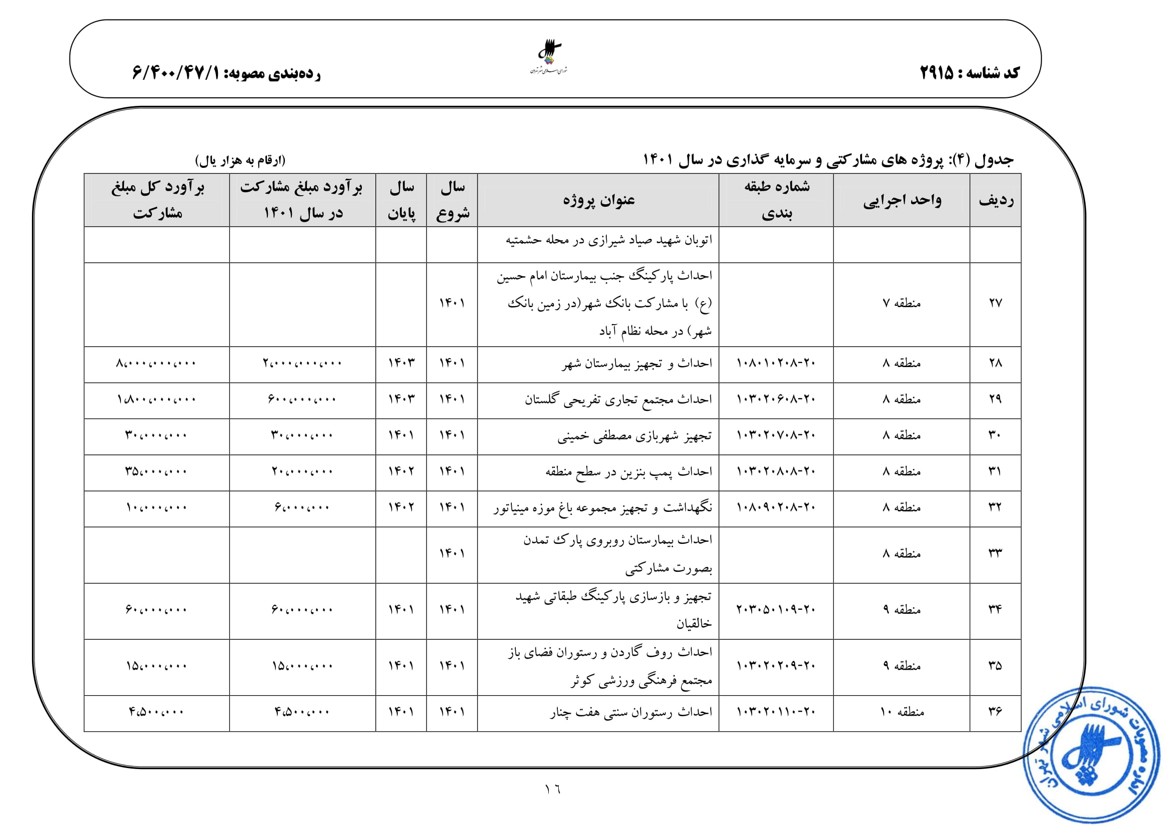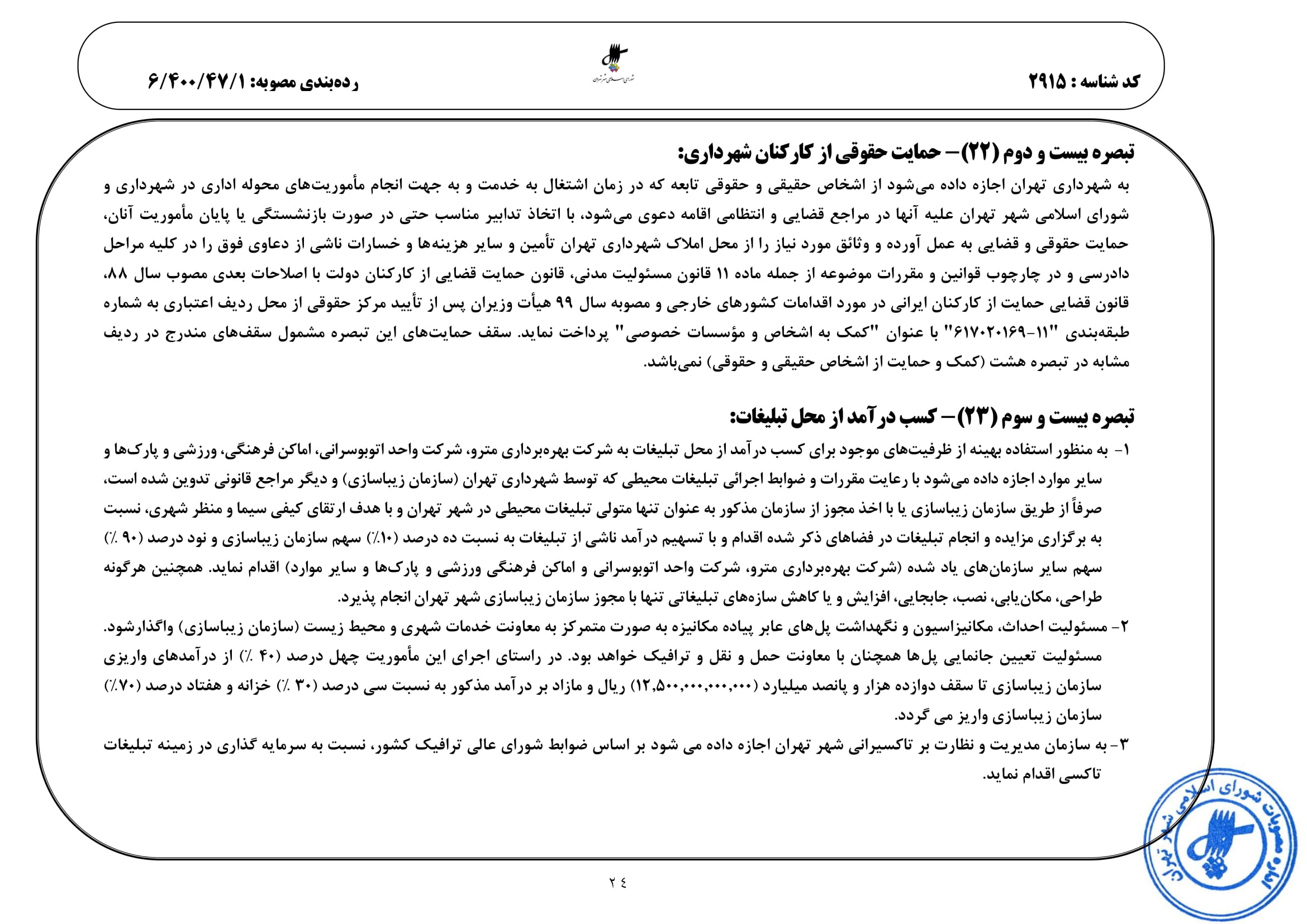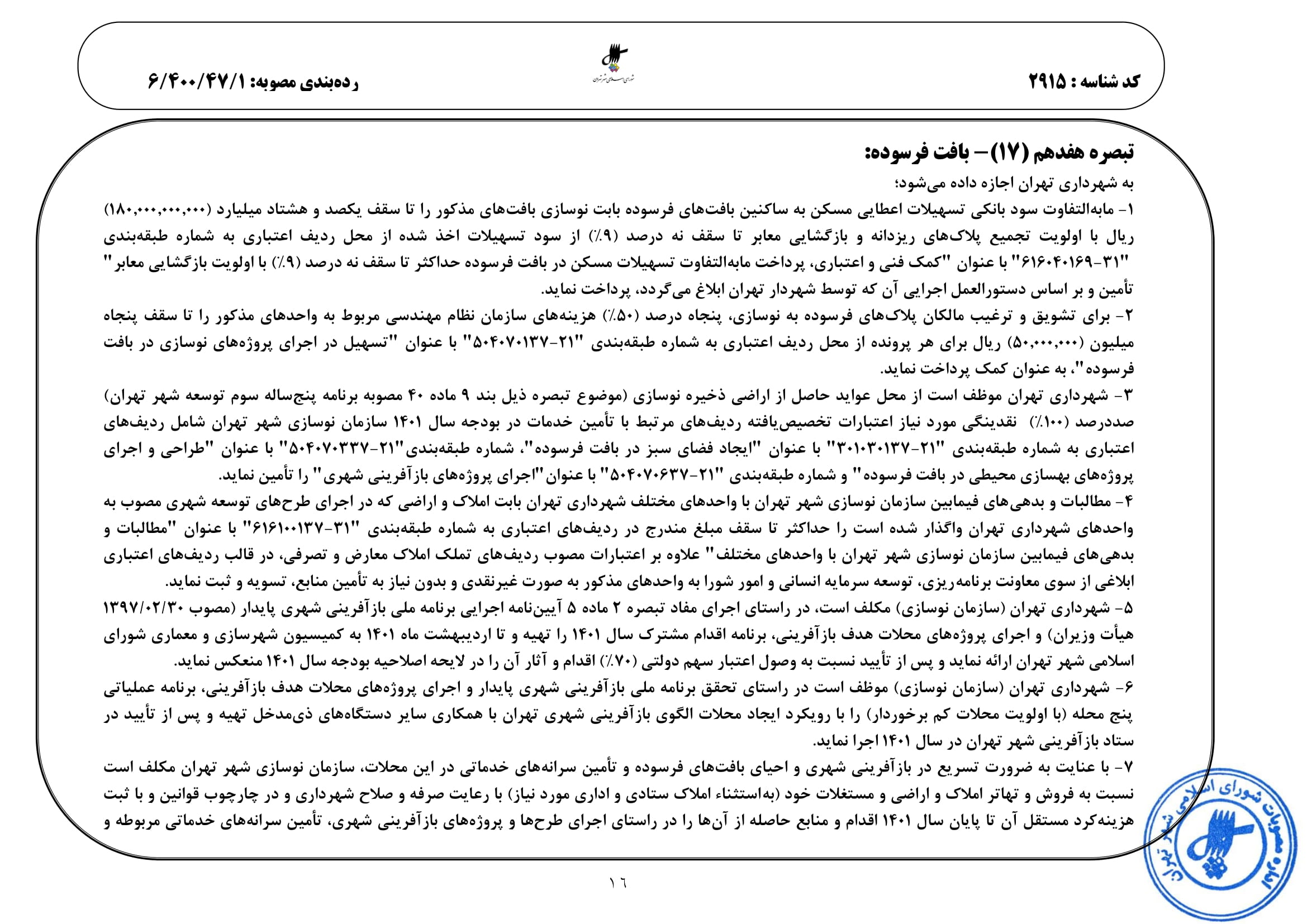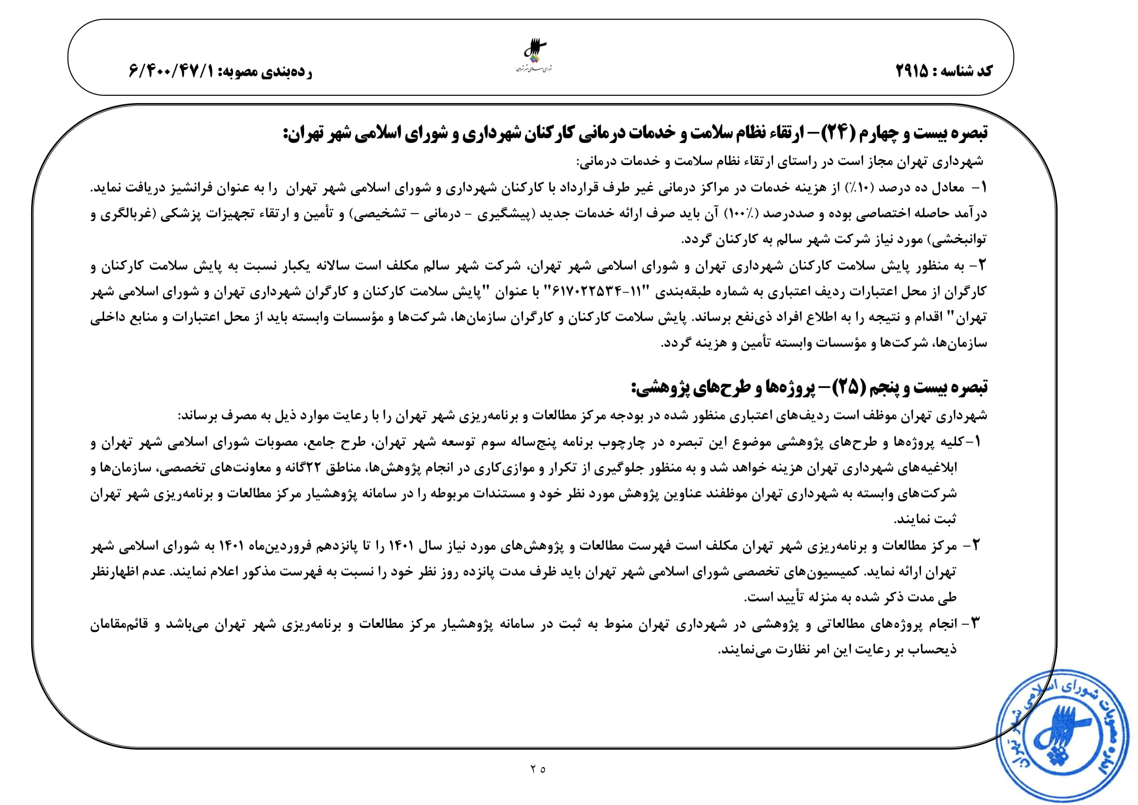 بودجه سال 1401 شهرداري تهران و سازمان‌ها و شركت‌هاي تابعه