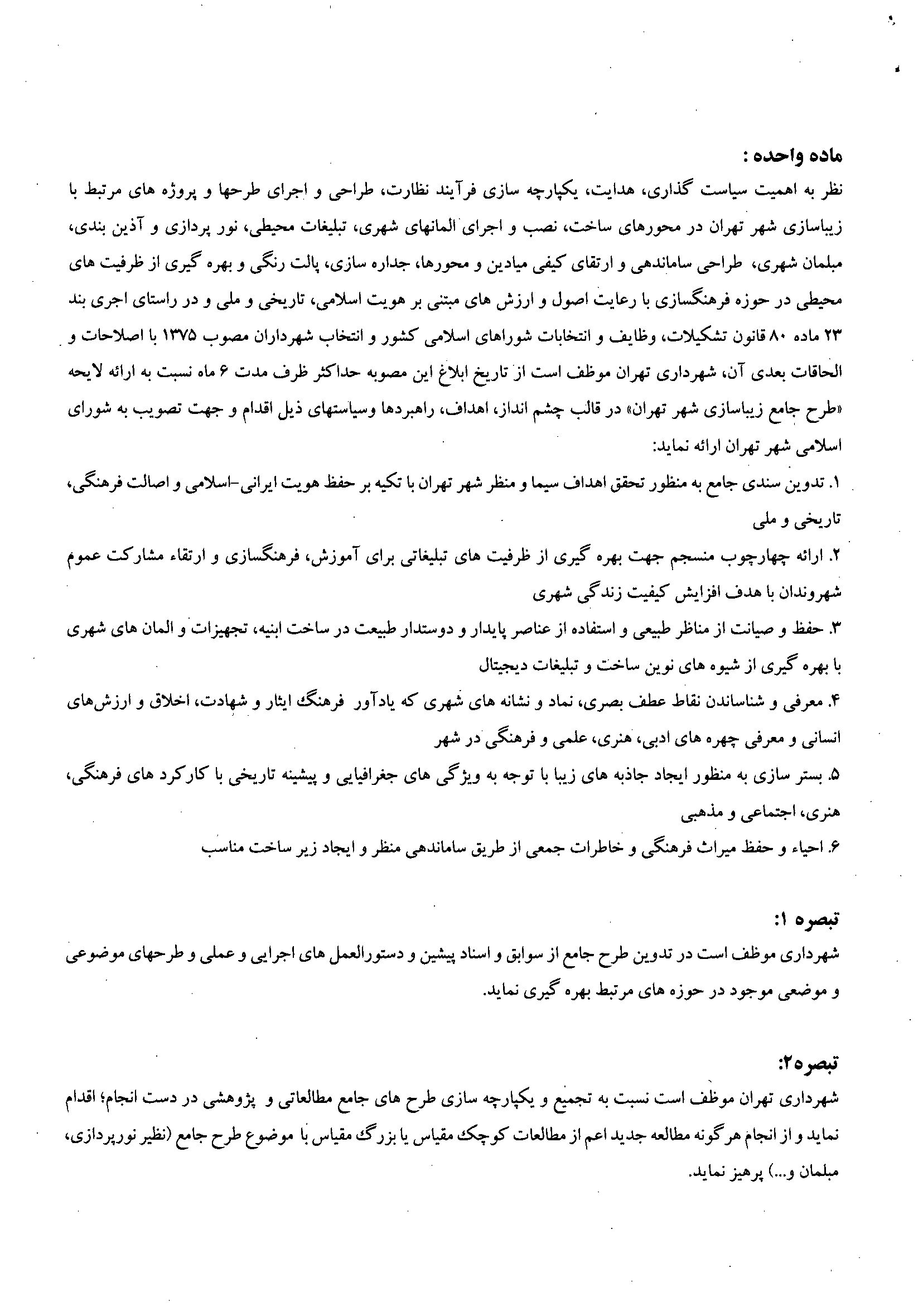 الزام شهرداري تهران به ارائه لايحه طرح جامع زيباسازي شهر تهران