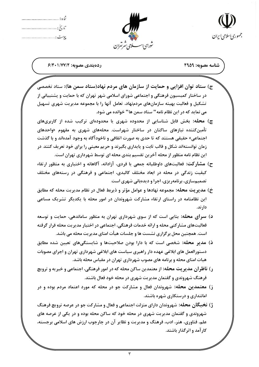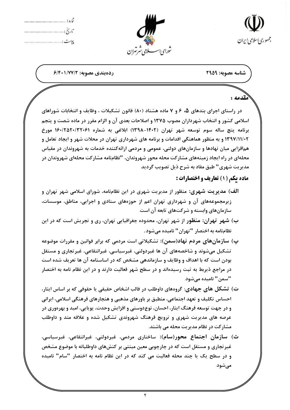 نظامنامه مشاركت محلهاي شهروندان در مديريت شهري