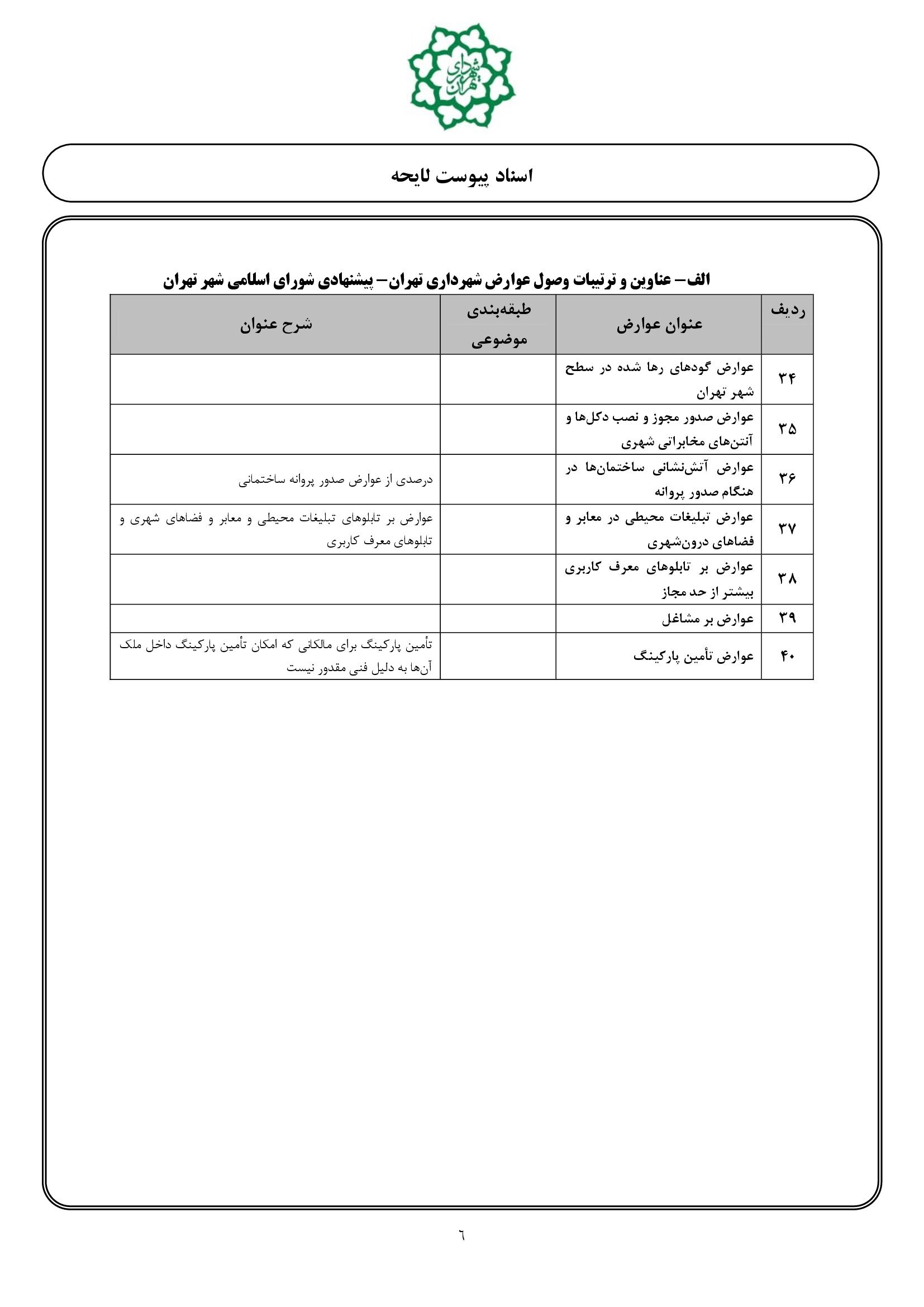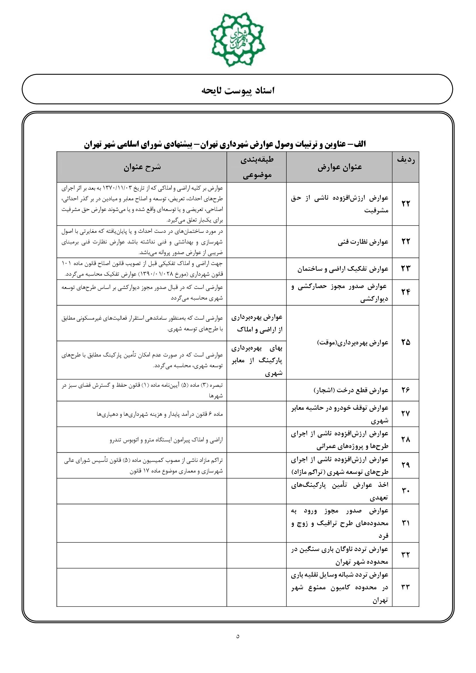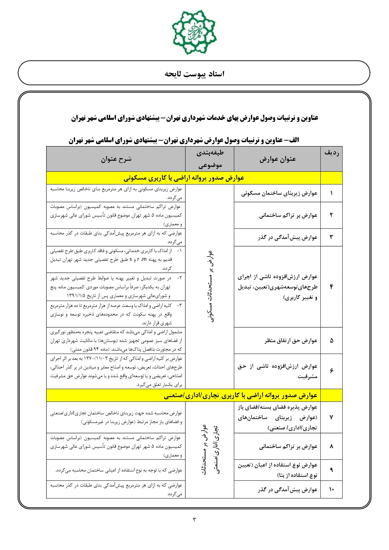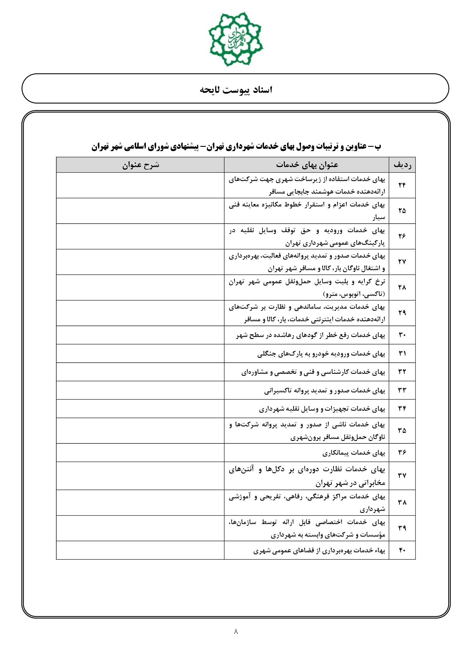 پيشنهاد عناوين و ترتيبات وصول عوارض و بهاي خدمات شهرداري تهران براي اجرا در سال 1402