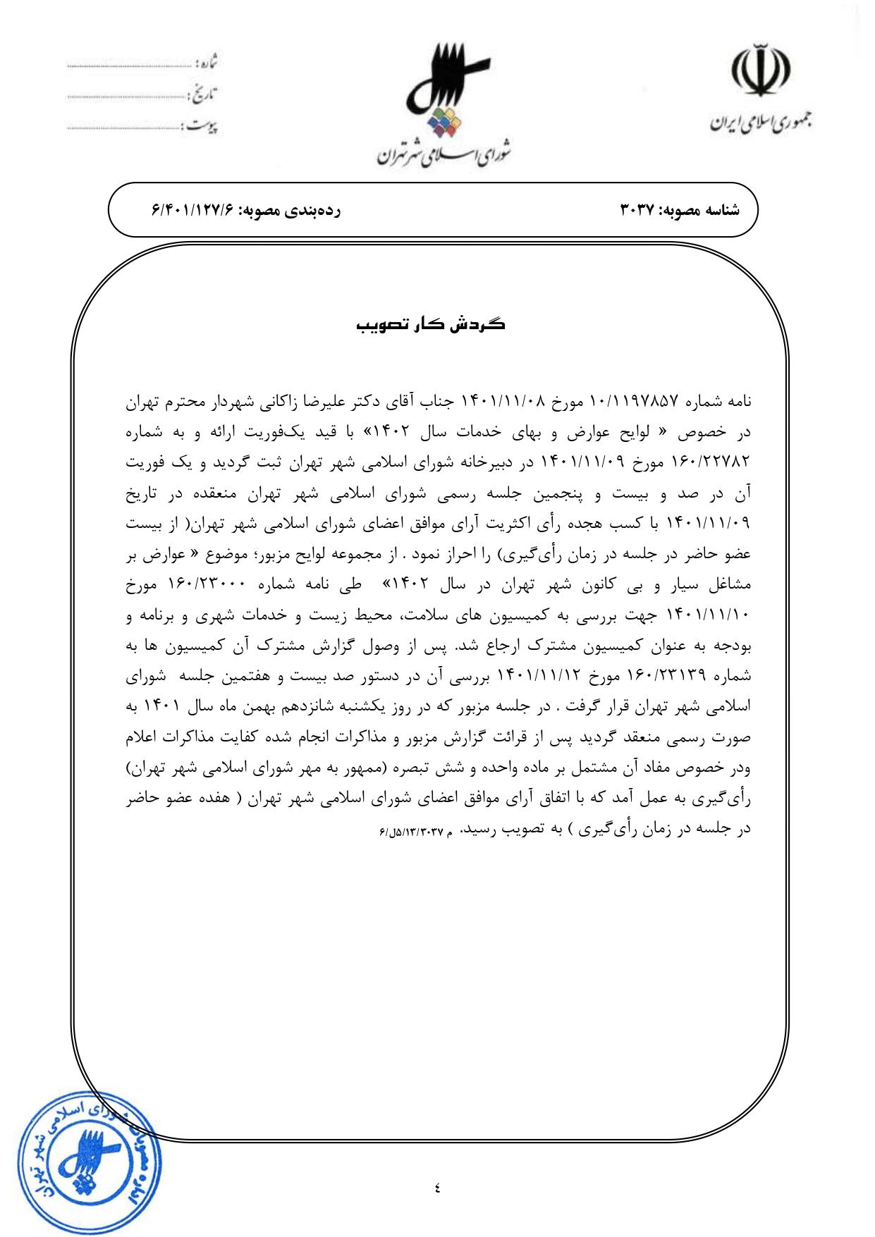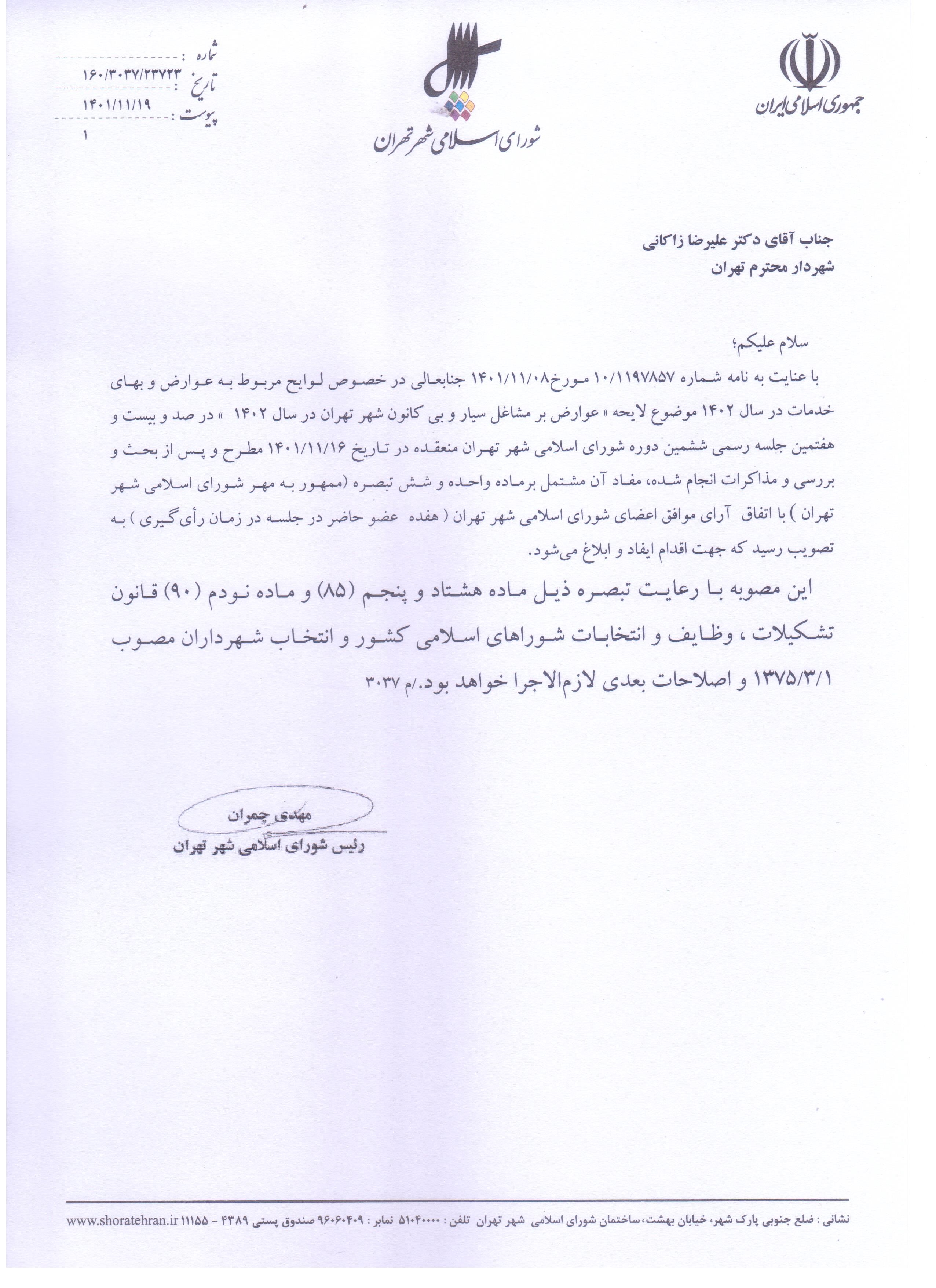 عوارض بر مشاغل سيار و بيكانون شهر تهران در سال 1402