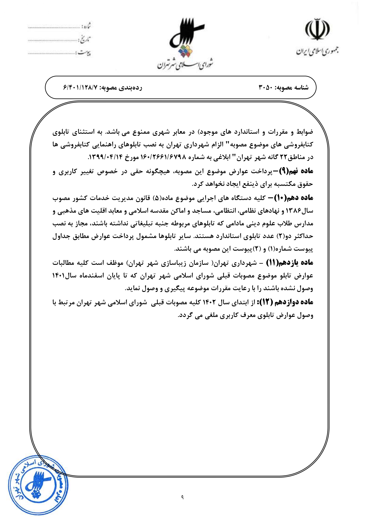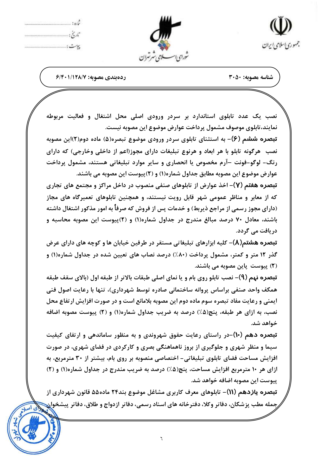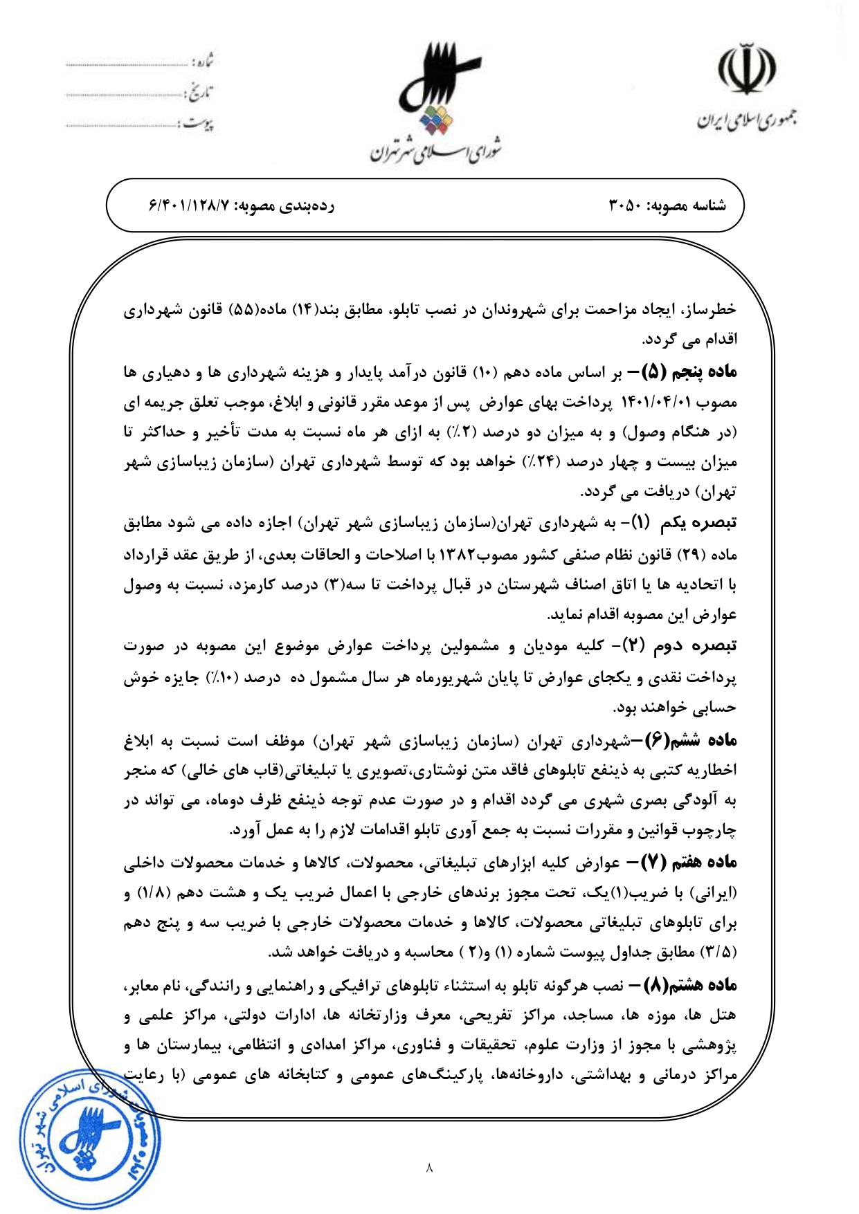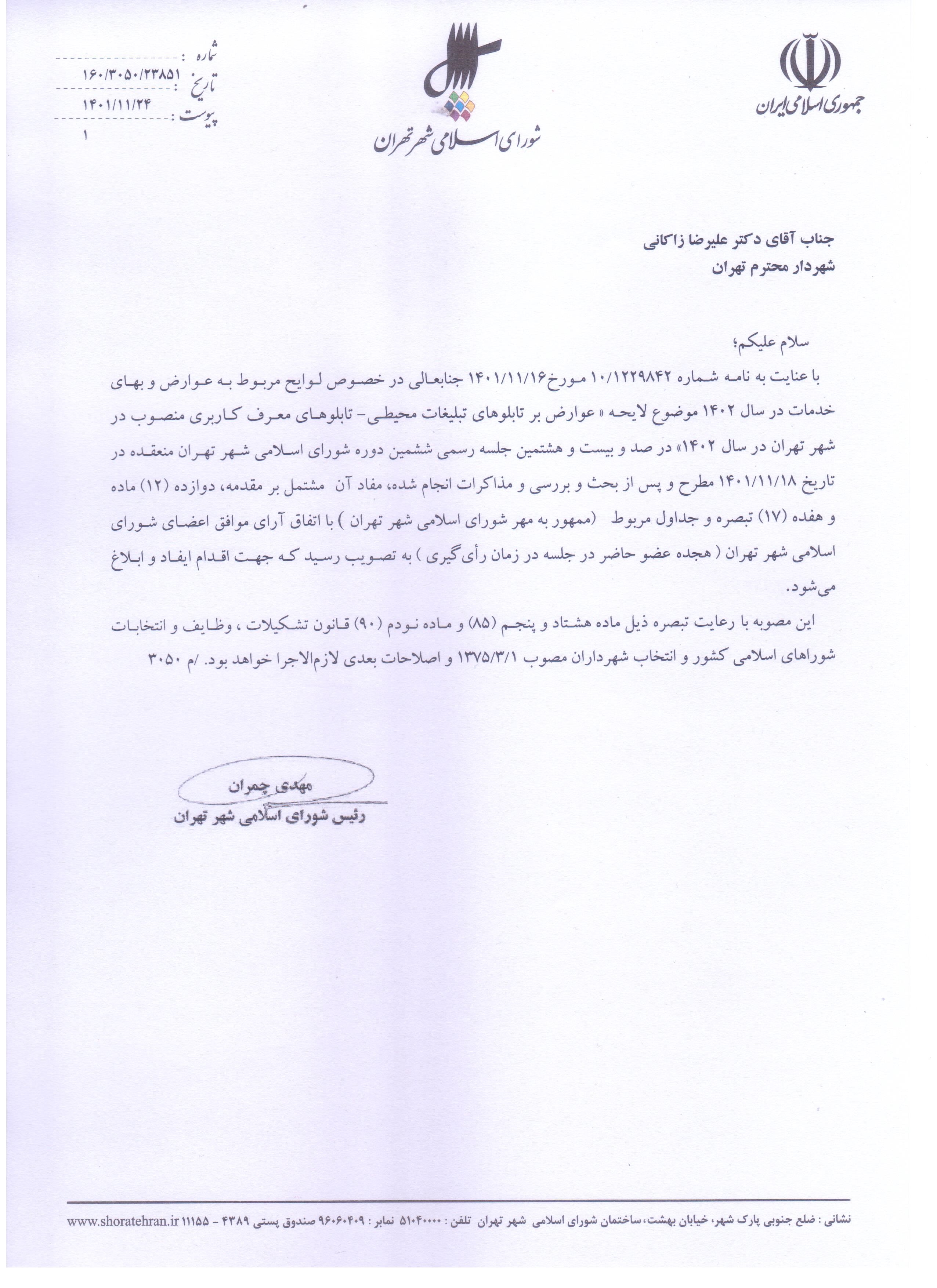 عوارض بر تابلوهاي تبليغات محيطي - تابلوهاي معرف كاربري منصوب در شهر تهران در سال 1402