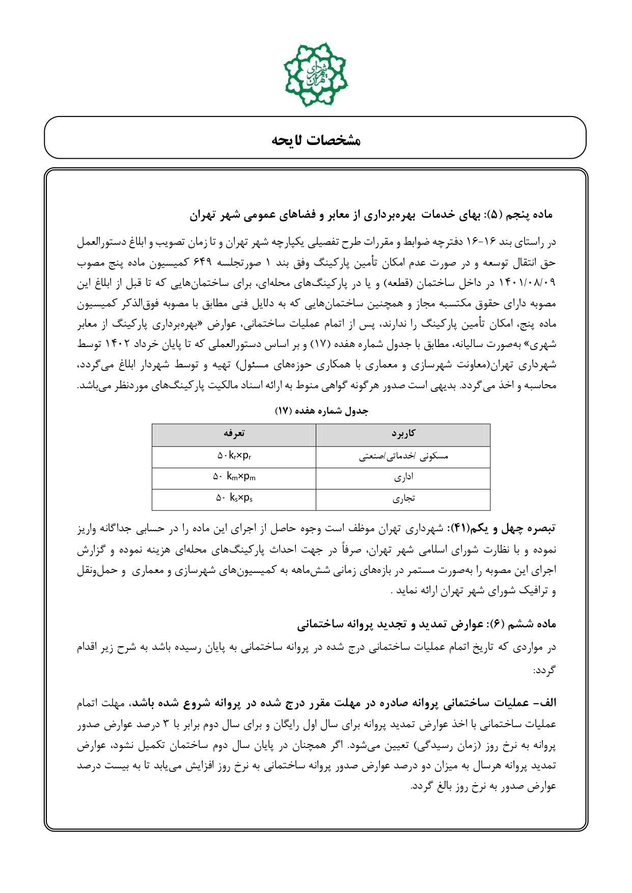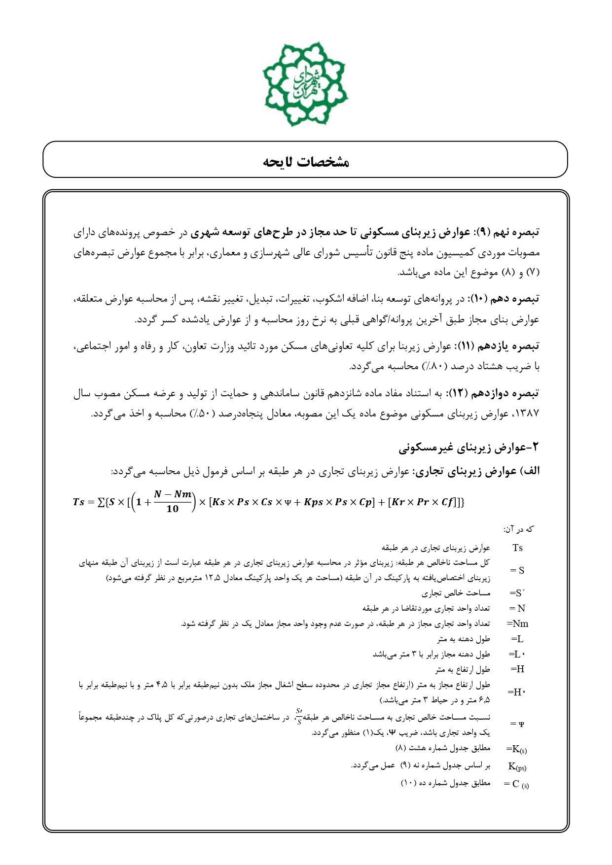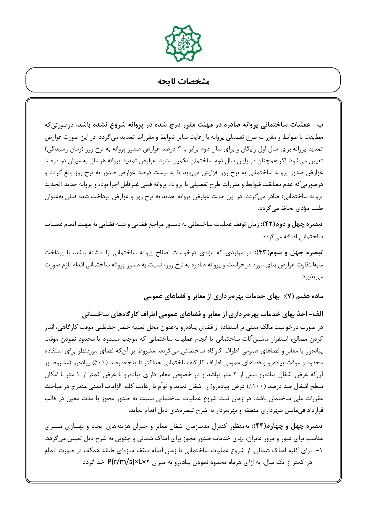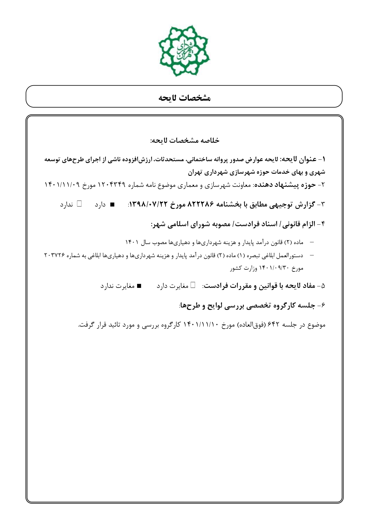 عوارض صدور پروانه ساختماني، مستحدثات، ارزش افزوده ناشي از اجراي طرحهاي توسعه شهري و بهاي خدمات حوزه شهرسازي شهرداري تهران