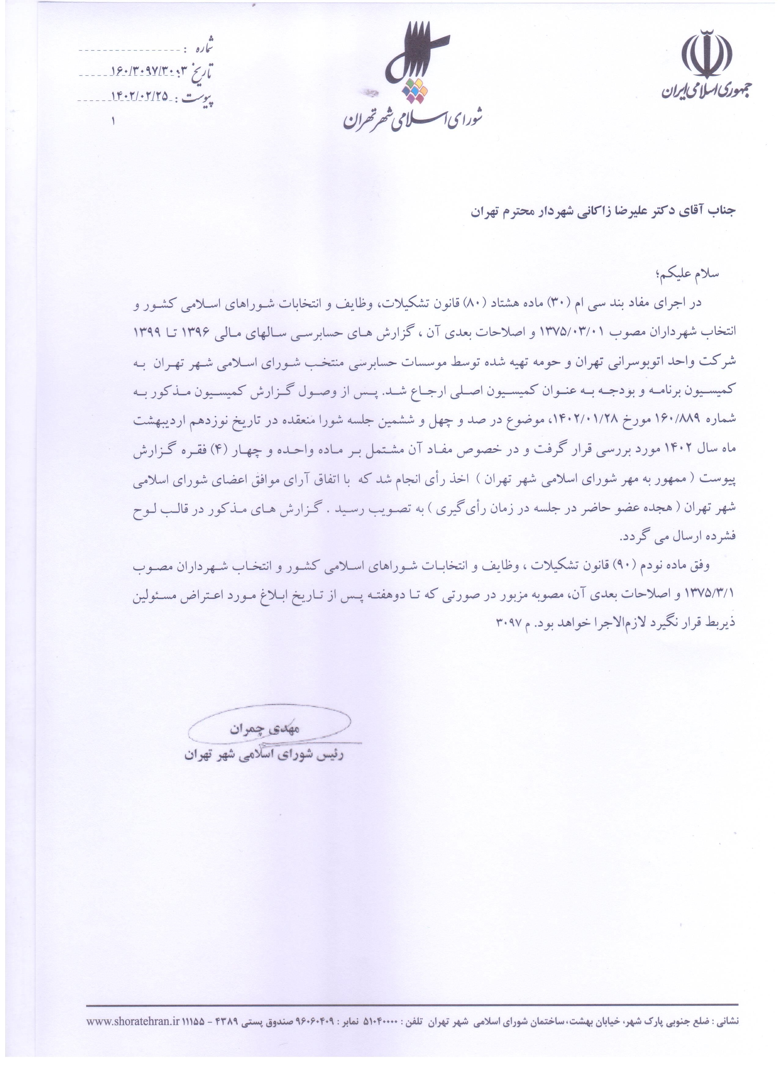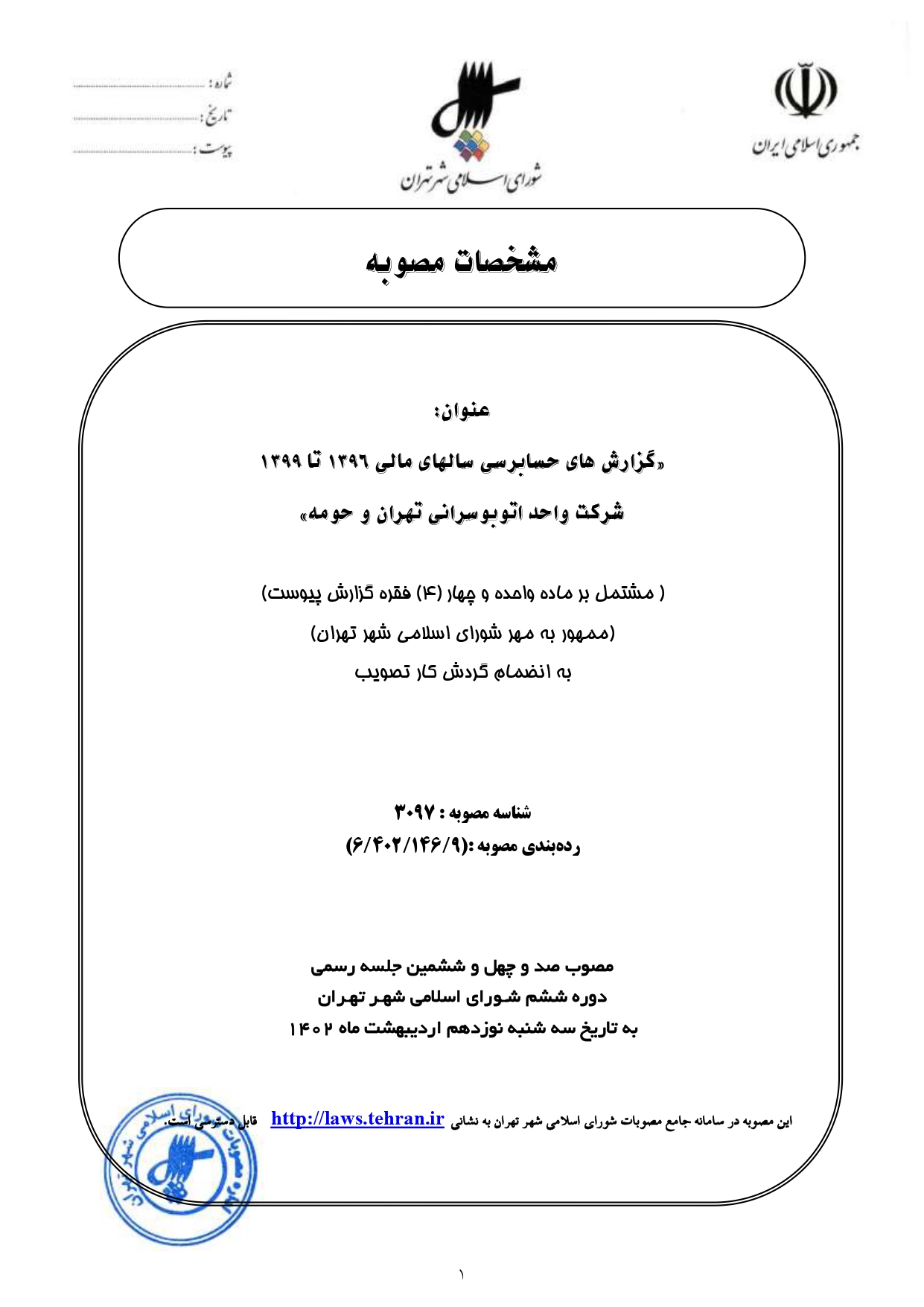 گزارشهاي حسابرسي سالهاي مالي 1396 تا 1399 شركت واحد اتوبوسراني تهران و حومه