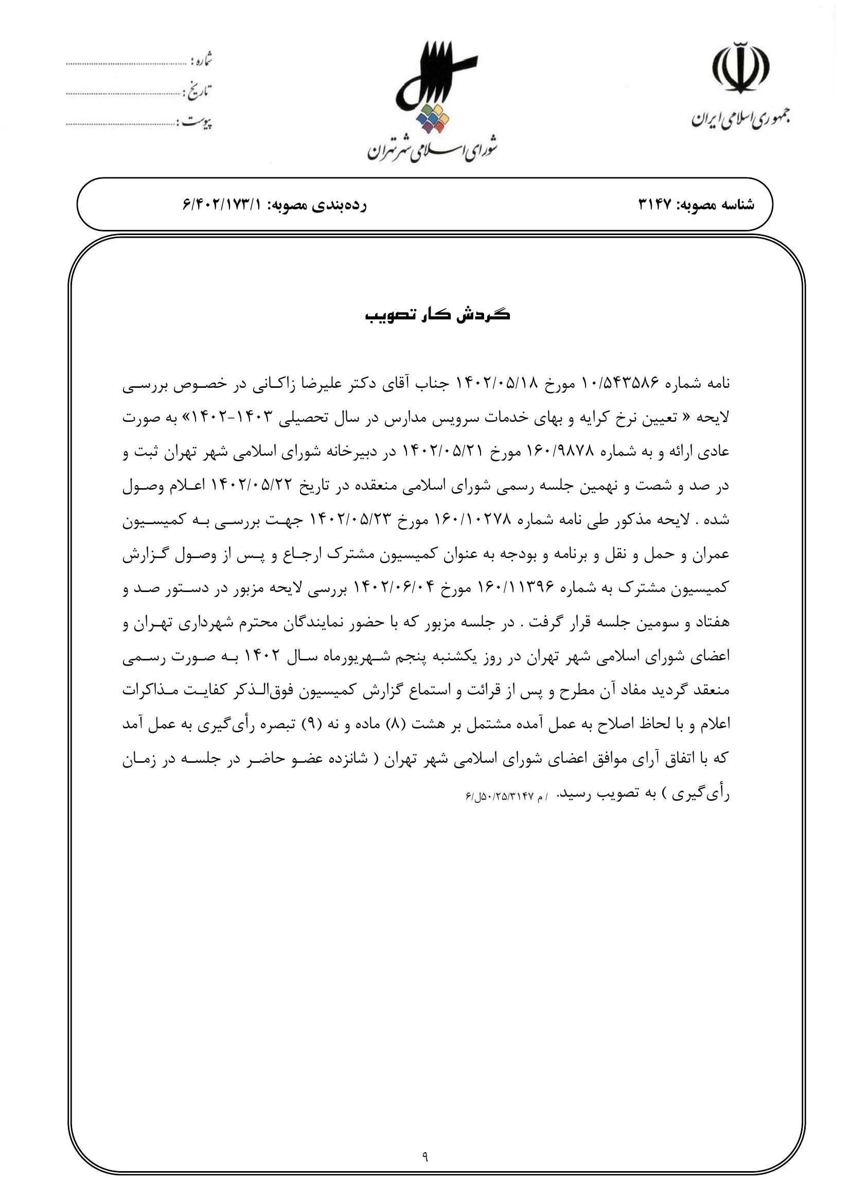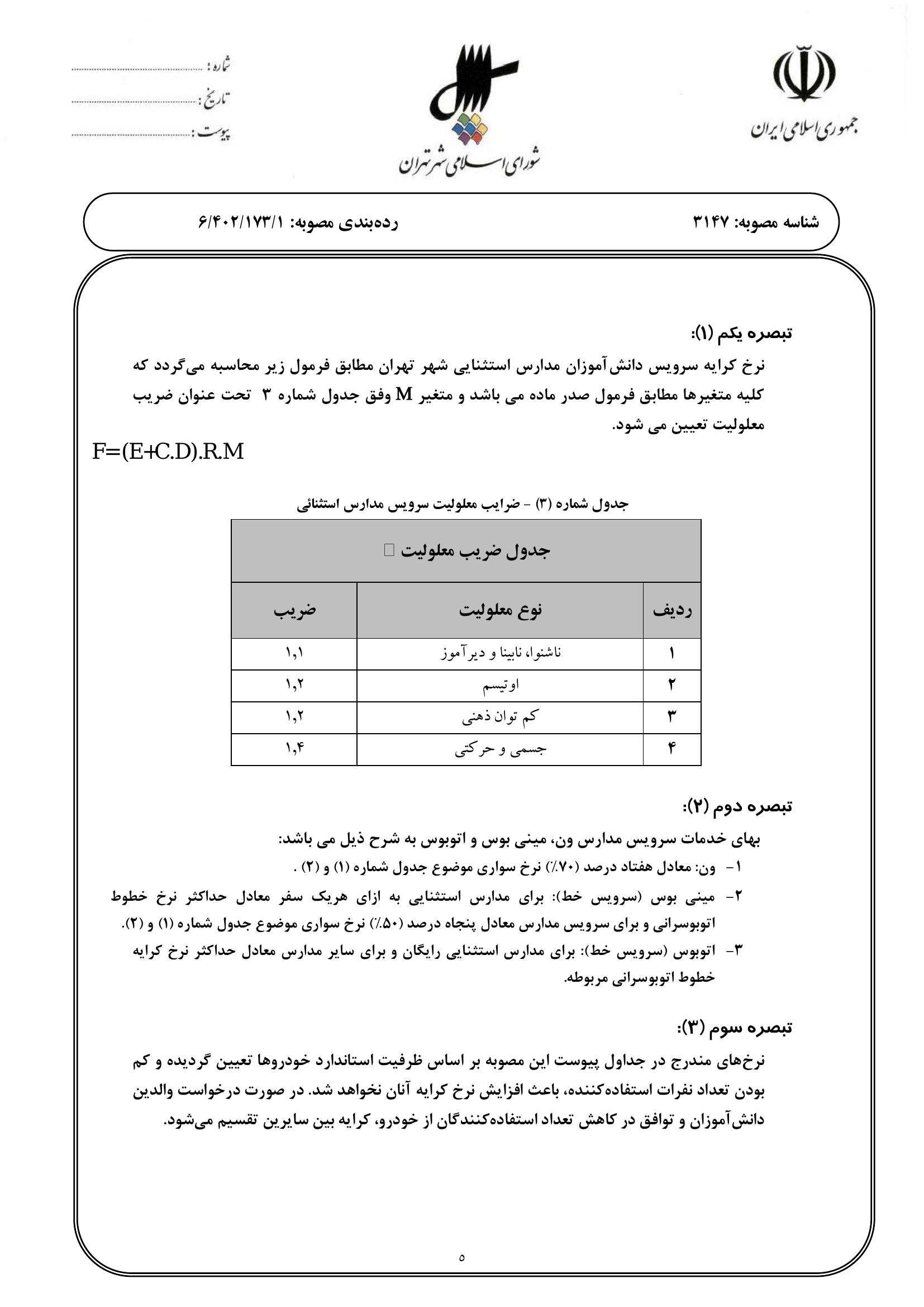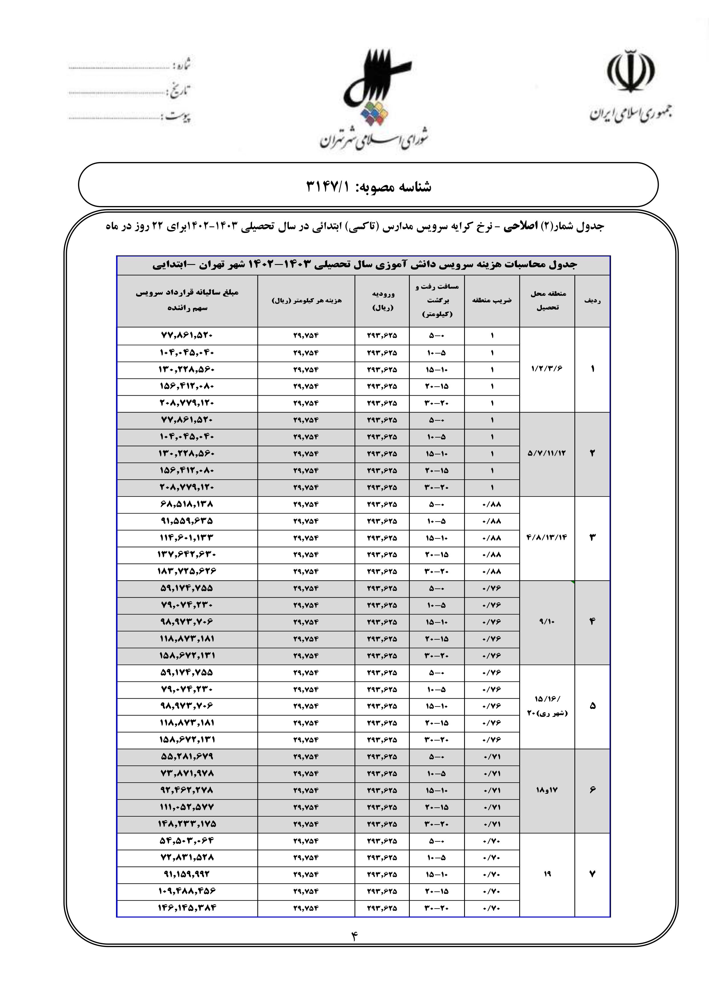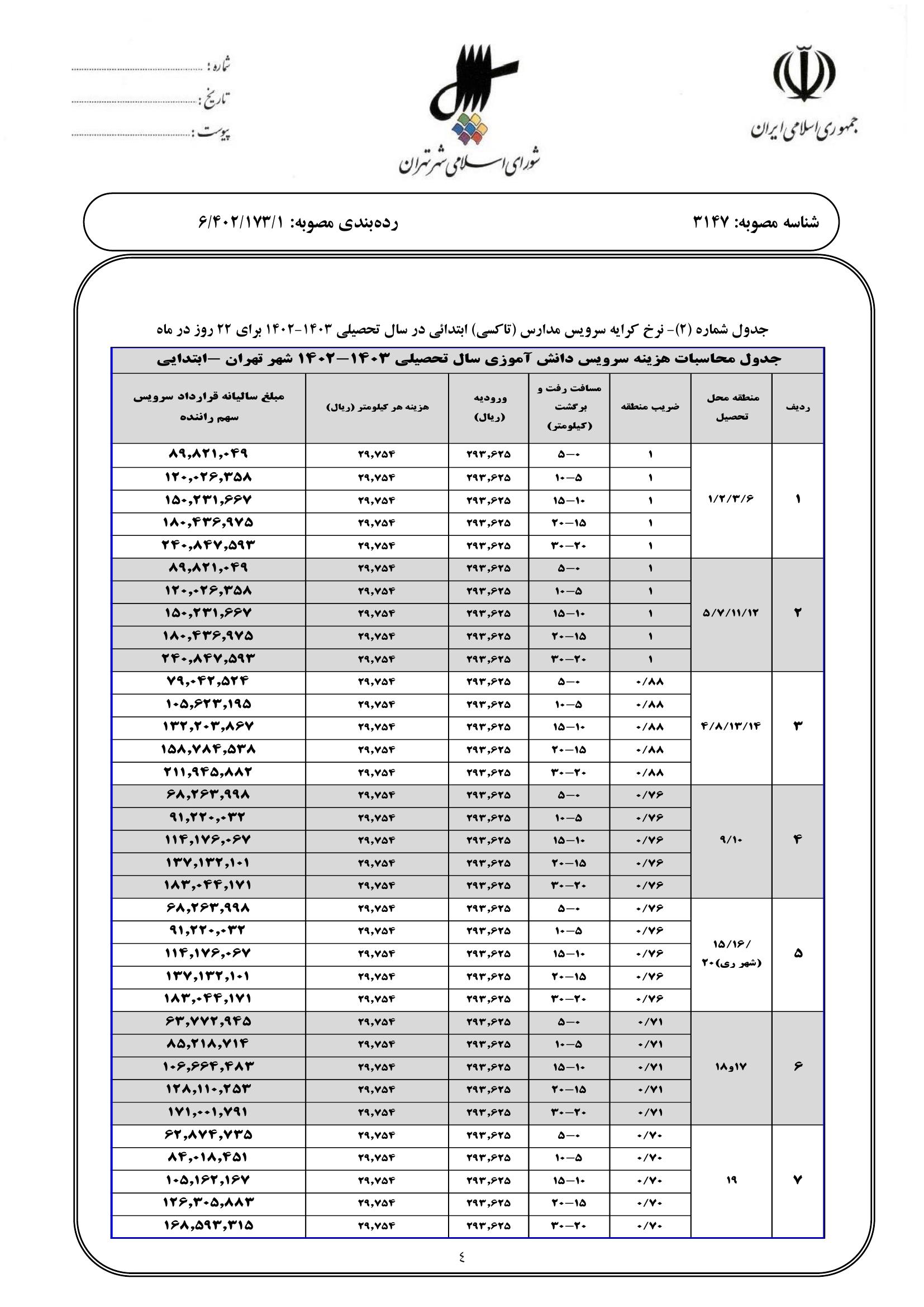 تعيين نرخ كرايه و بهاي خدمات سرويس مدارس در سال تحصيلي 1402-1403