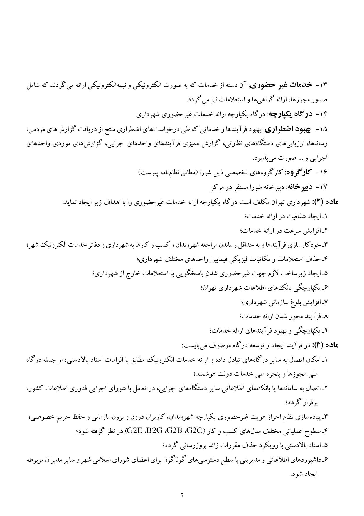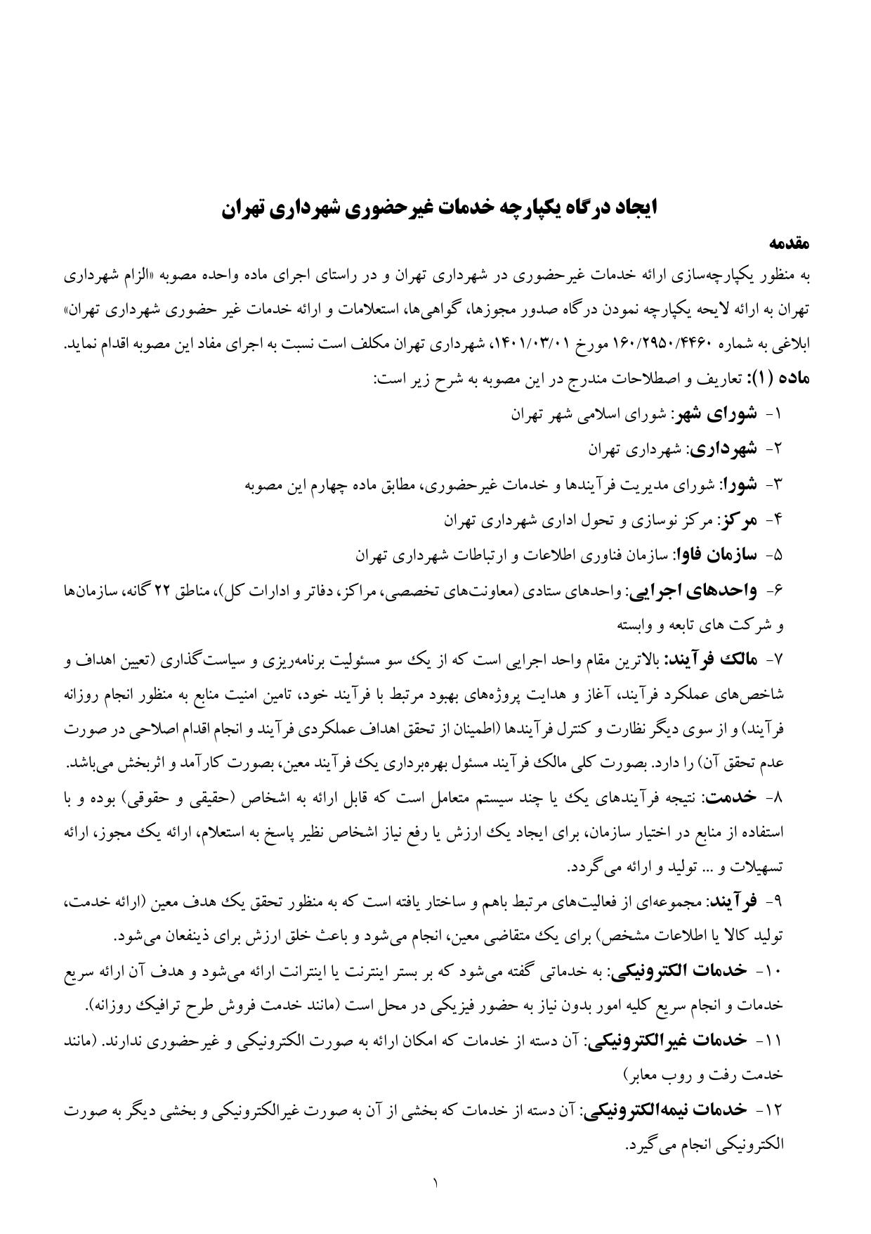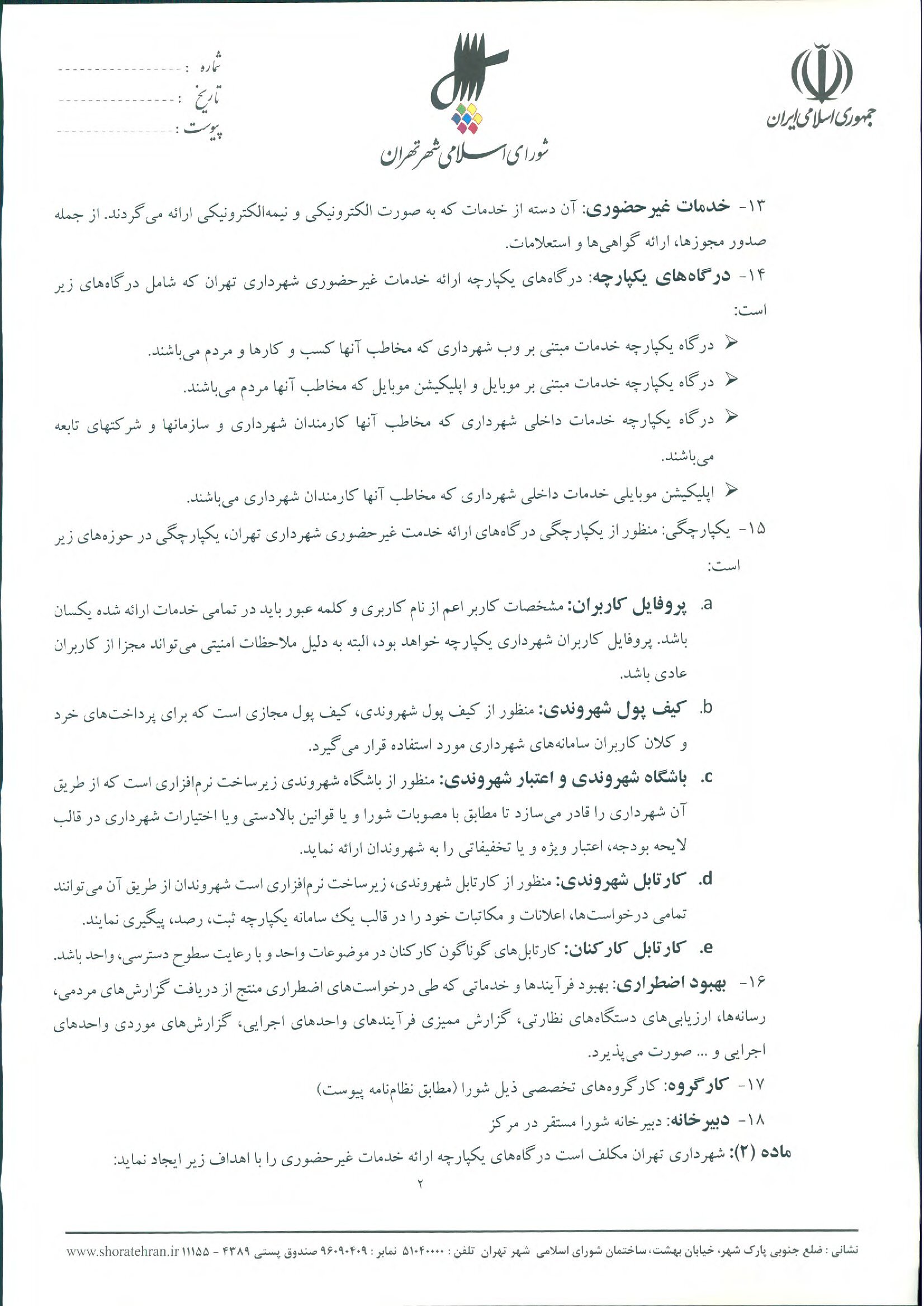 ايجاد درگاه يكپارچه خدمات غير حضوري شهرداري تهران