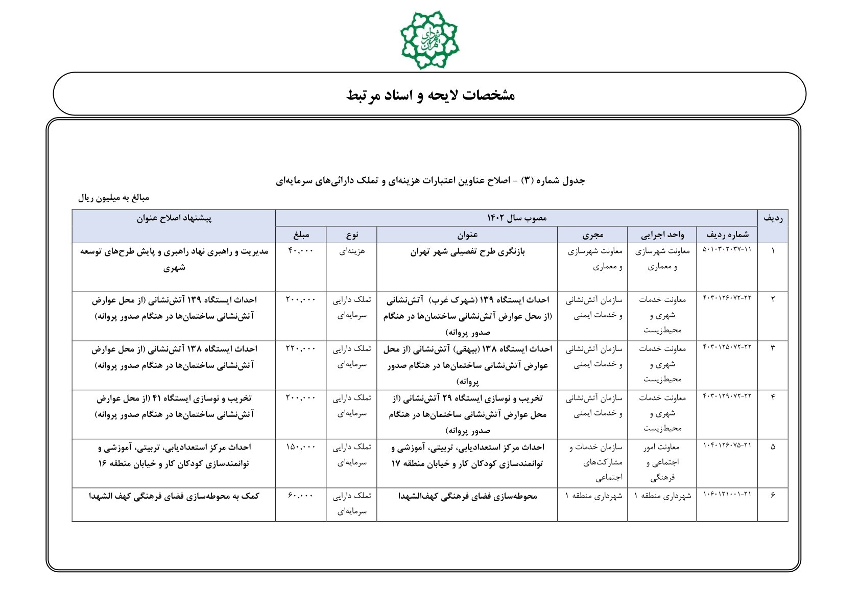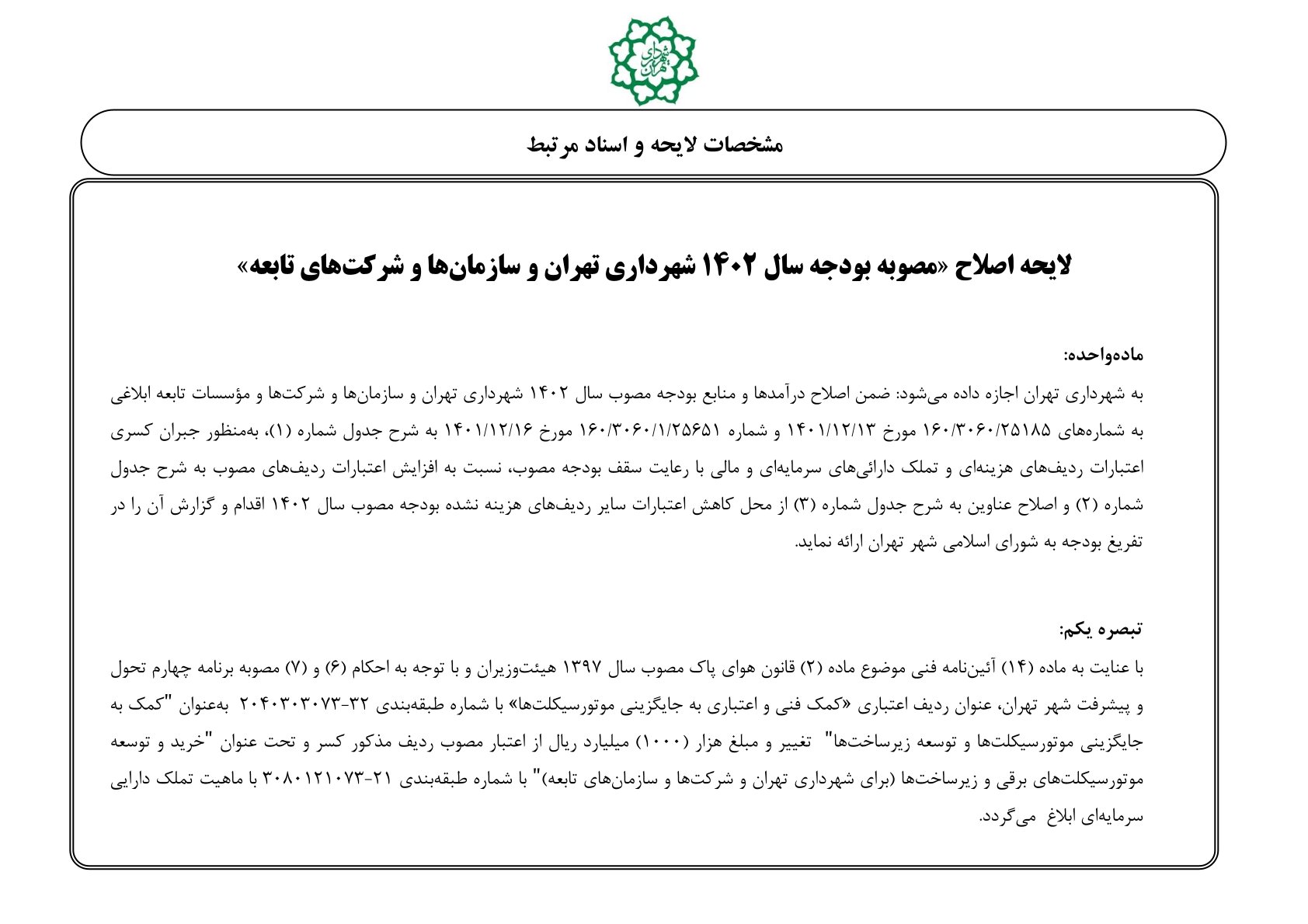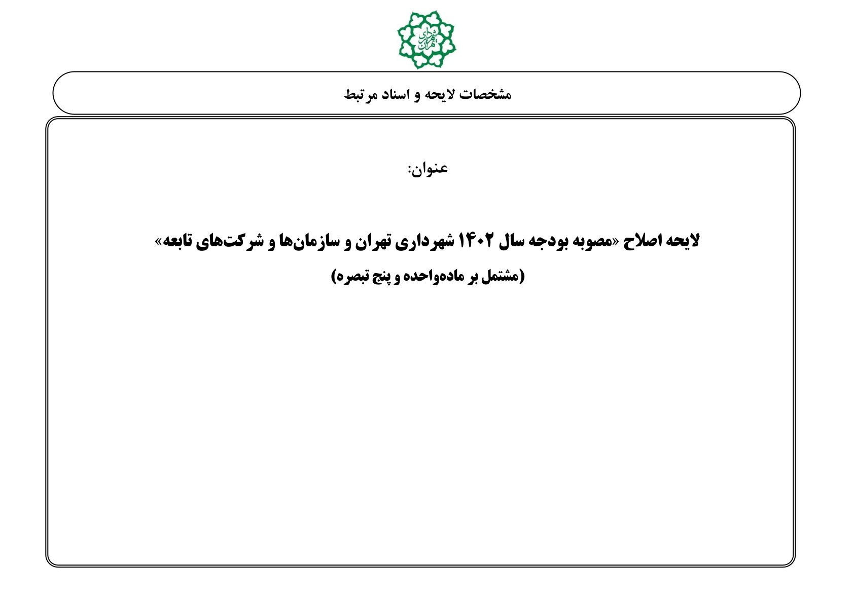 اصلاح مصوبه بودجه سال 1402 شهرداري تهران و سازمانها و شركتهاي تابعه