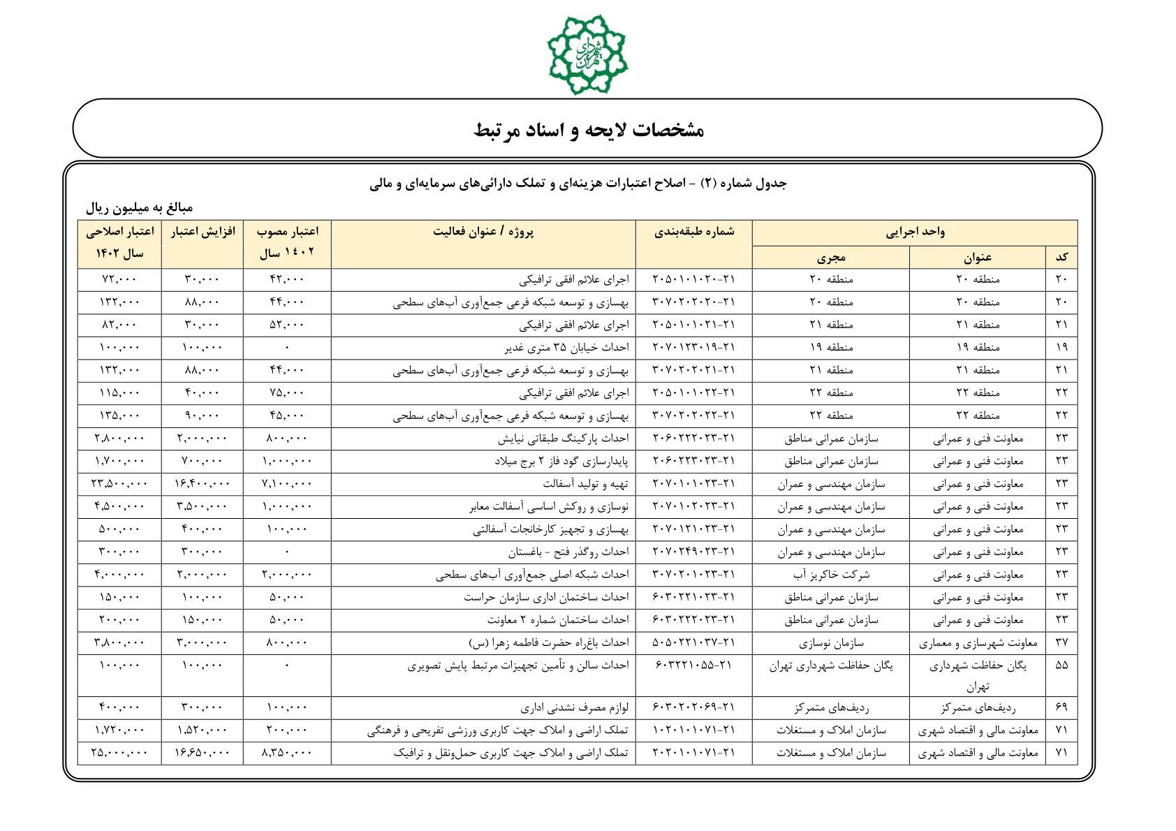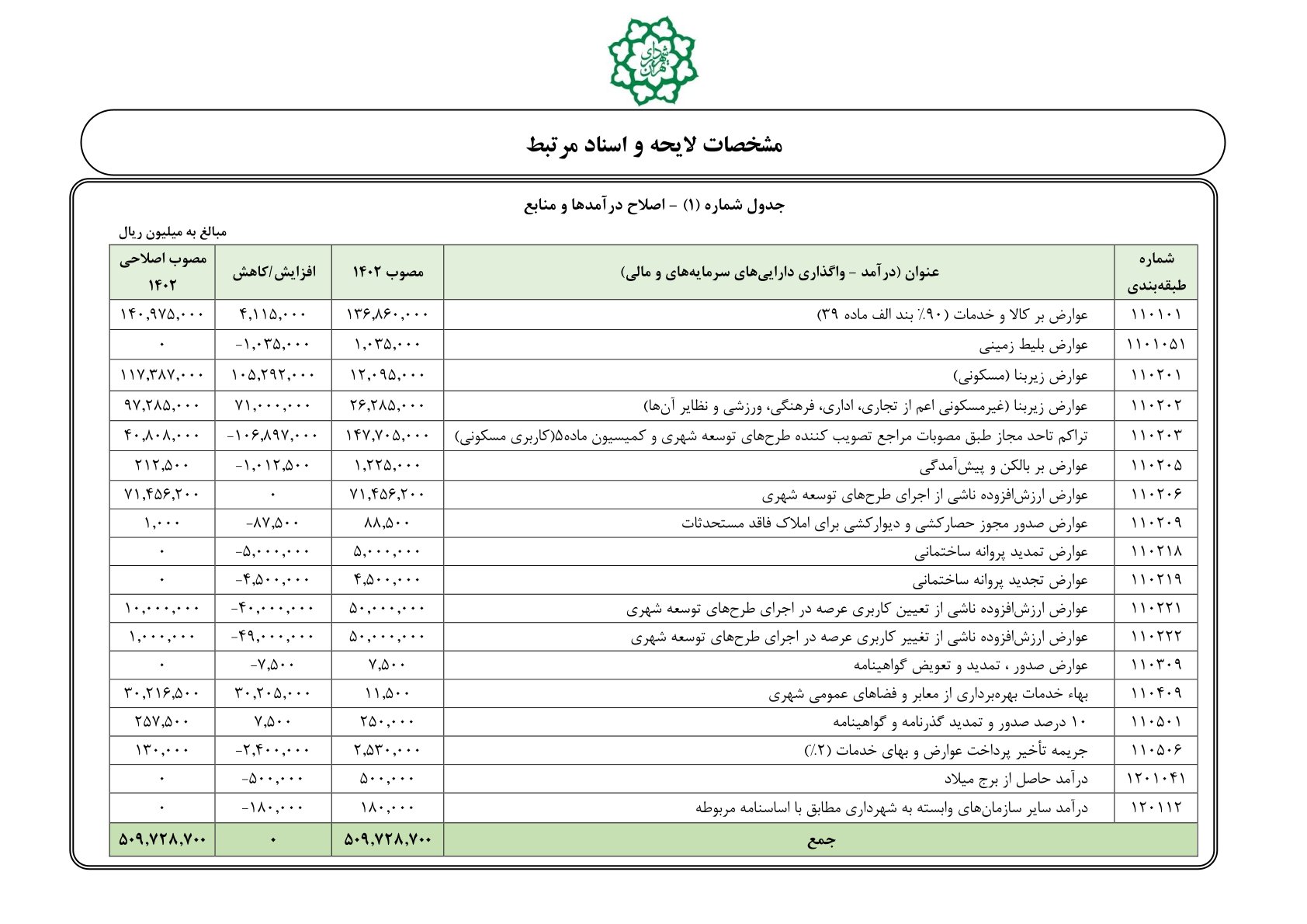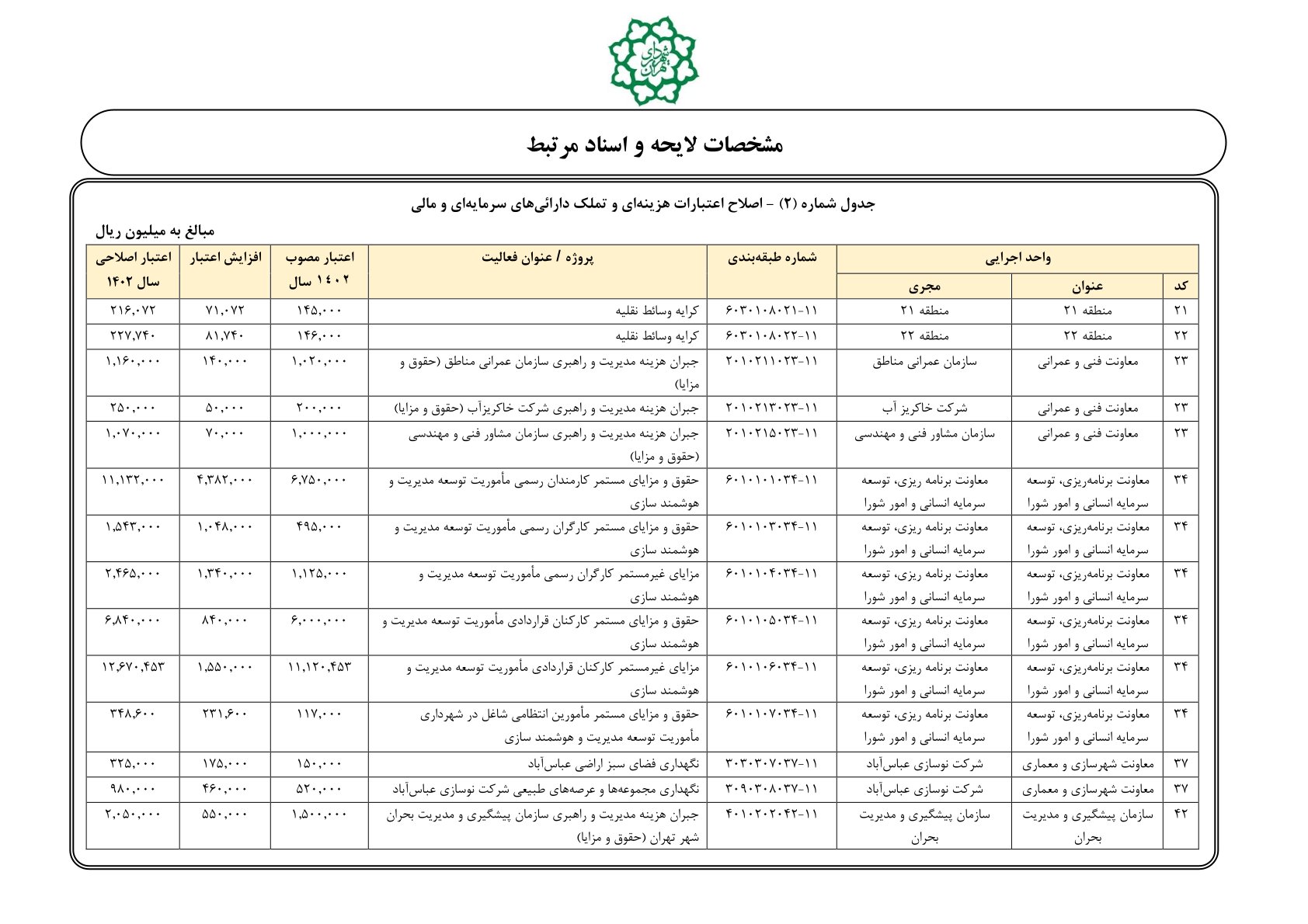 اصلاح مصوبه بودجه سال 1402 شهرداري تهران و سازمانها و شركتهاي تابعه