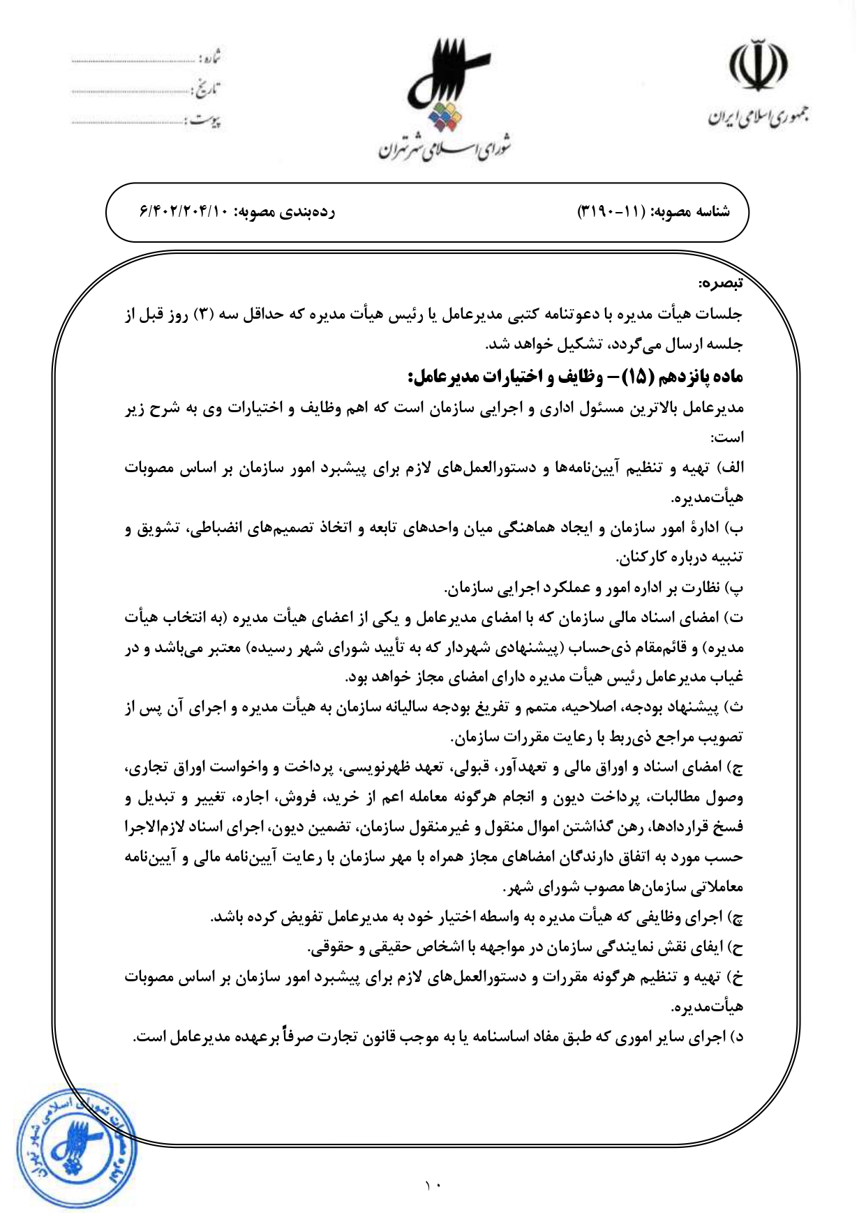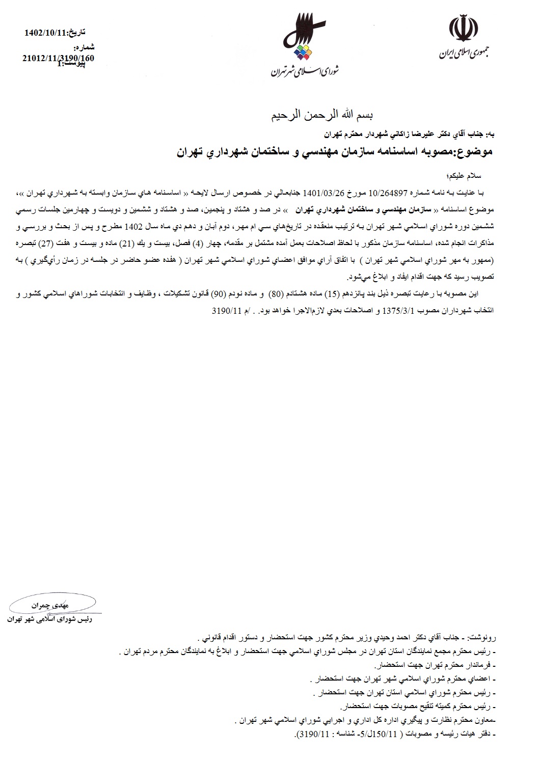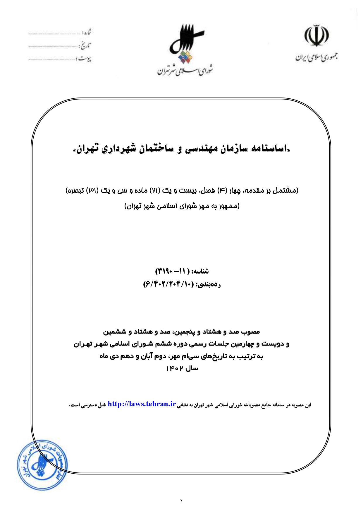 اساسنامه سازمان مهندسي و ساختمان شهرداري تهران