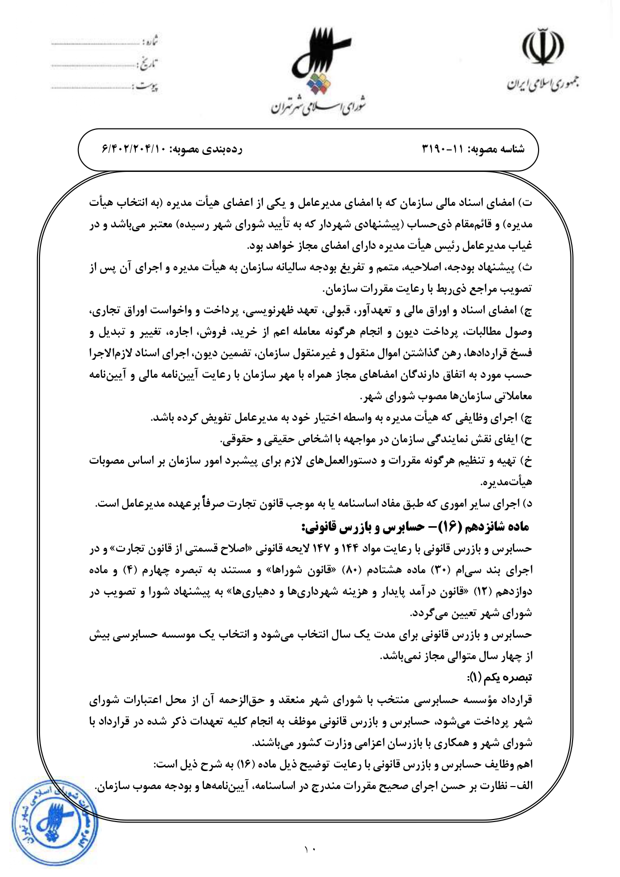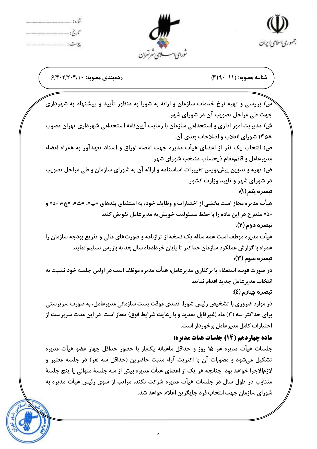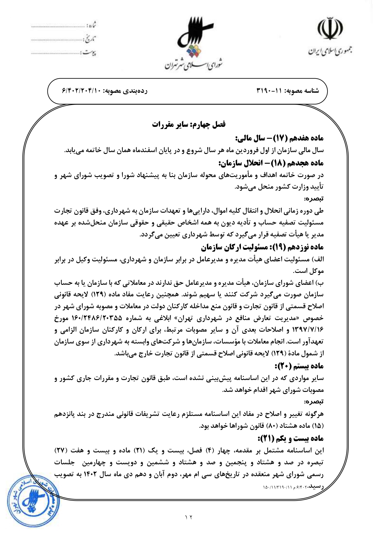 اساسنامه سازمان مهندسي و ساختمان شهرداري تهران