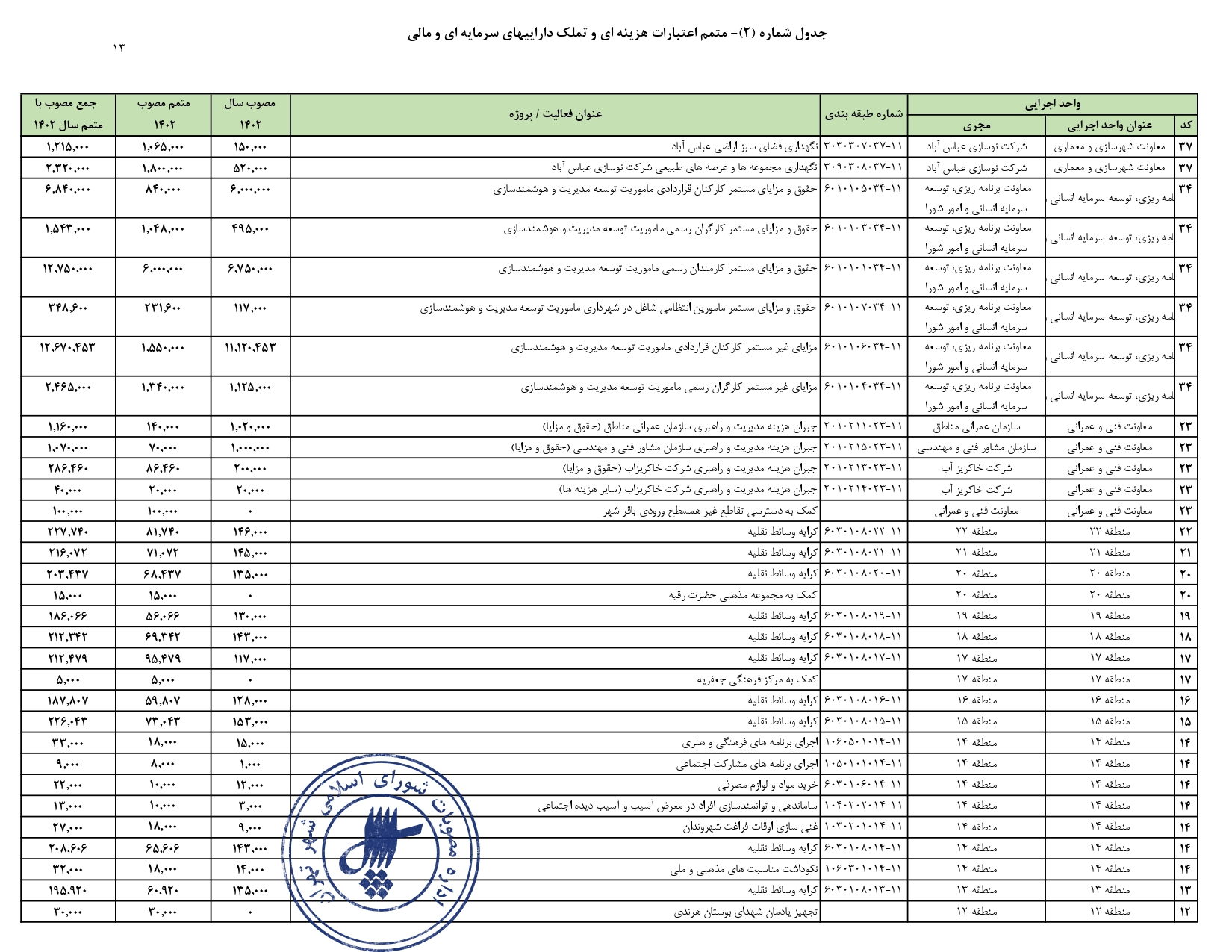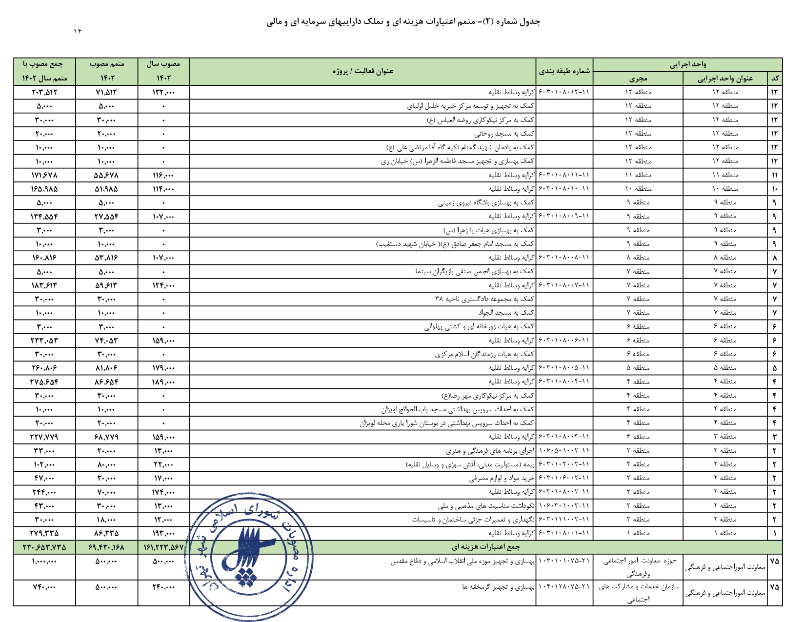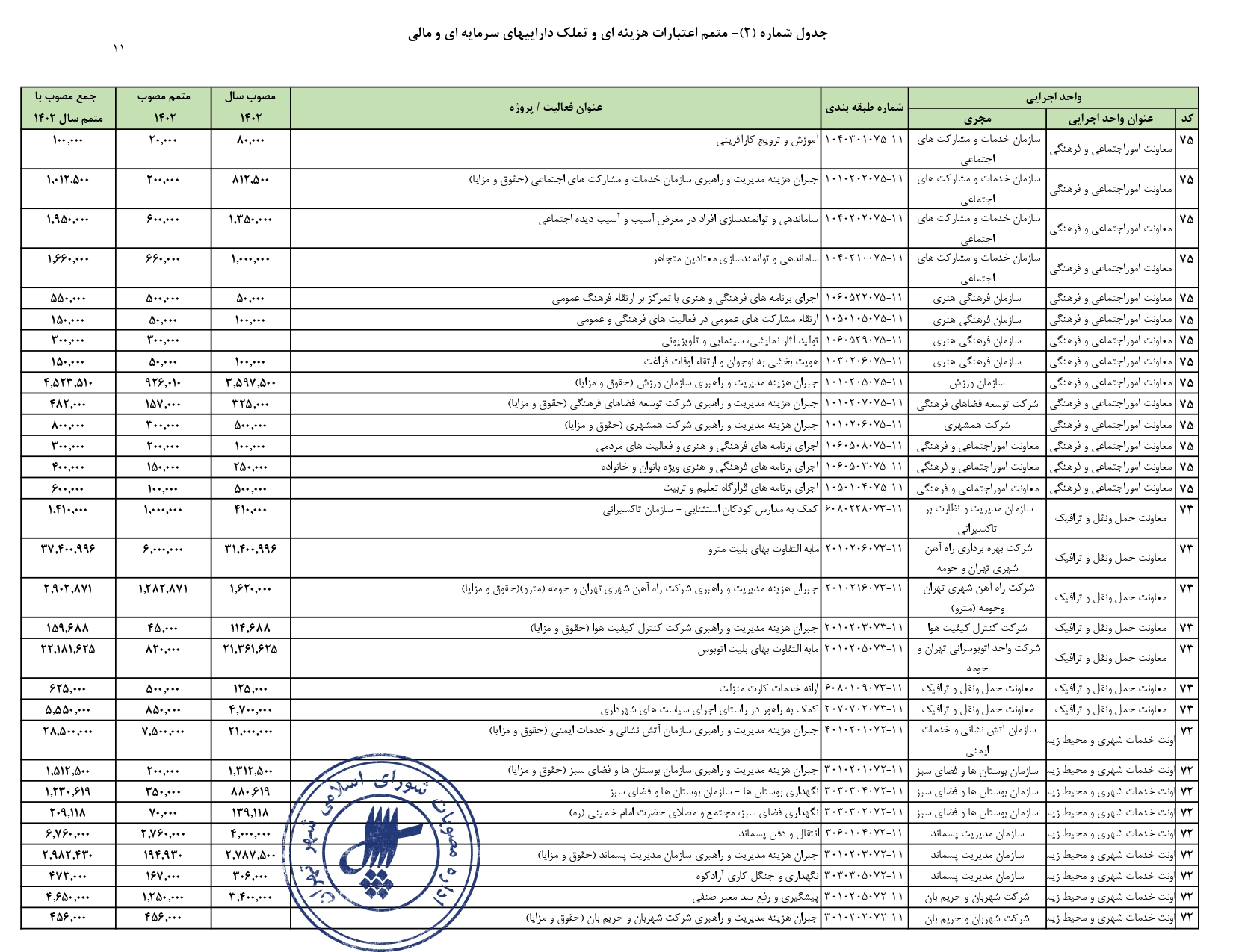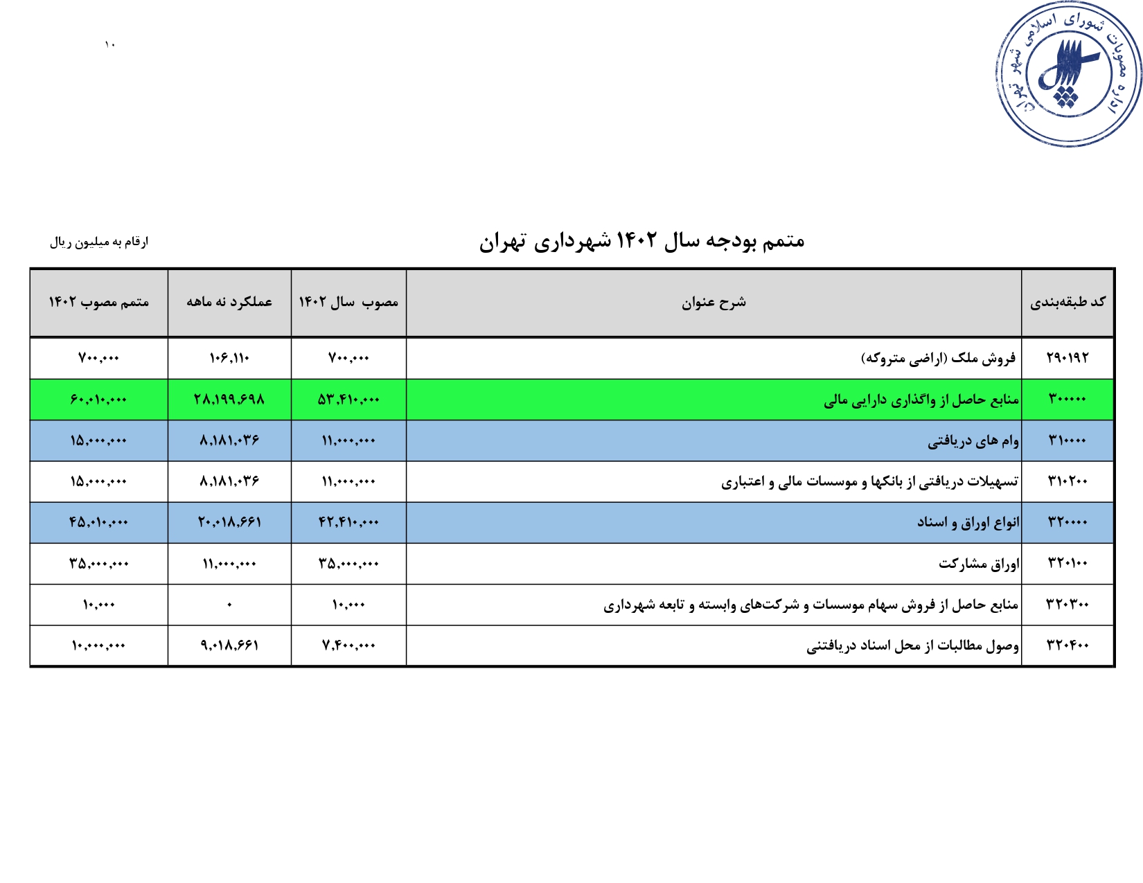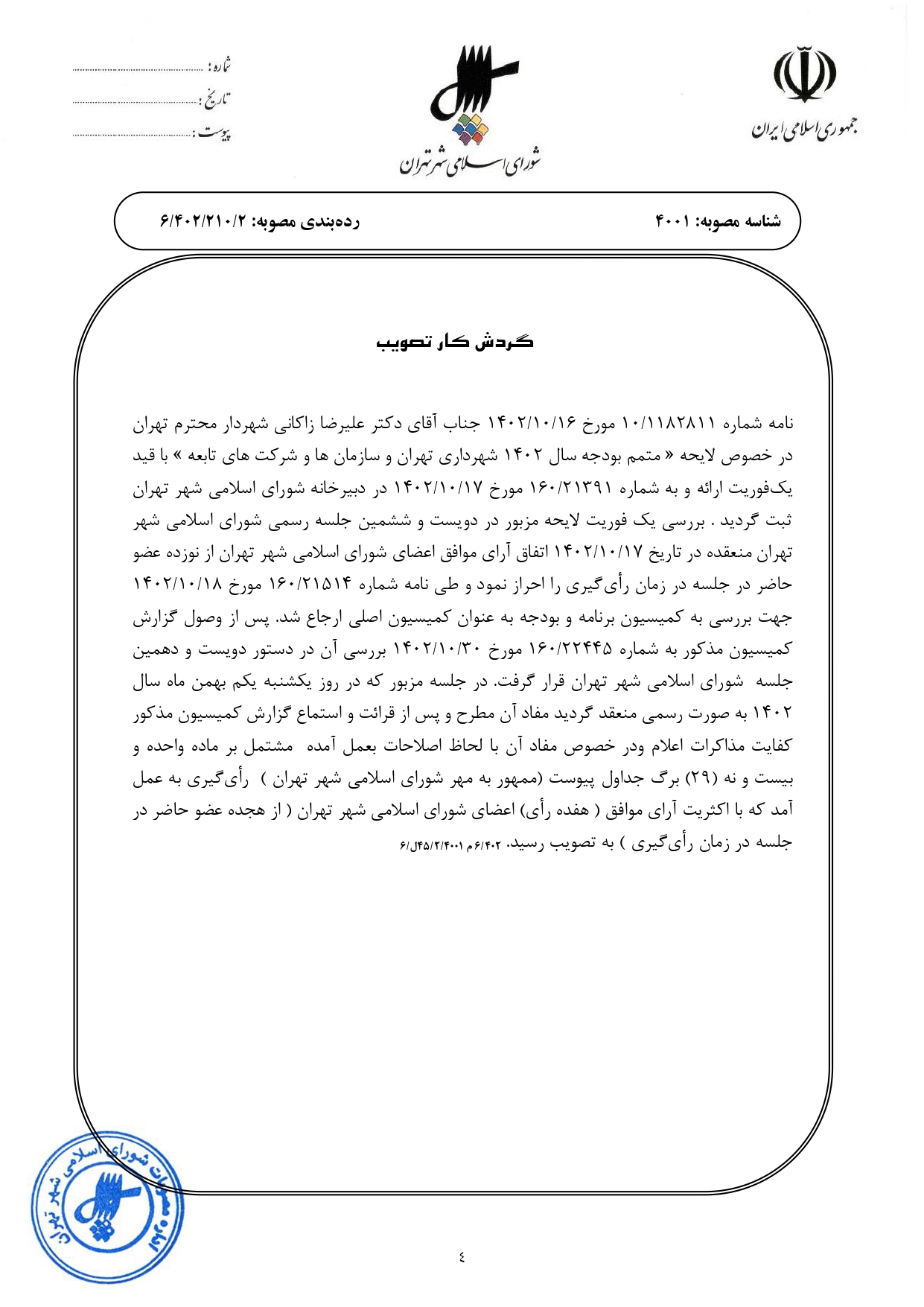 متمم بودجه سال 1402 شهرداري تهران و سازمانها و شركتهاي تابعه