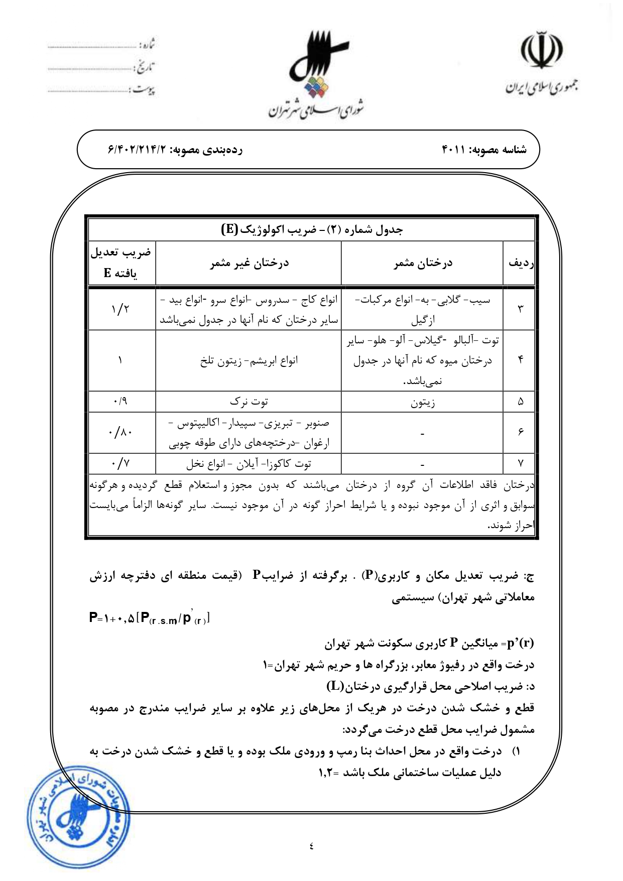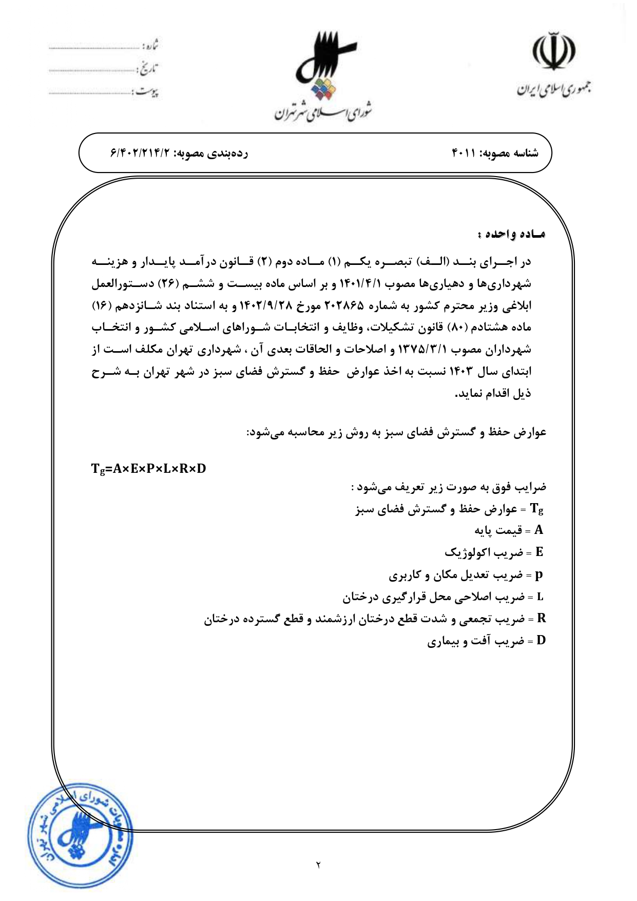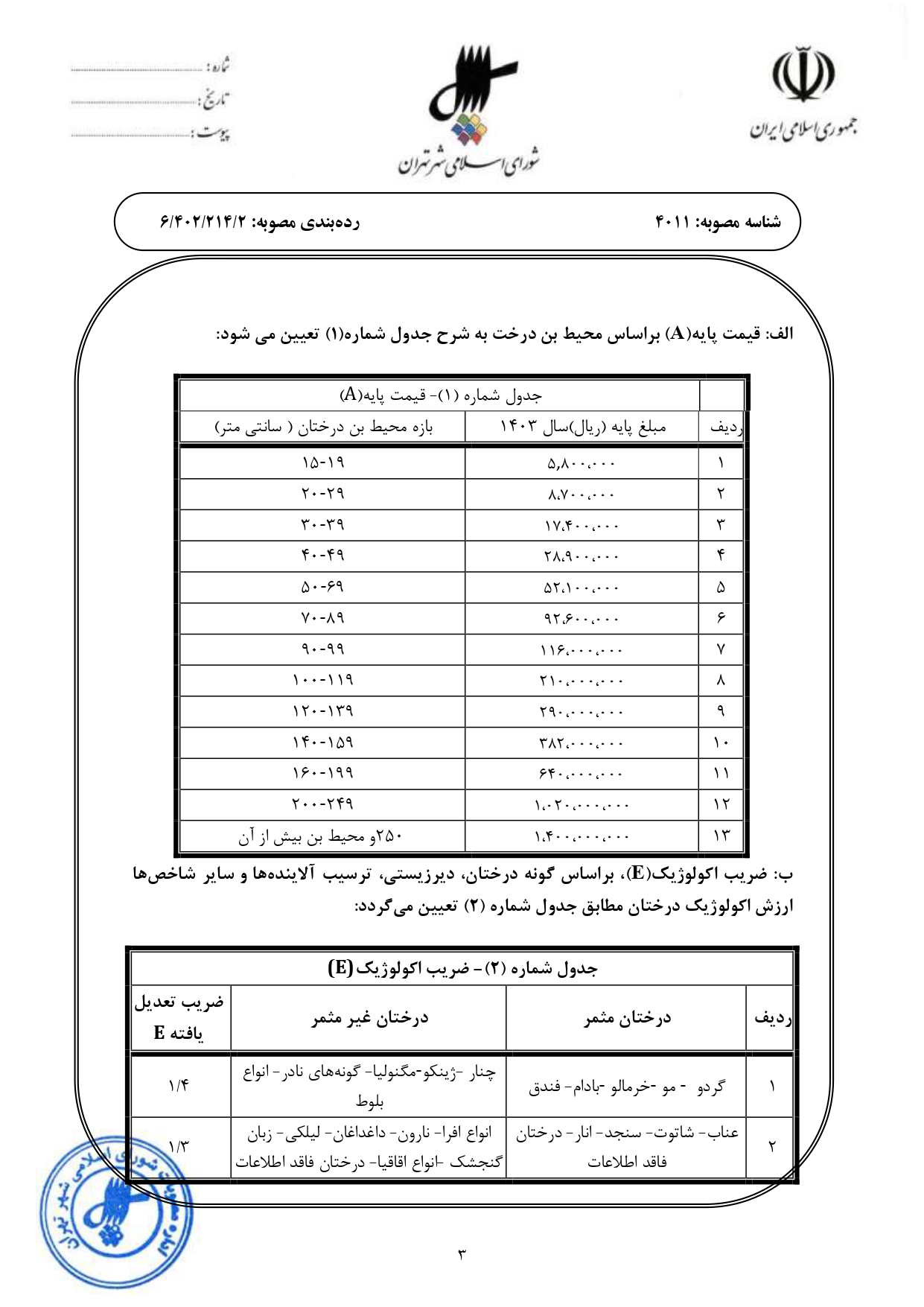 اخذ عوارض حفظ و گسترش فضاي سبز مبتني بر ارزش اكولوژيك درختان از سال 1403