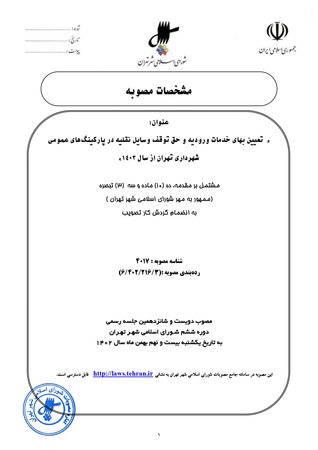معرفی سامانه جامع مصوبات شورای اسلامی شهر تهران