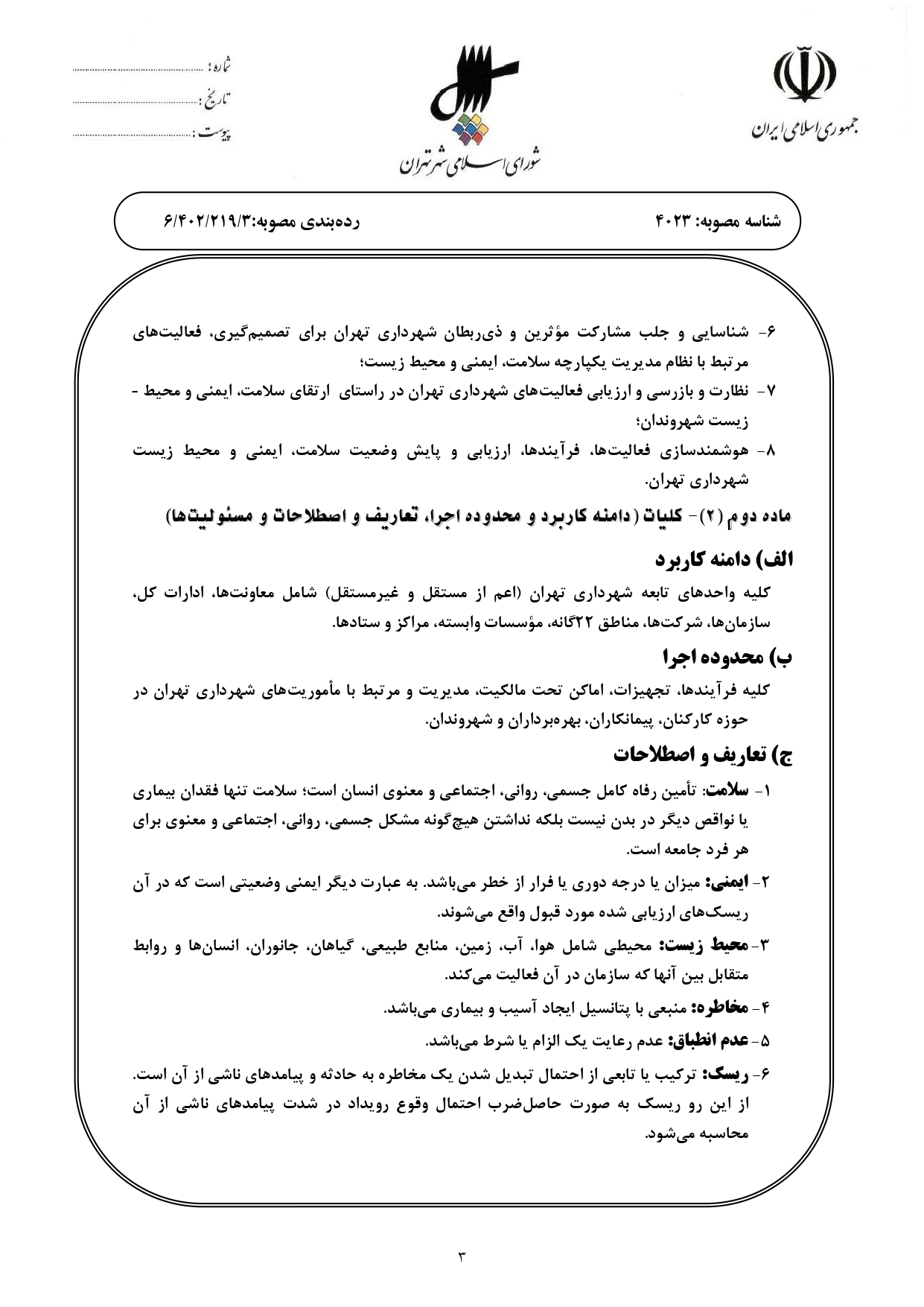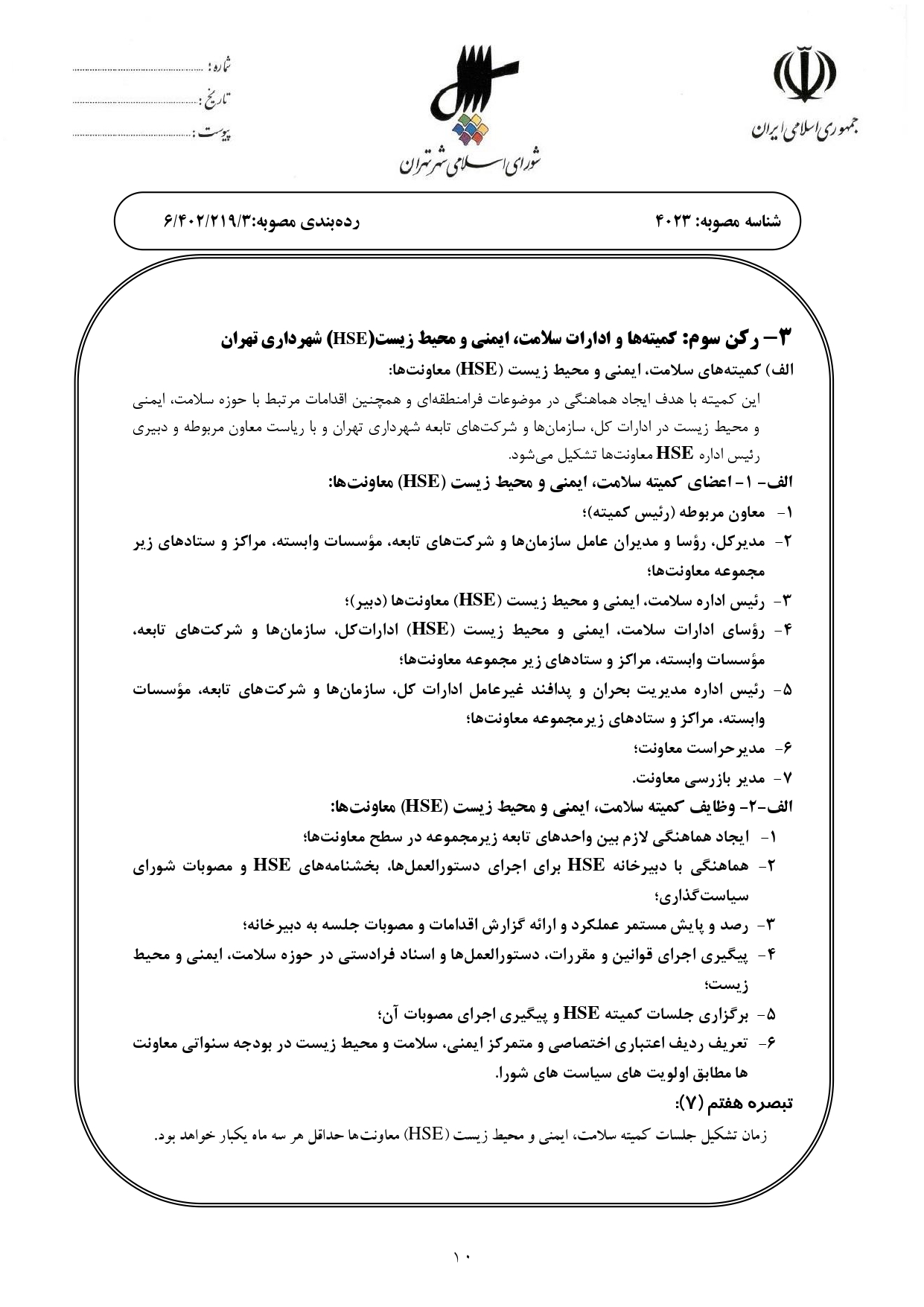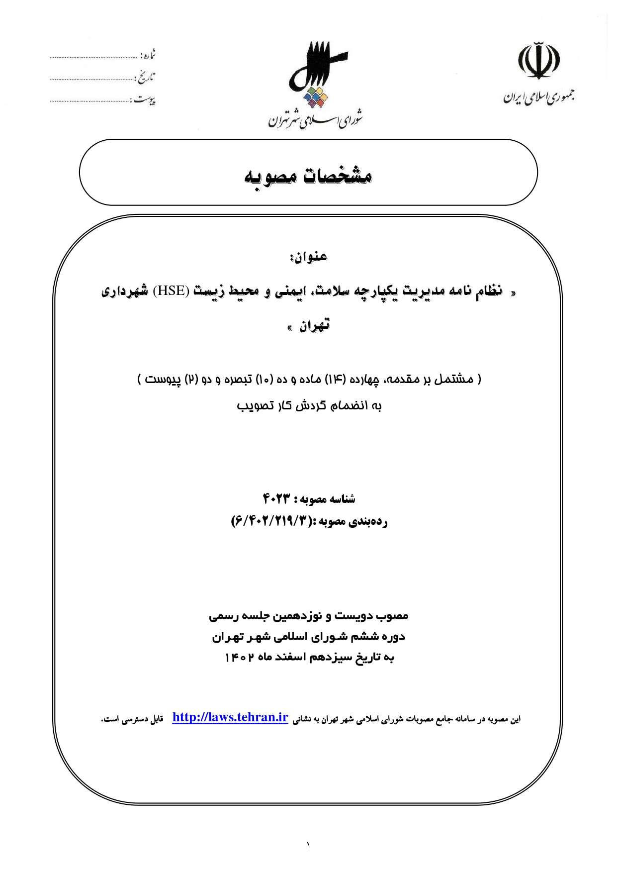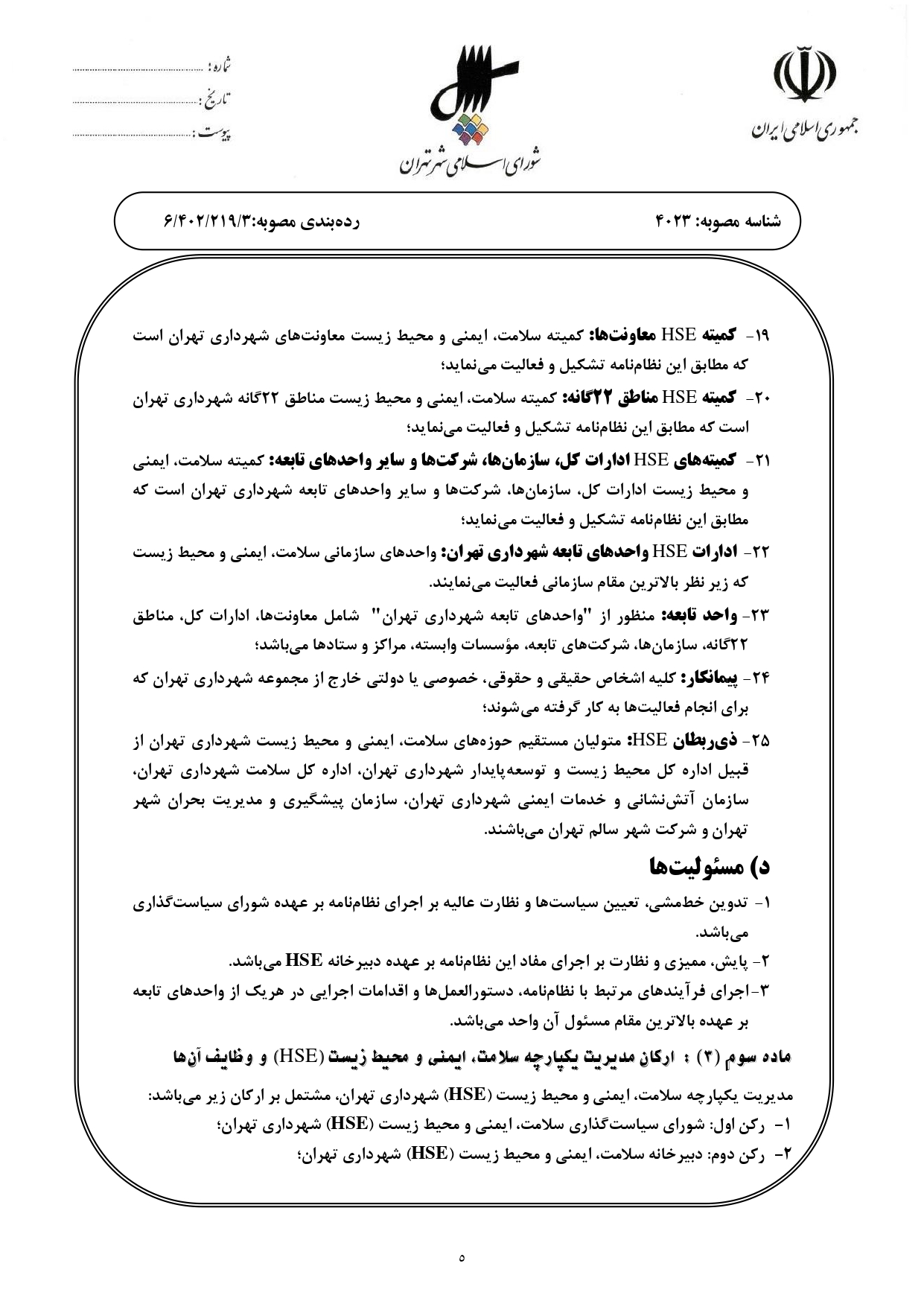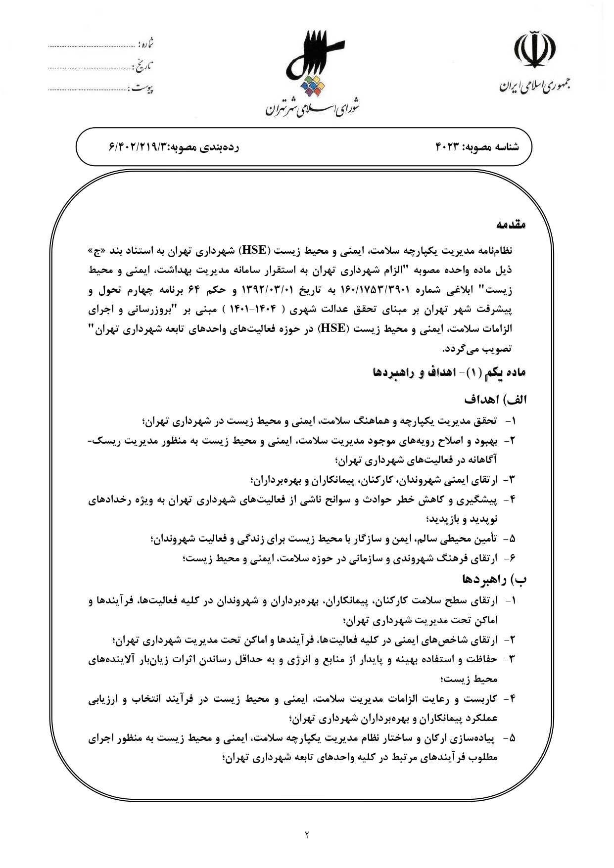 نظامنامه مديريت يكپارچه سلامت، ايمني و محيطزيست (HSE) شهرداري تهران