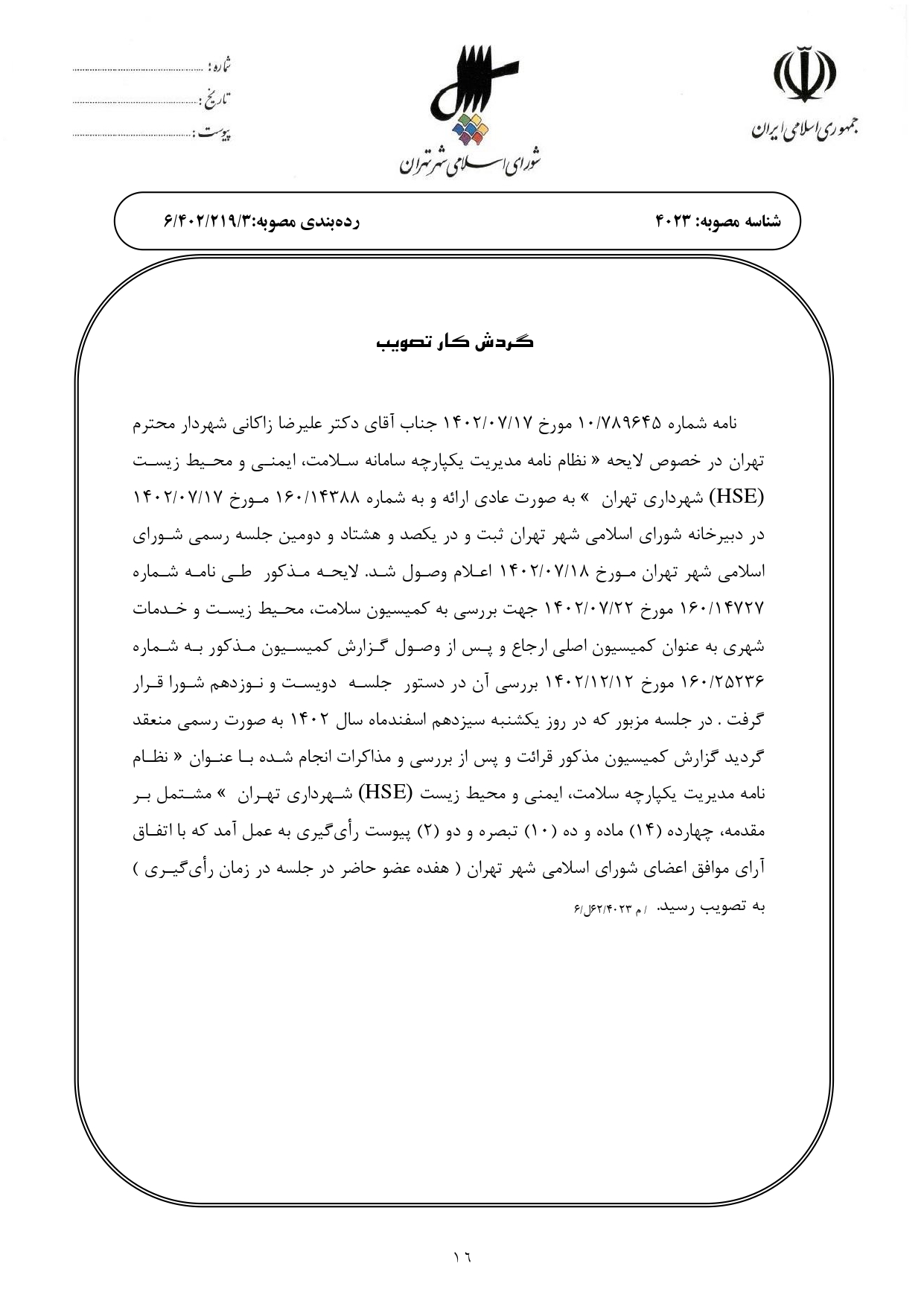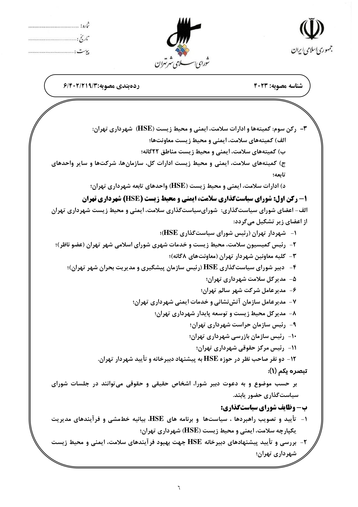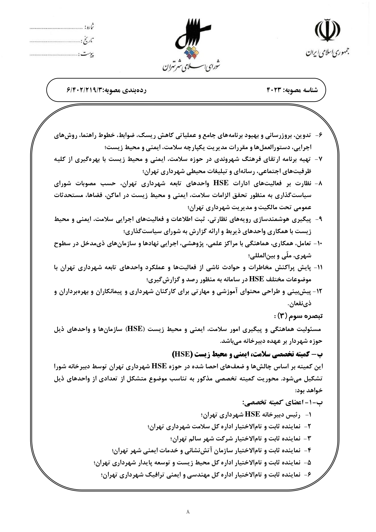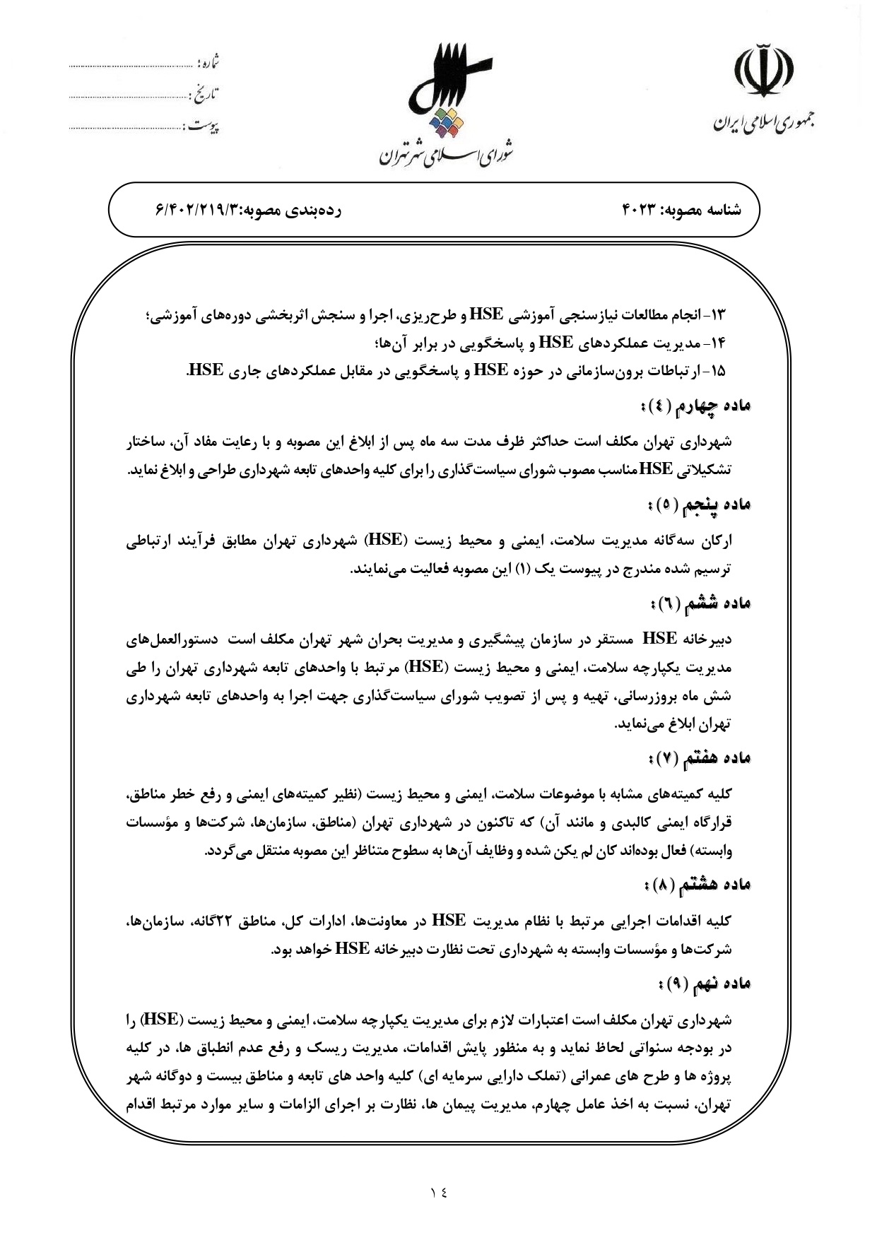 نظامنامه مديريت يكپارچه سلامت، ايمني و محيطزيست (HSE) شهرداري تهران