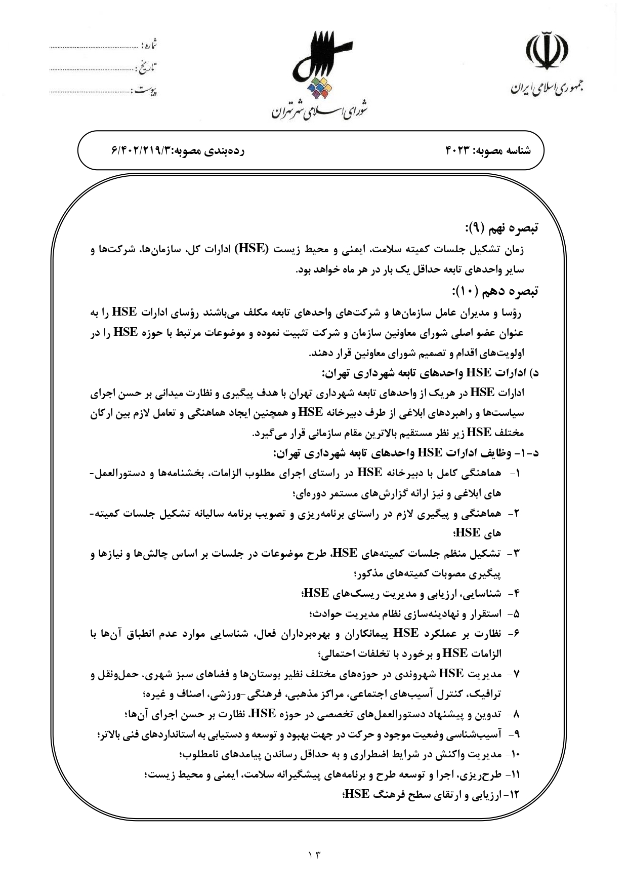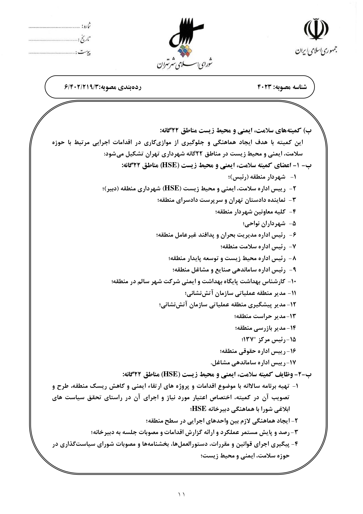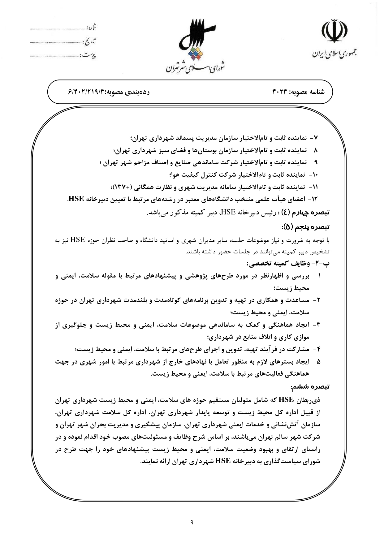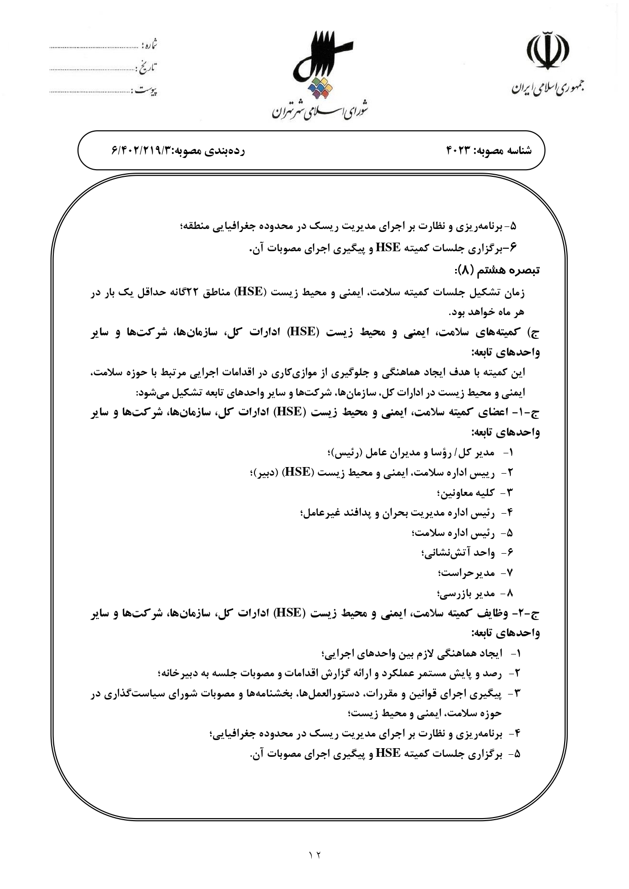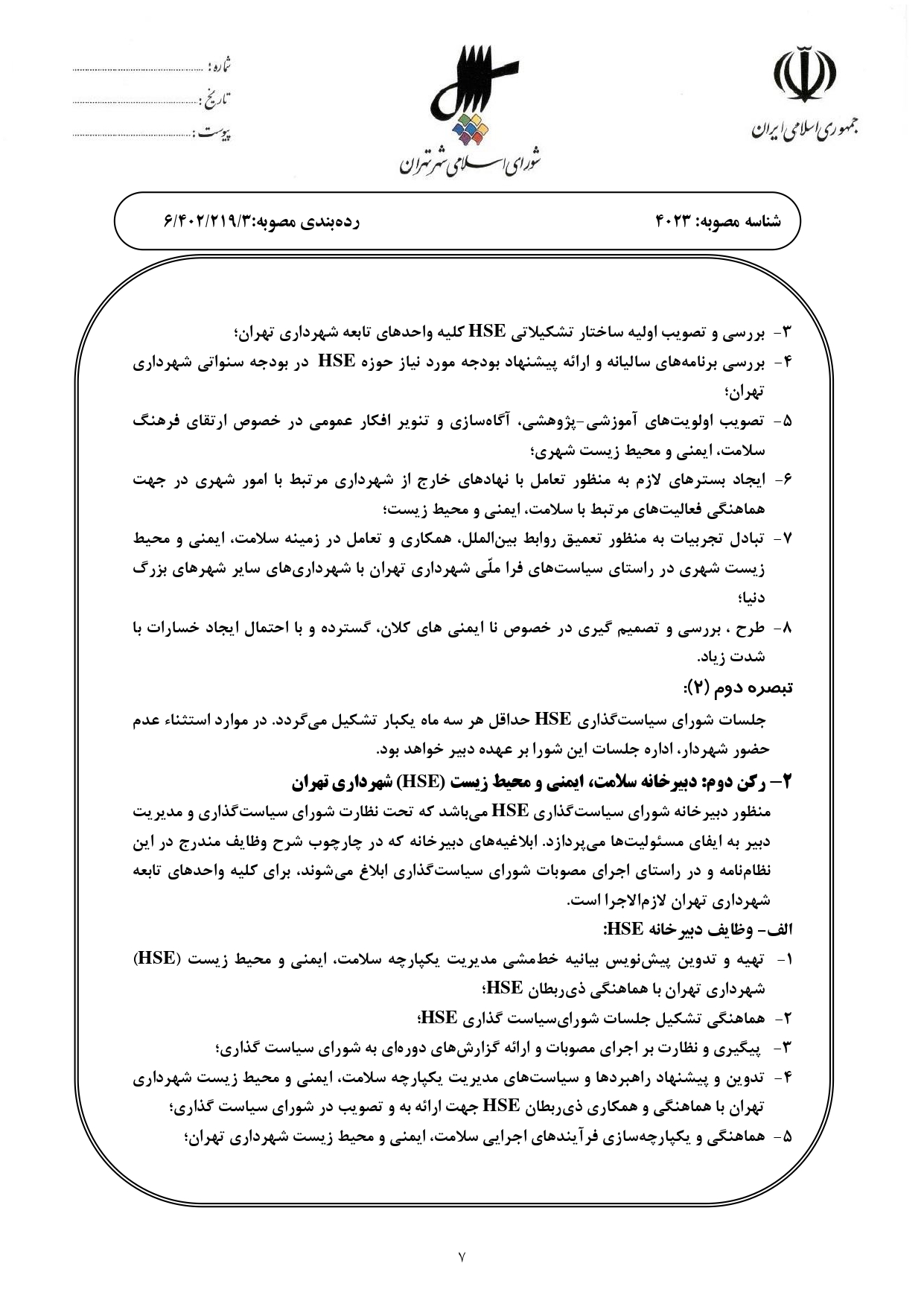نظامنامه مديريت يكپارچه سلامت، ايمني و محيطزيست (HSE) شهرداري تهران