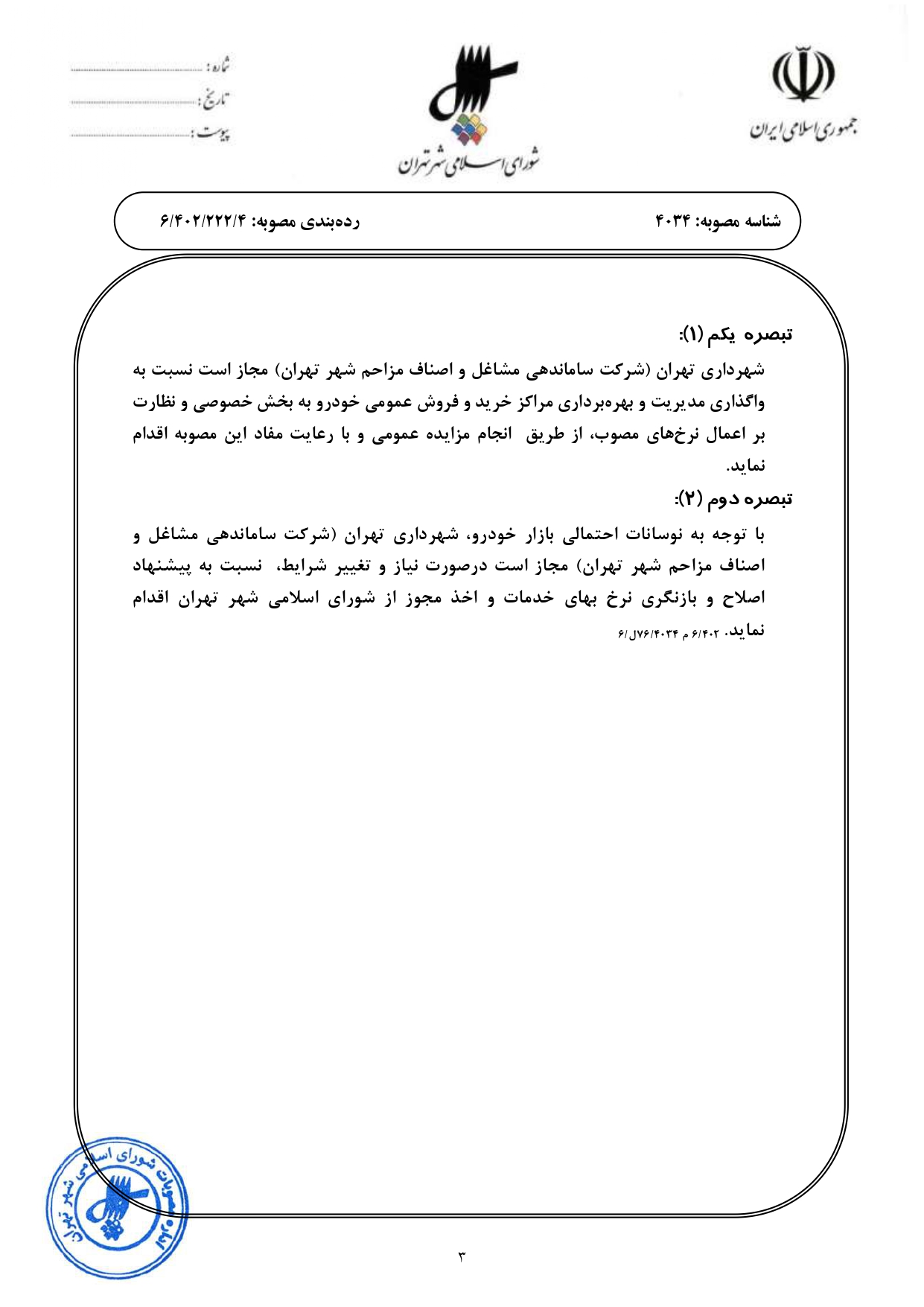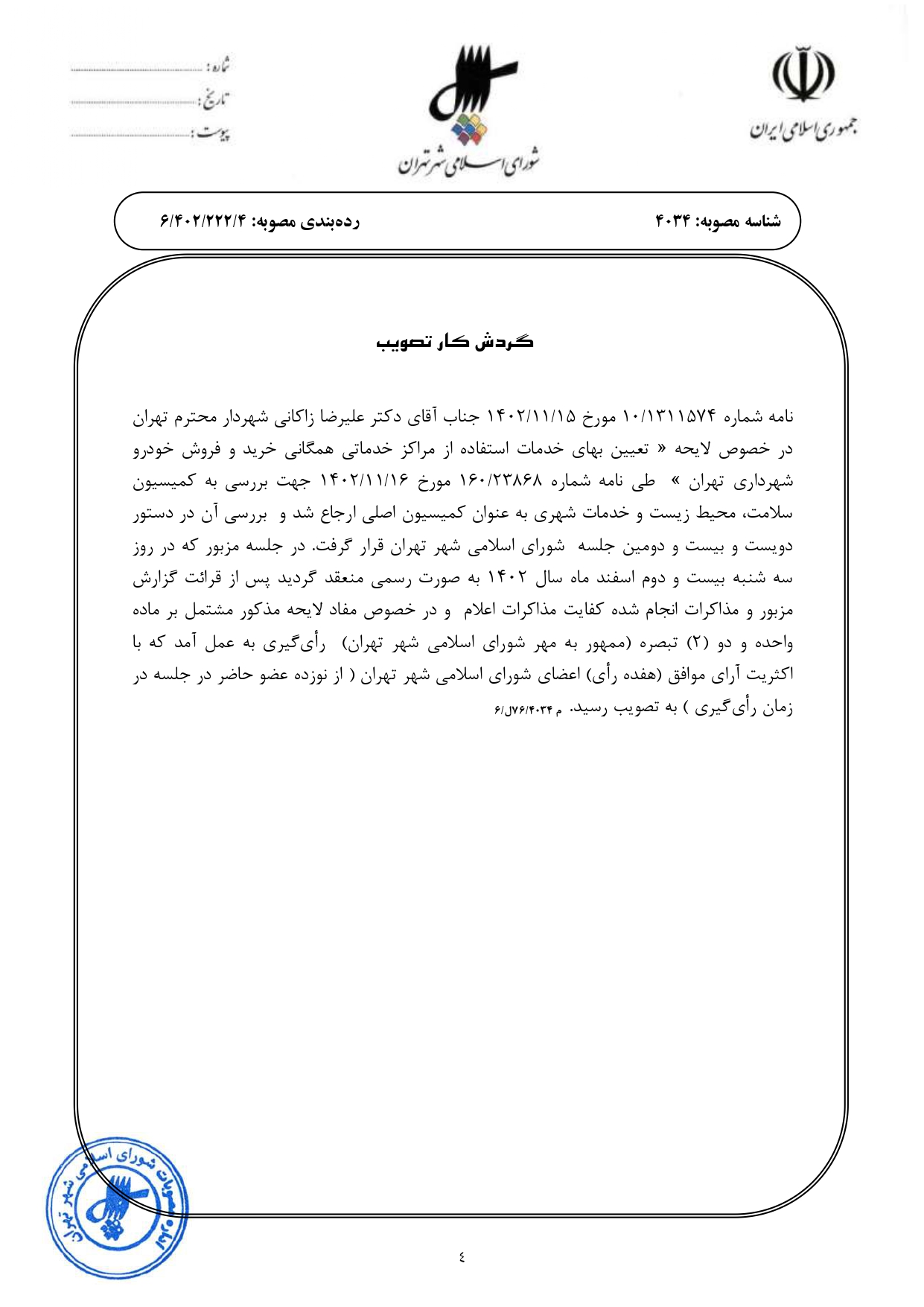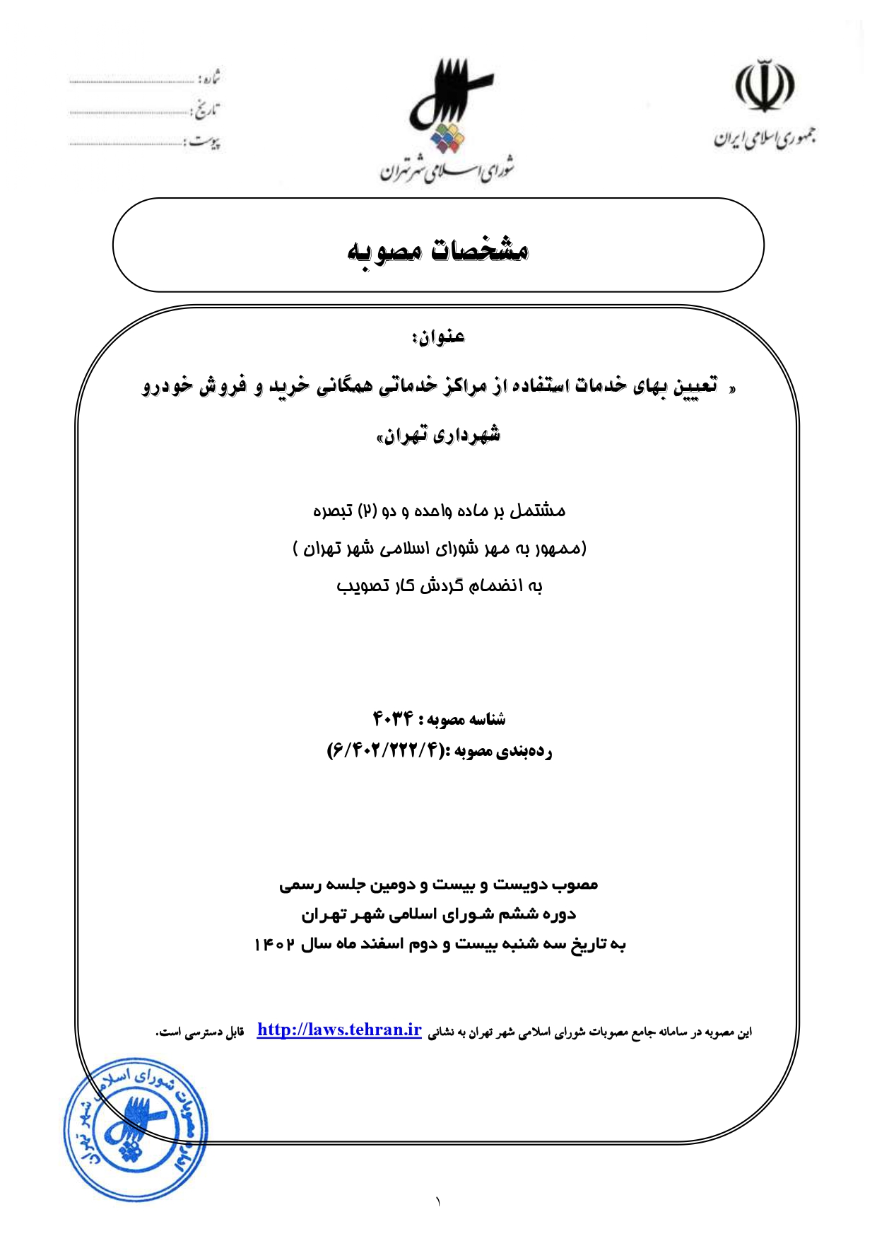 تعيين بهاي خدمات استفاده از مراكز خدماتي همگاني خريد و فروش خودرو شهرداري تهران