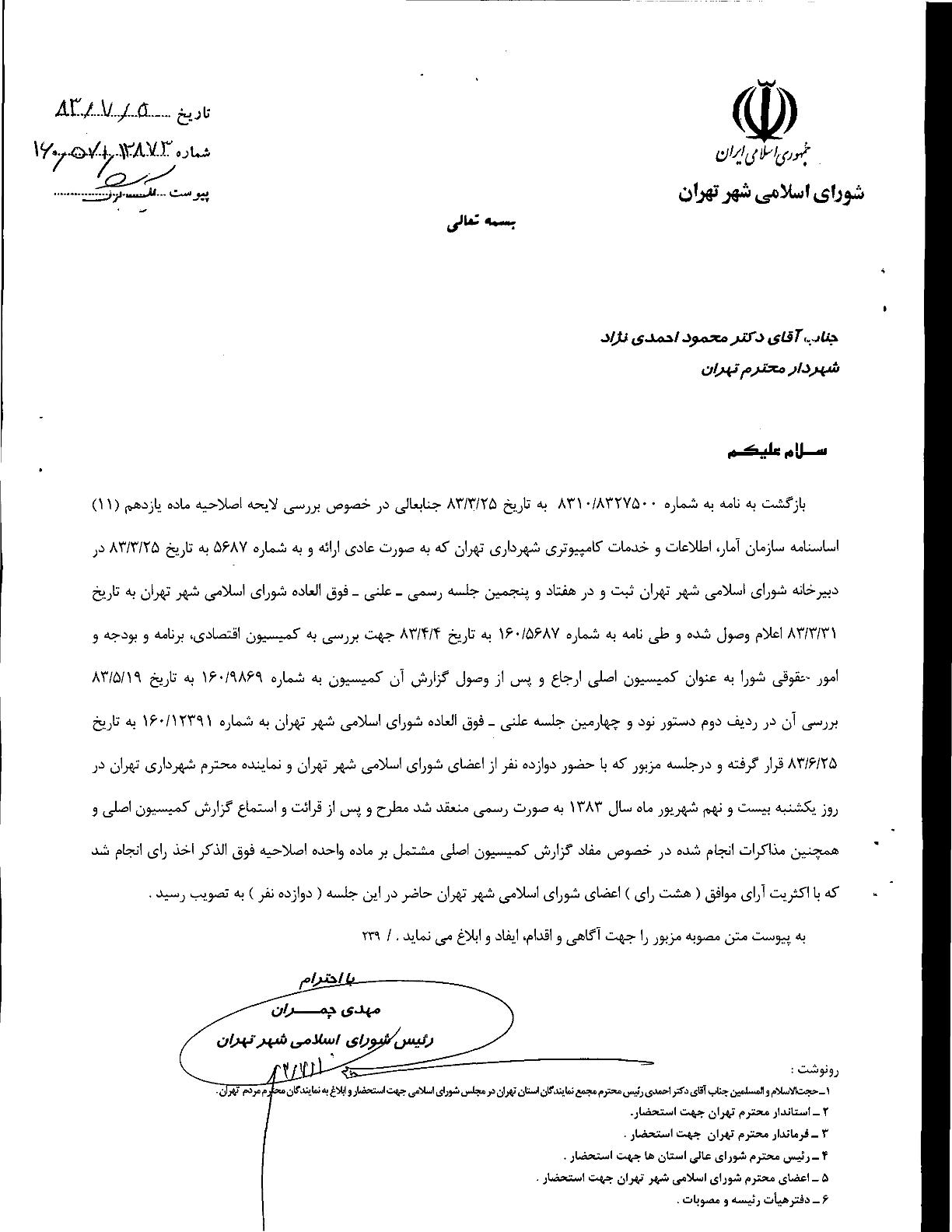 معرفی سامانه جامع مصوبات شورای اسلامی شهر تهران