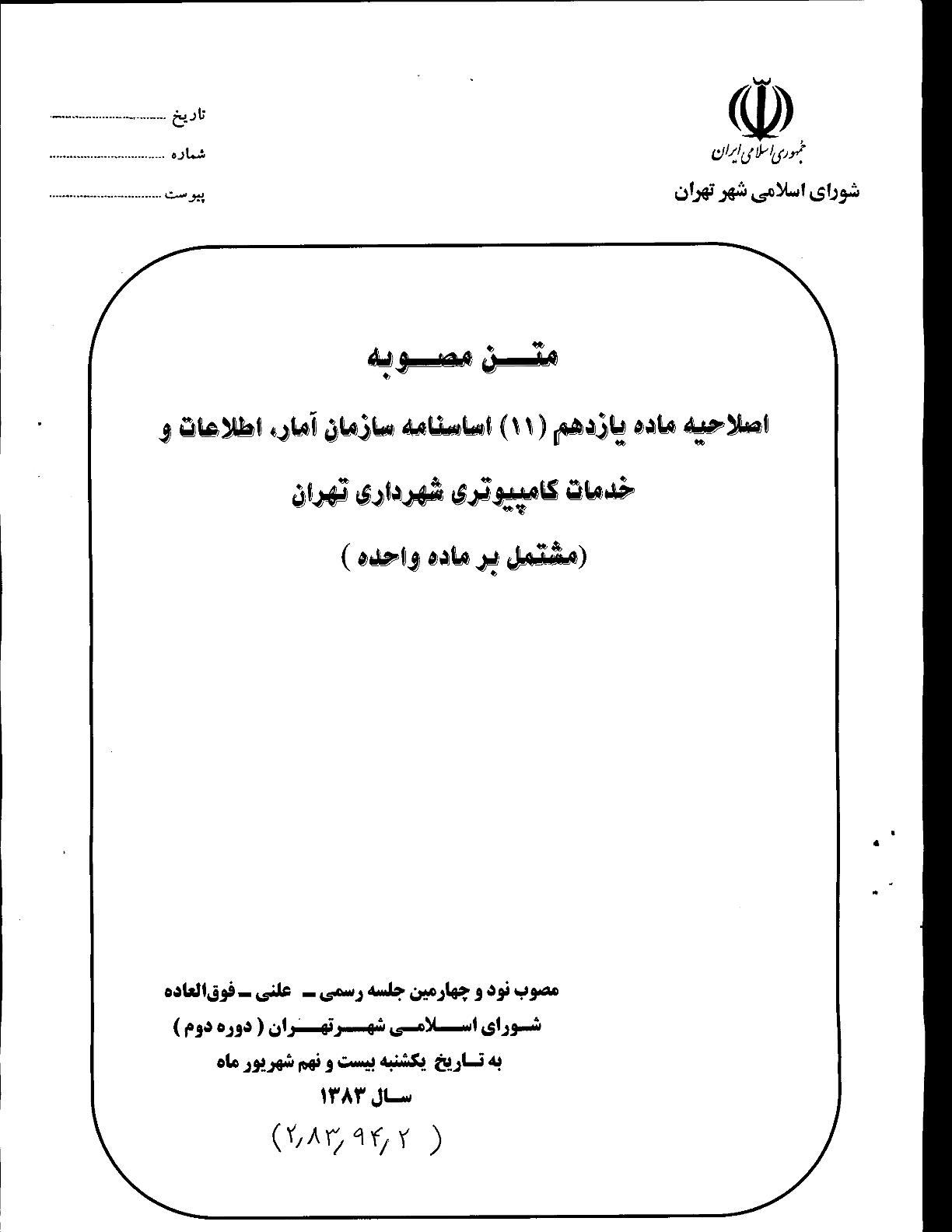 اصلاحيه ماده يازدهم (11) اساسنامه سازمان آمار, اطلاعات و خدمات كامپيوتري شهرداري تهران