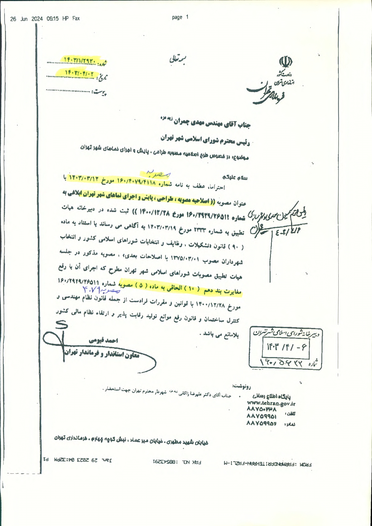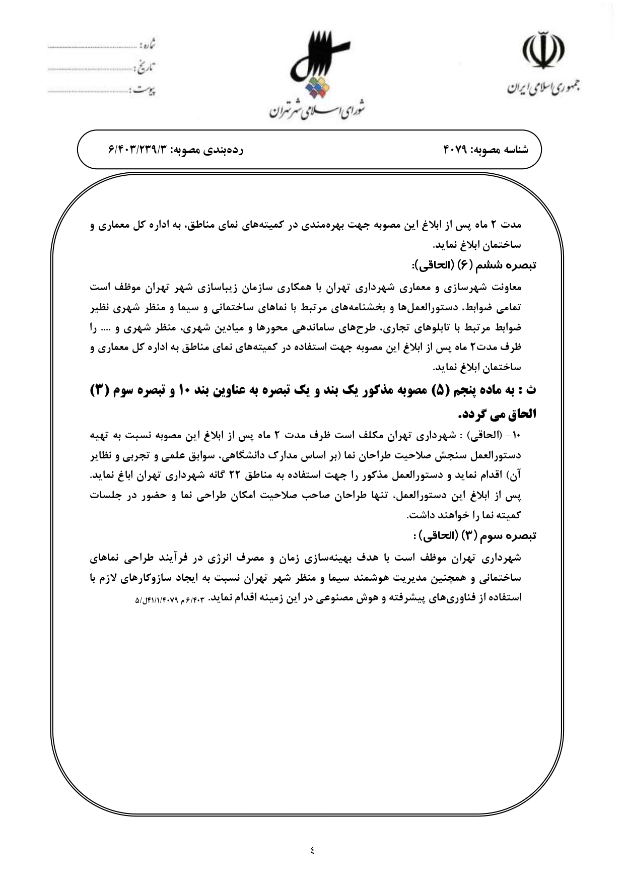 اصلاحيه مصوبه «طراحي، پايش و اجراي نماهاي شهر تهران» - ابلاغي به شماره 160/2929/26511 مورخ 1400/12/28