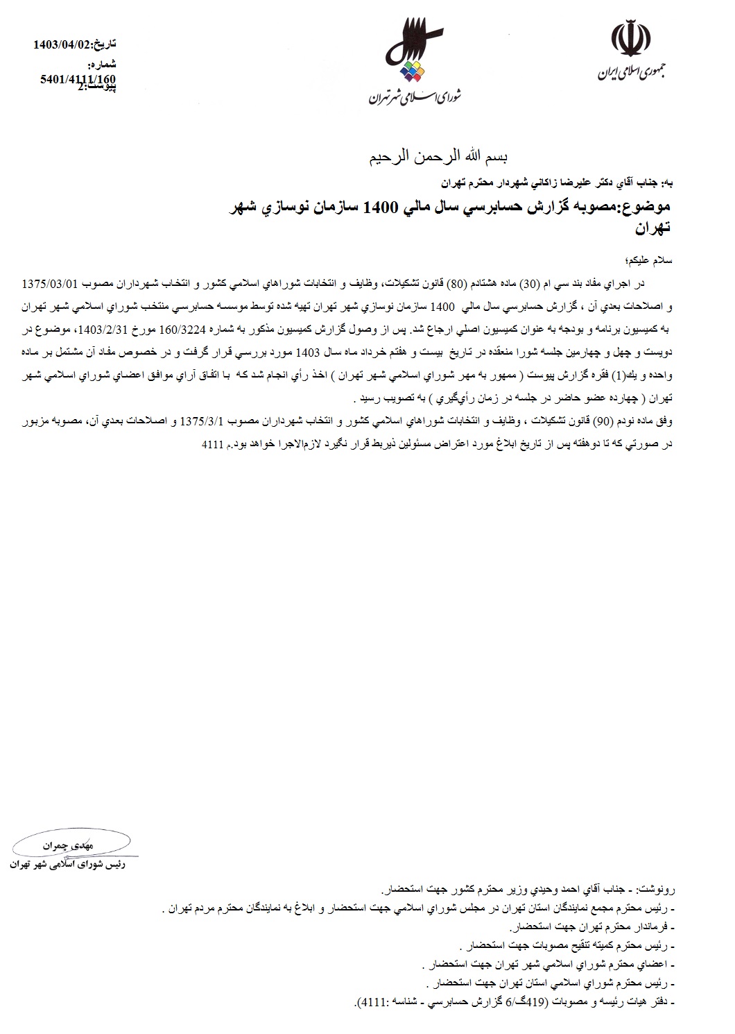 گزارش حسابرسي سال مالي 1400 سازمان نوسازي شهر تهران