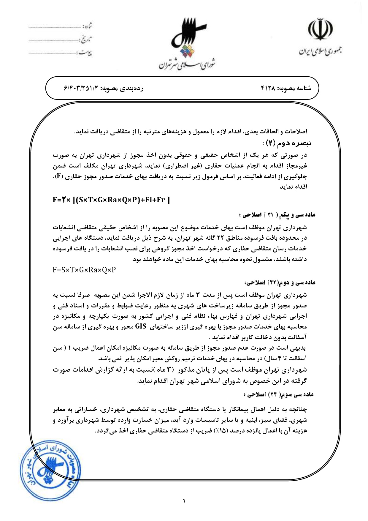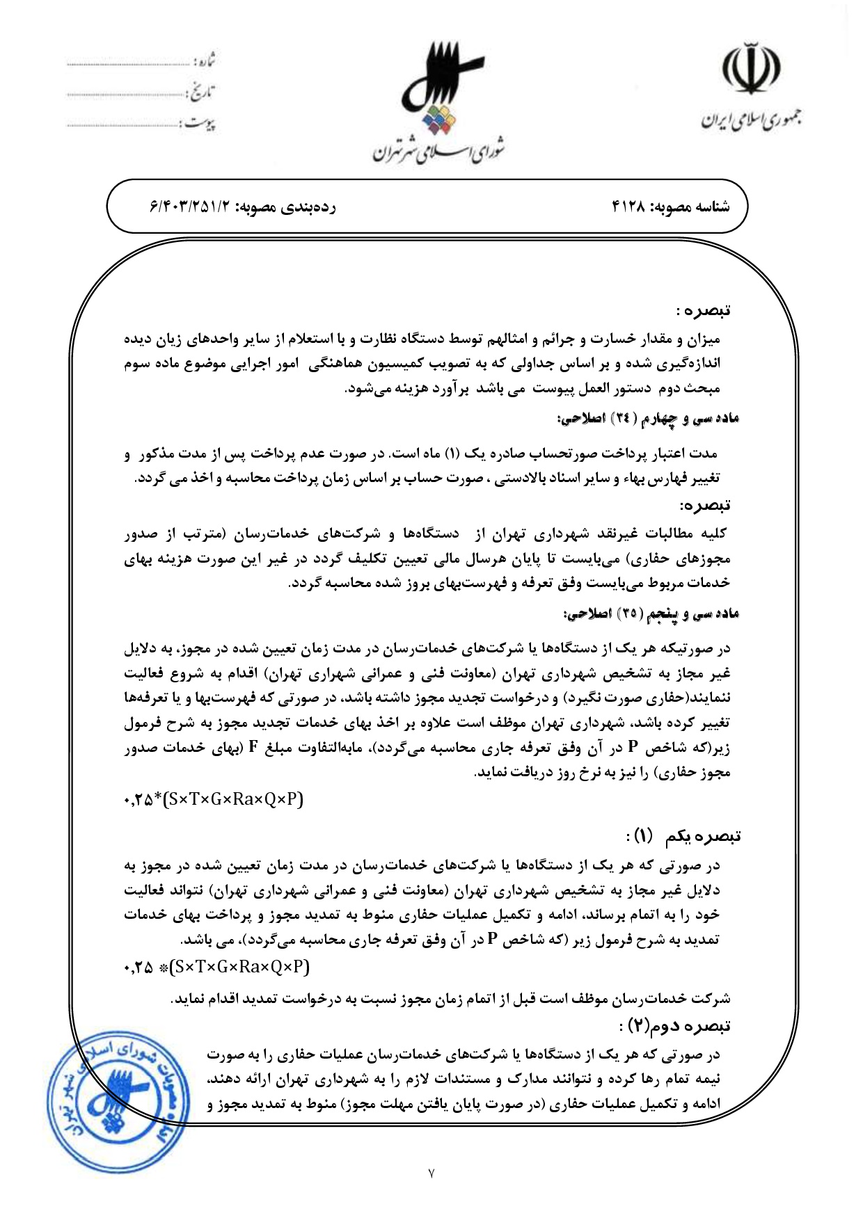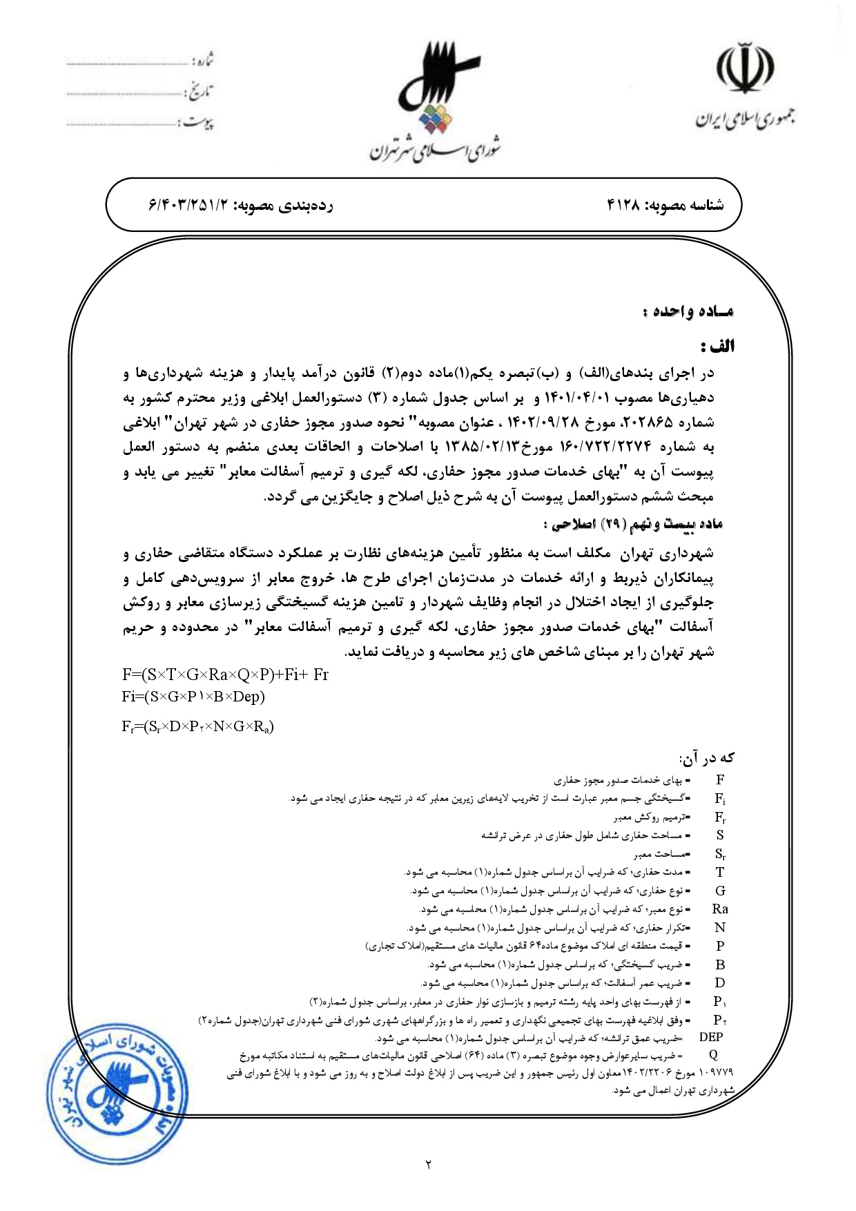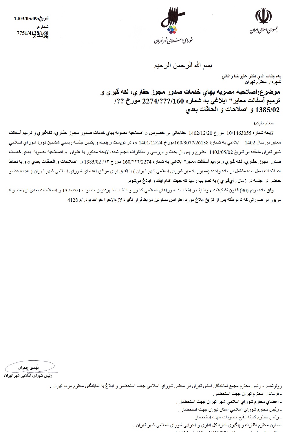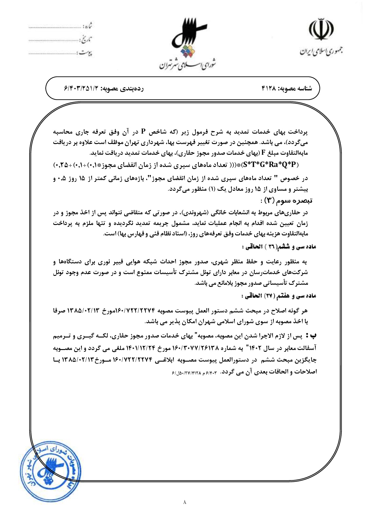 اصلاحيه مصوبه «بهاي خدمات صدور مجوز حفاري، لكهگيري و ترميم آسفالت معابر» - ابلاغي به شماره 160/722/2274 مورخ 1385/2/13 و اصلاحات و الحاقات بعدي