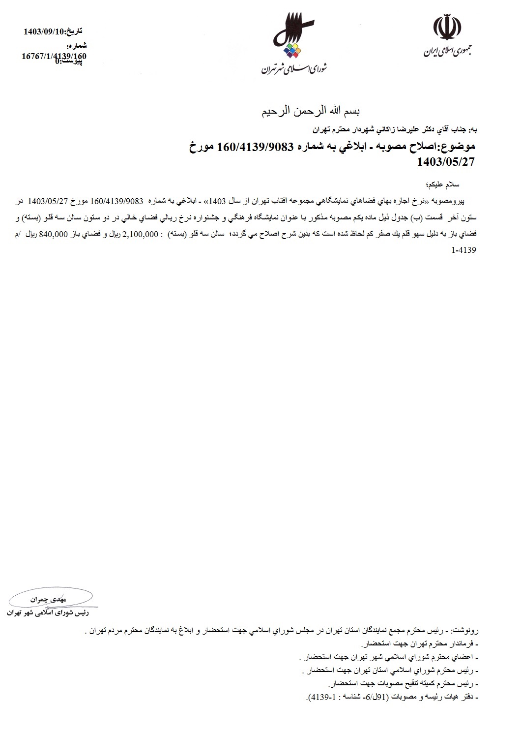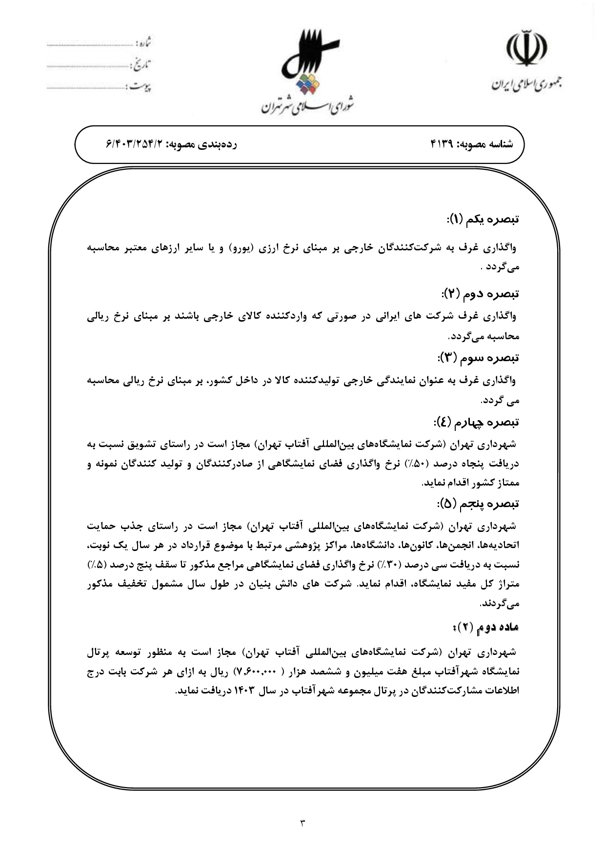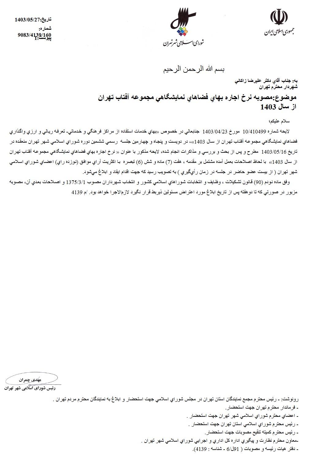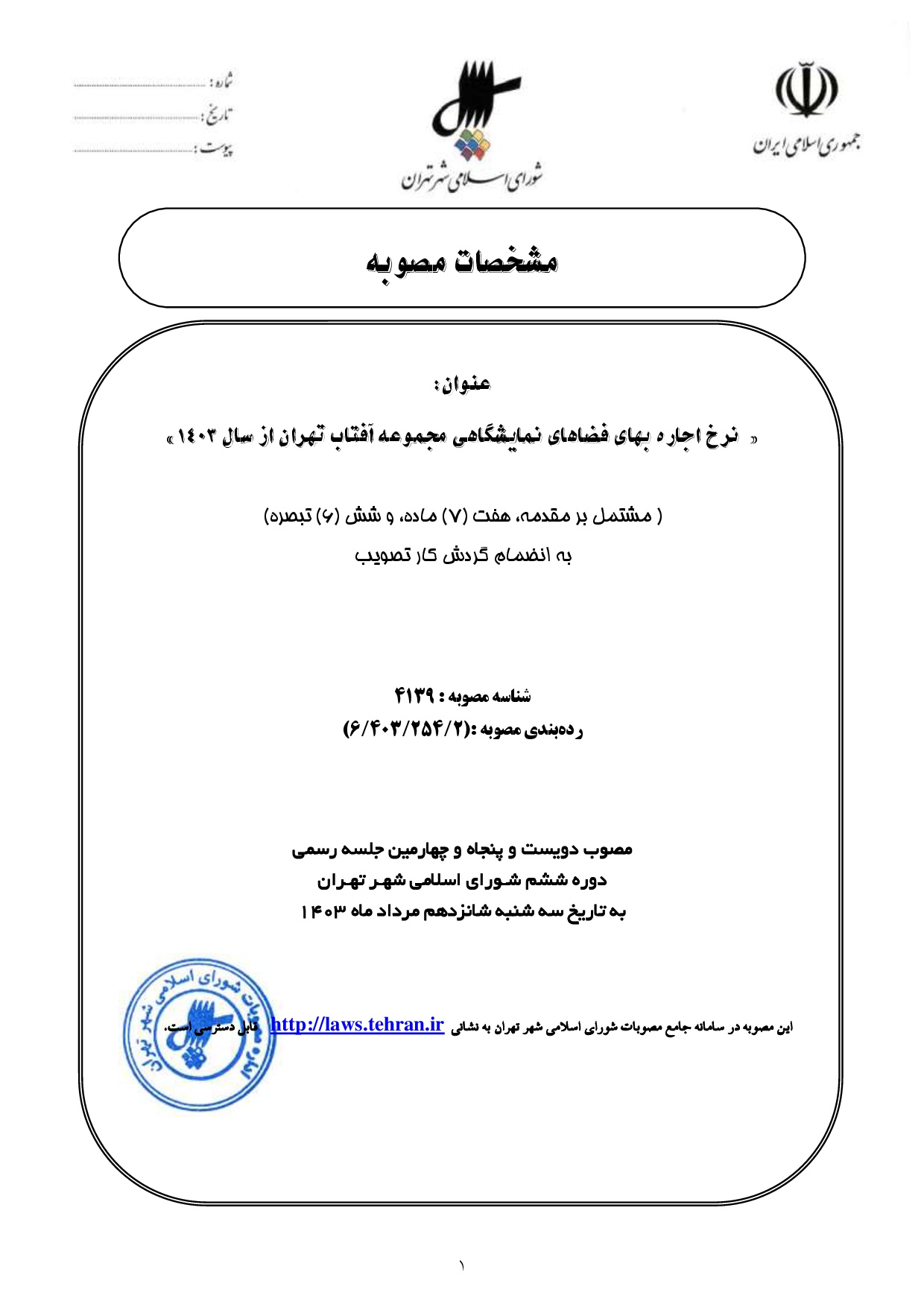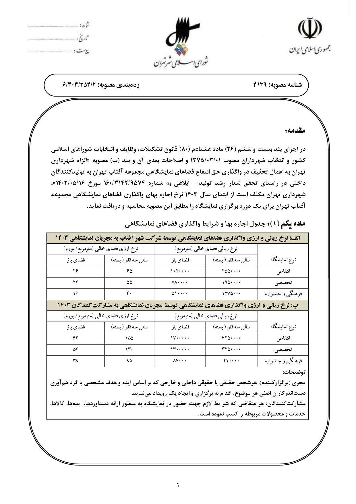نرخ اجارهبهاي فضاهاي نمايشگاهي مجموعه آفتاب تهران از سال 1403