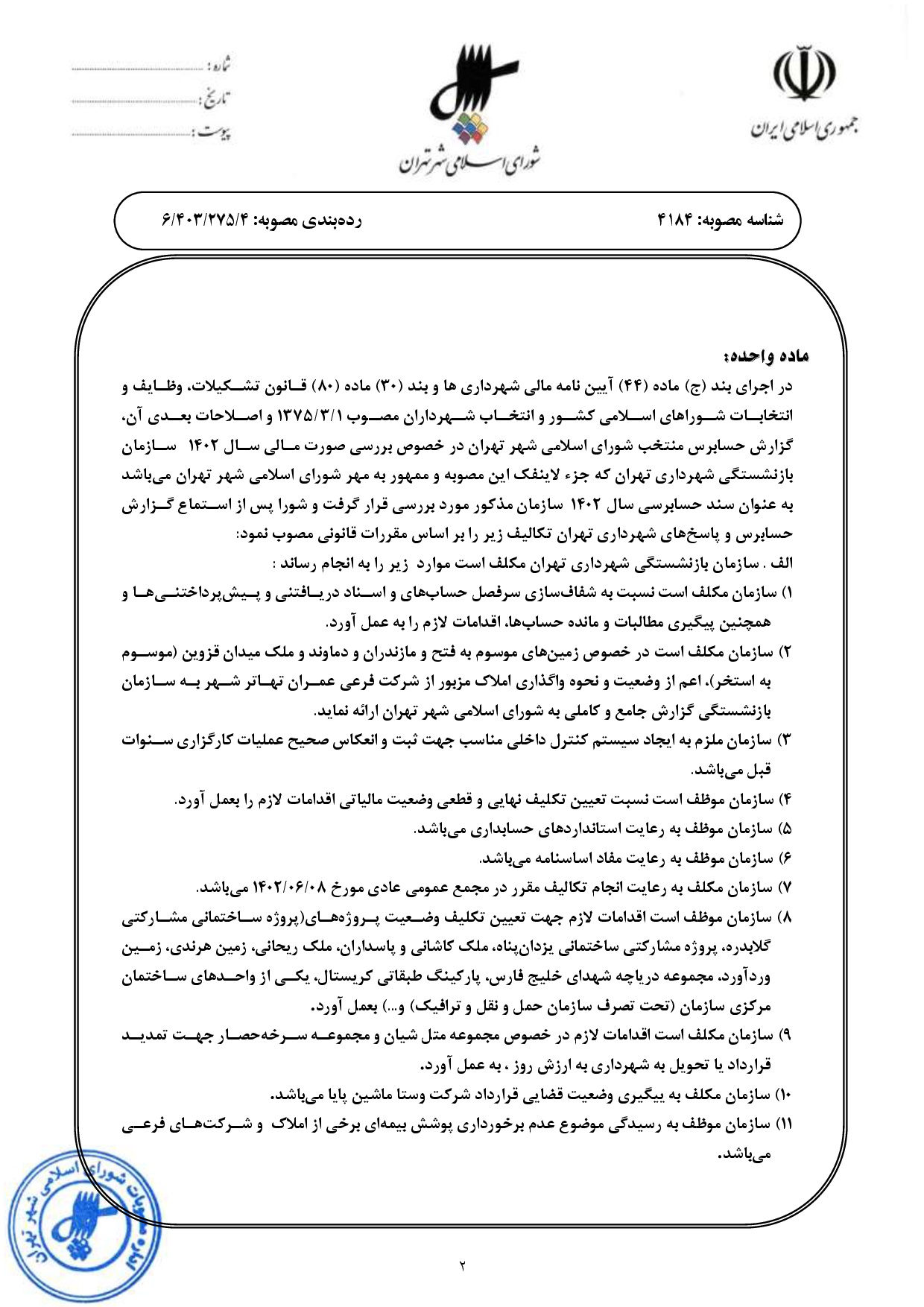 گزارش حسابرسي سال مالي 1402 سازمان بازنشستگي شهرداري تهران