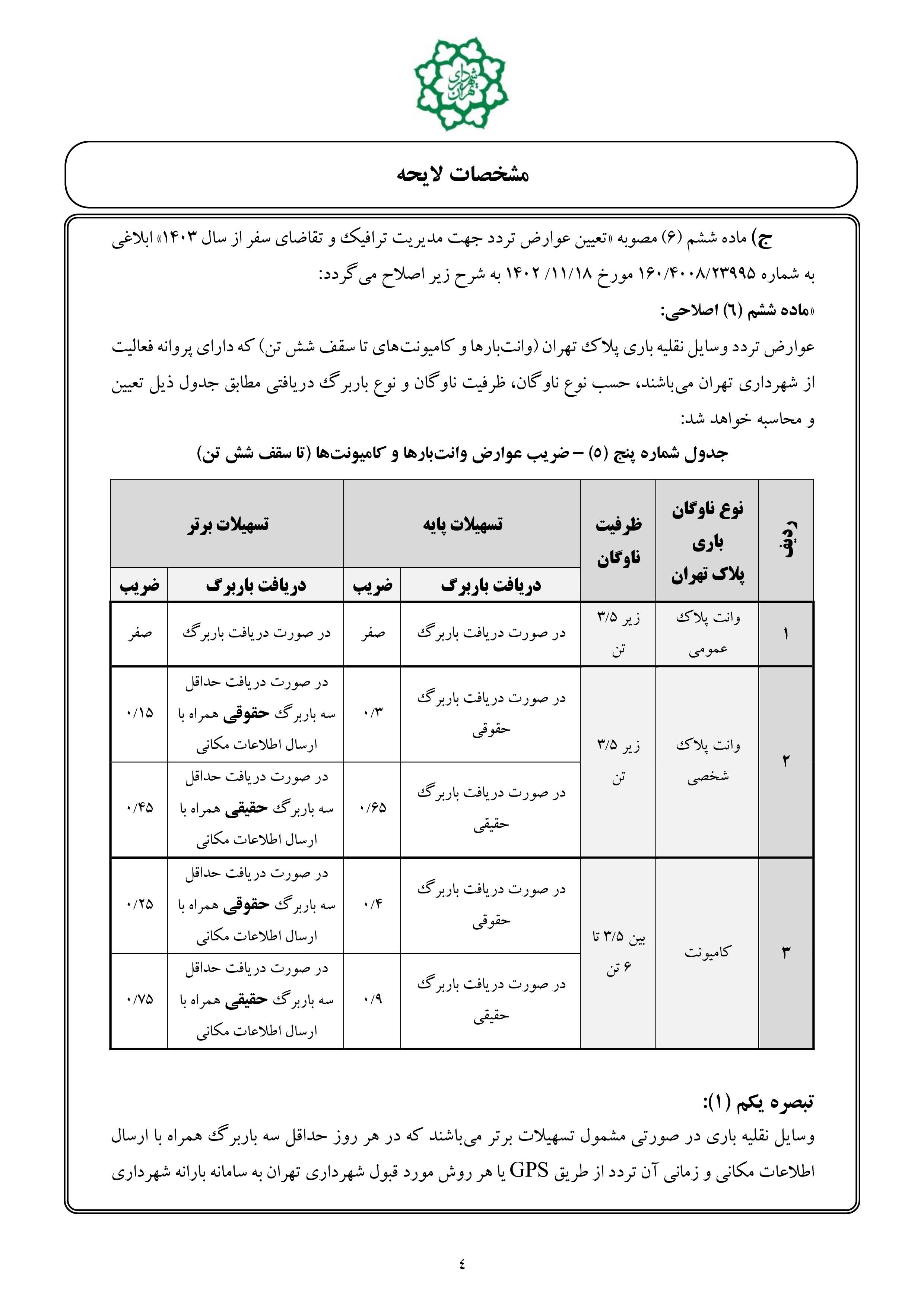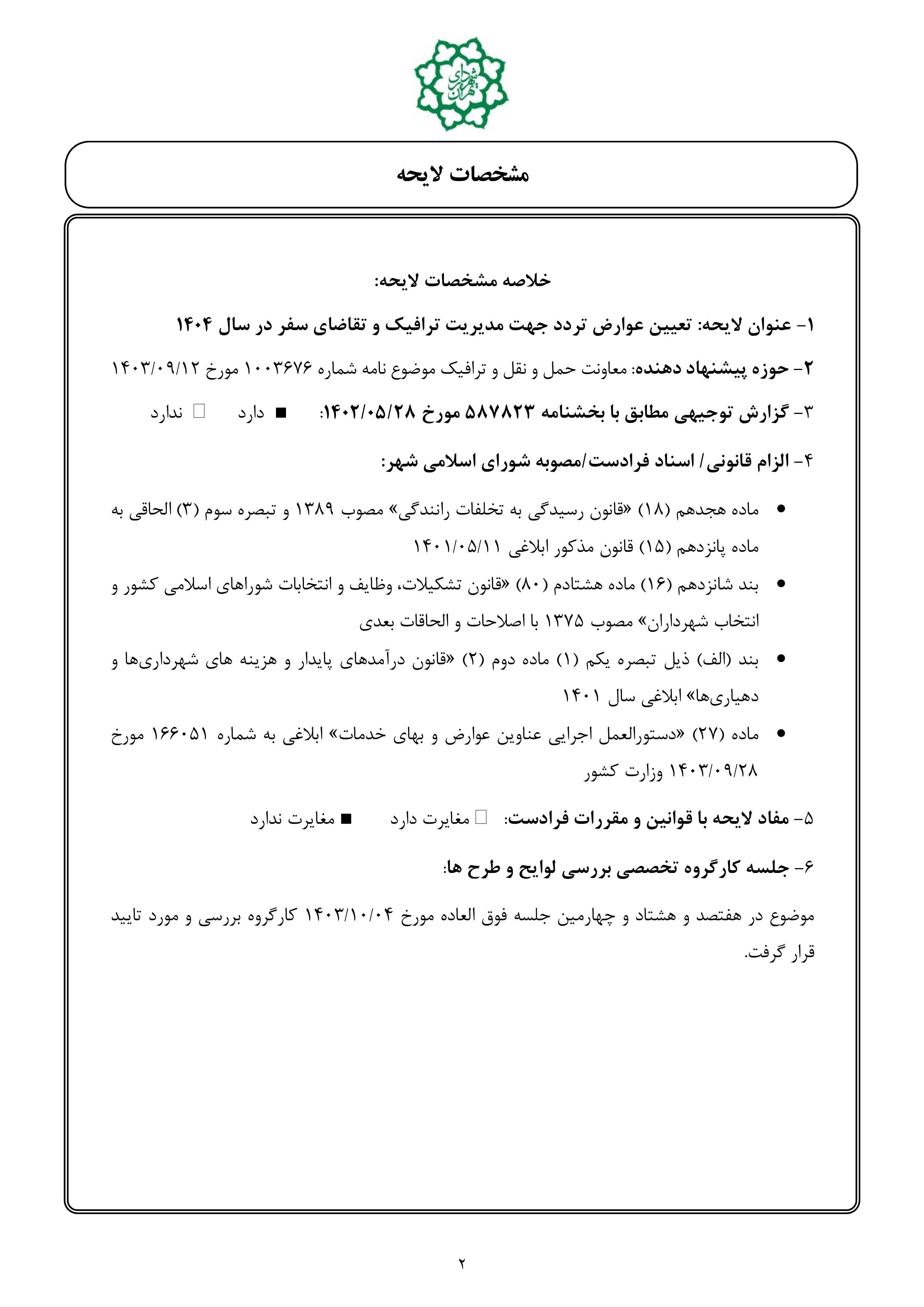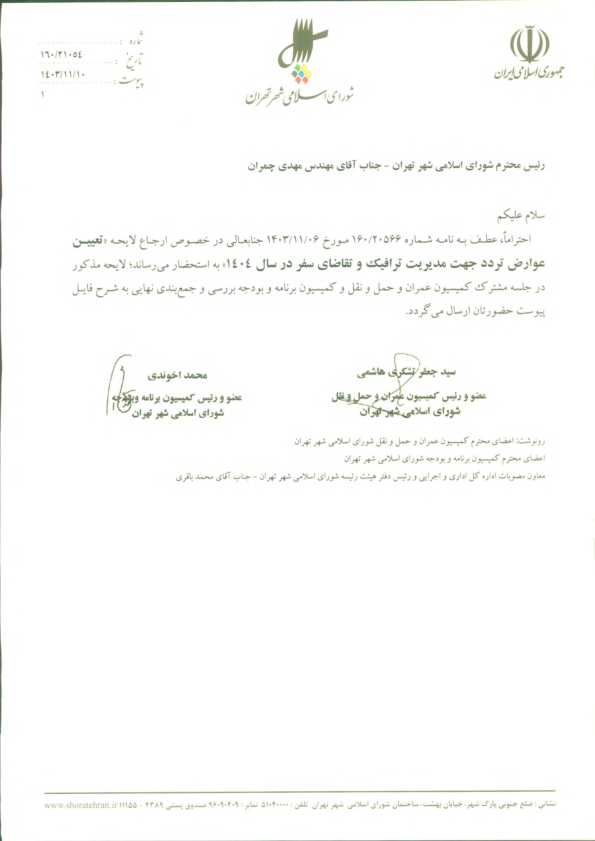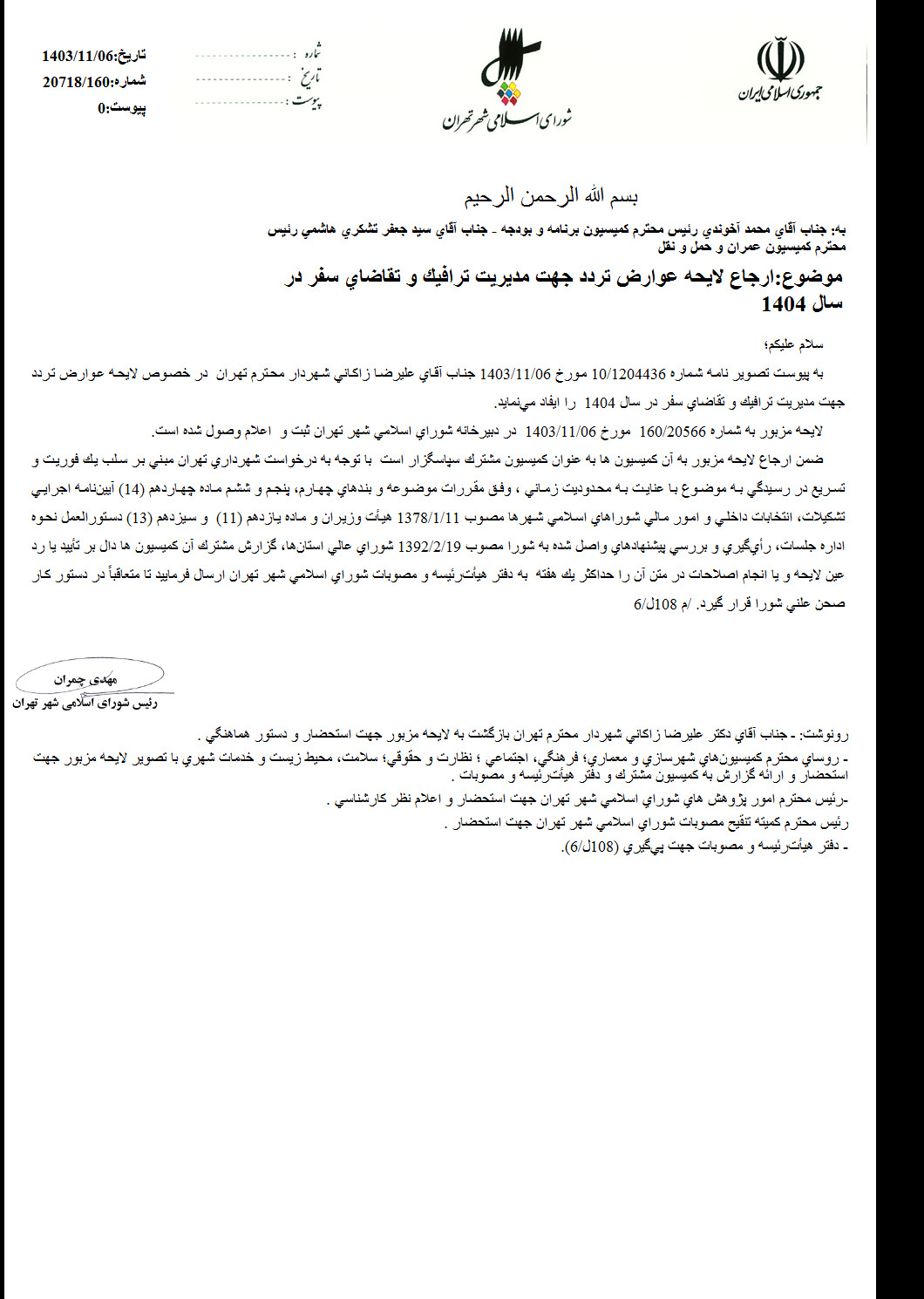تعيين عوارض تردد جهت مديريت ترافيك و تقاضاي سفر از سال 1404