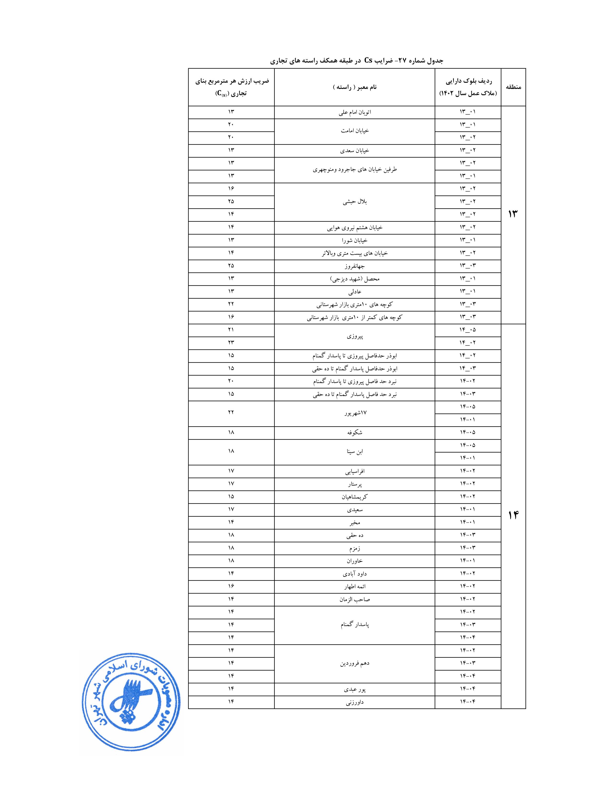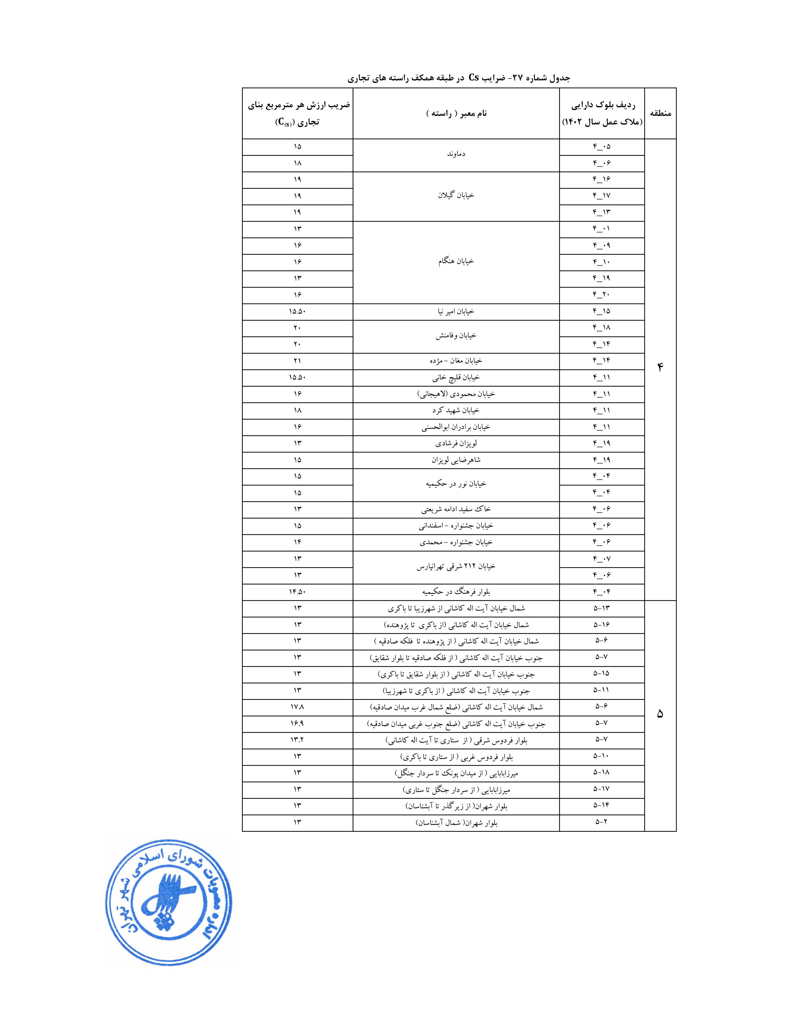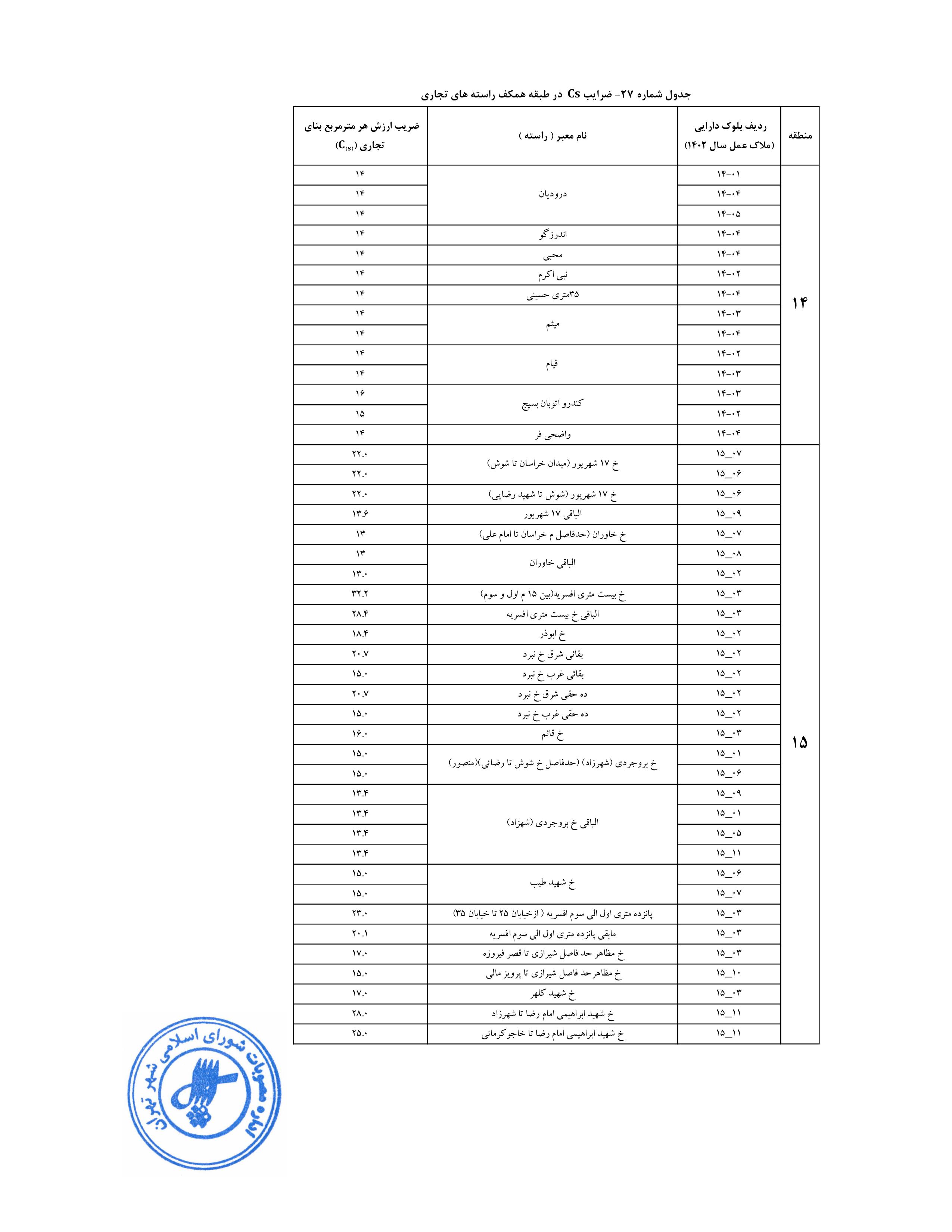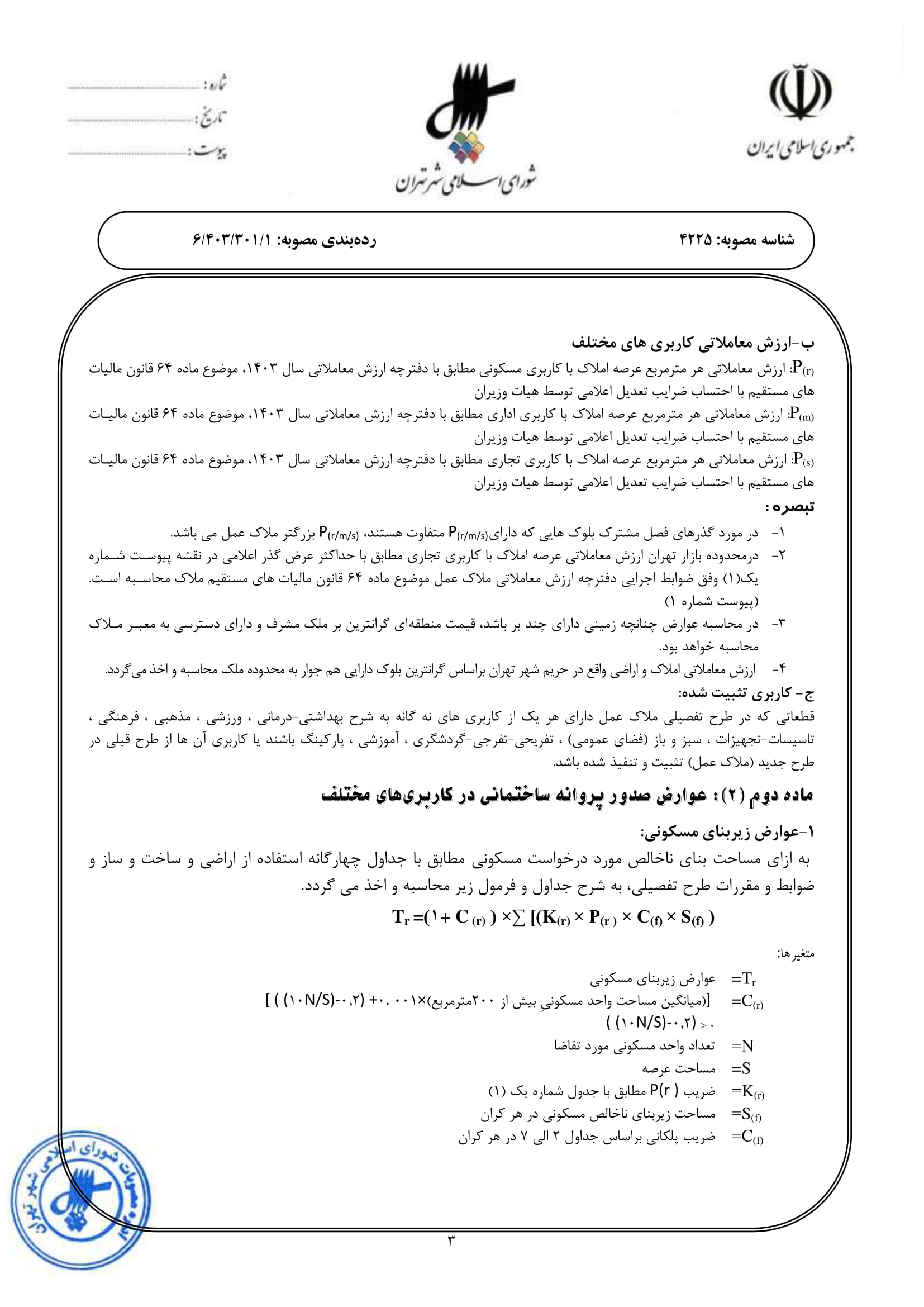 عوارض ساختماني، ارزش‌افزوده ناشي از اجراي طرح‌هاي توسعه شهري و بهاي خدمات حوزه شهرسازي و ارزش معاملاتي موضوع تبصره 11 ماده صد قانون شهرداري از سال 1404