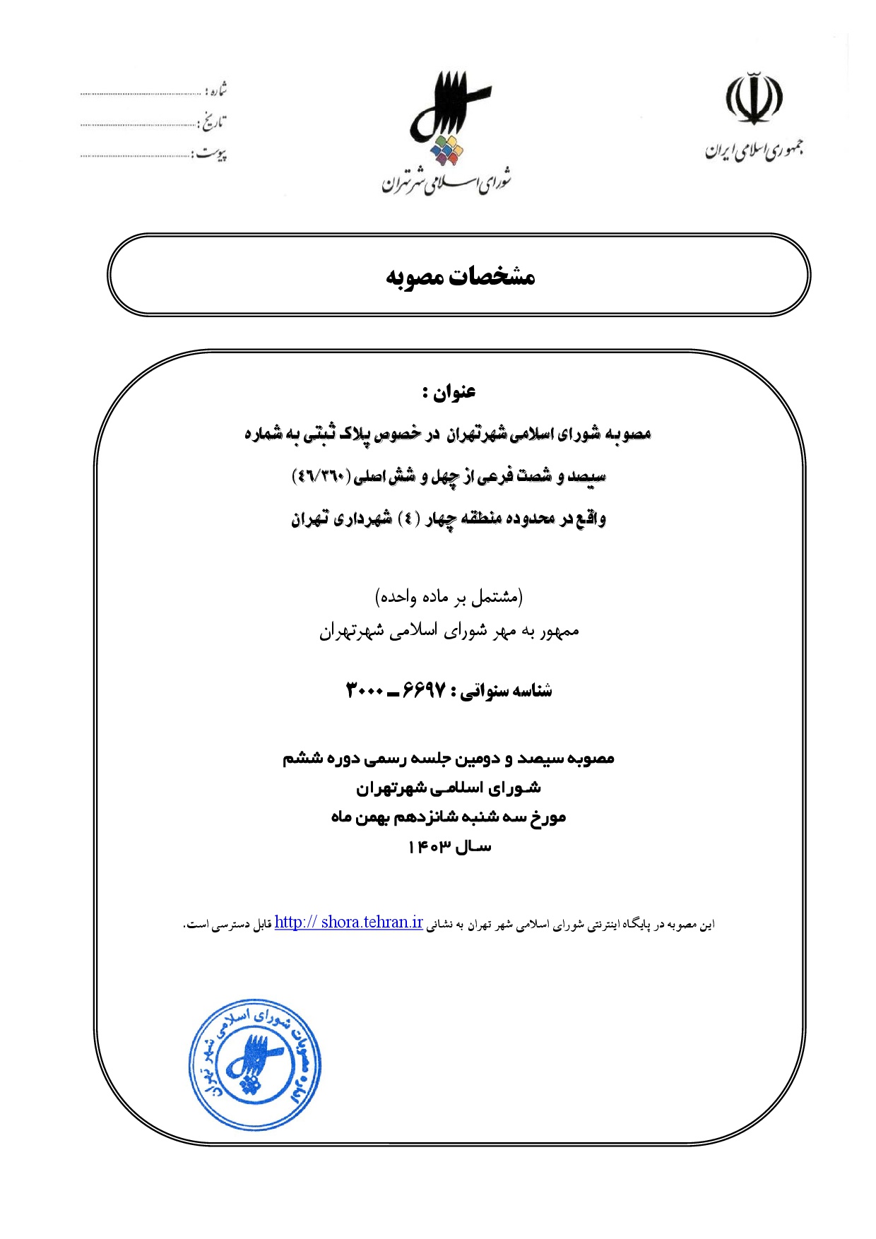 مصوبه شوراي اسلامي شهر تهران در خصوص پلاك ثبتي به شماره سيصد و شصت فرعي از چهل و شش اصلي (46/360) واقع در محدوده منطقه چهار (4) شهرداري تهران