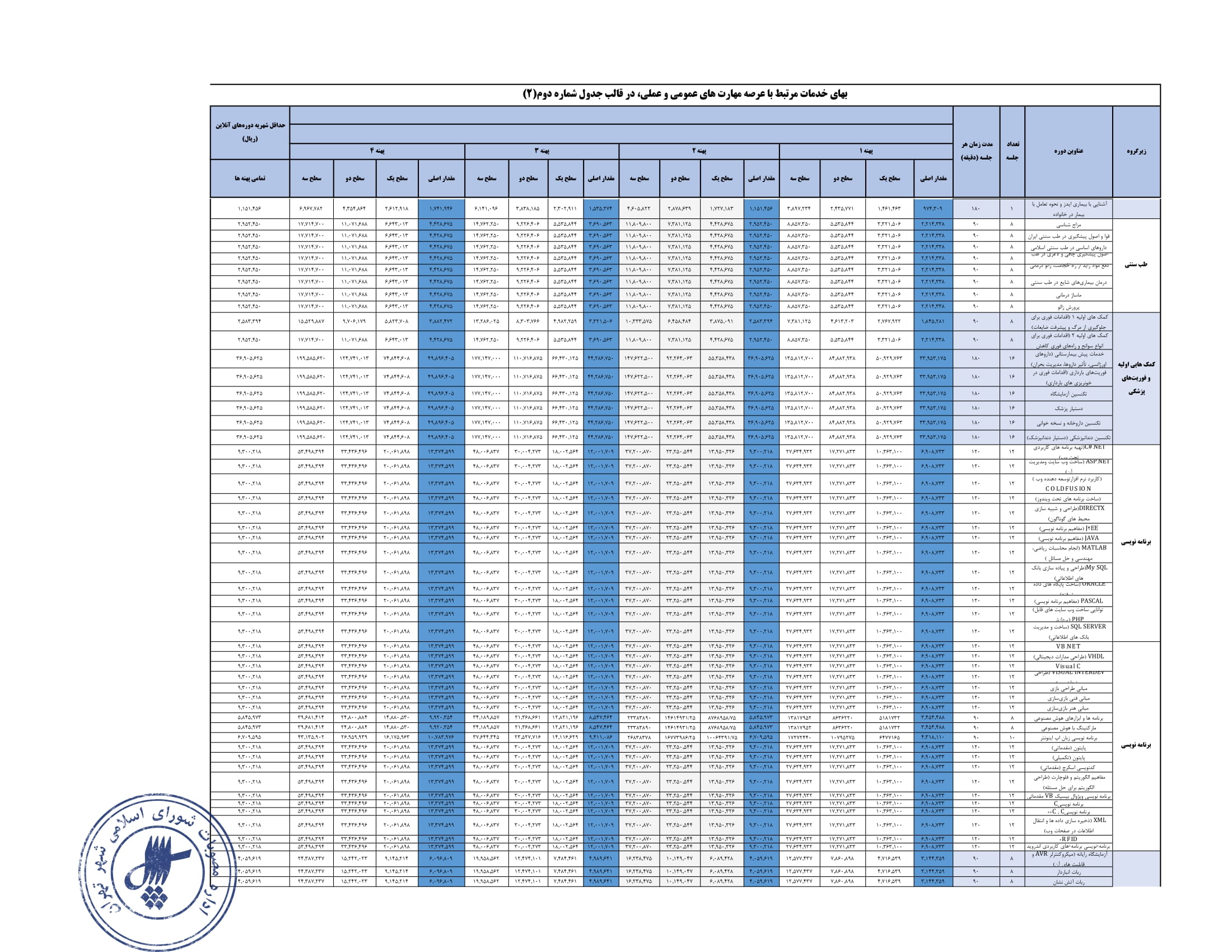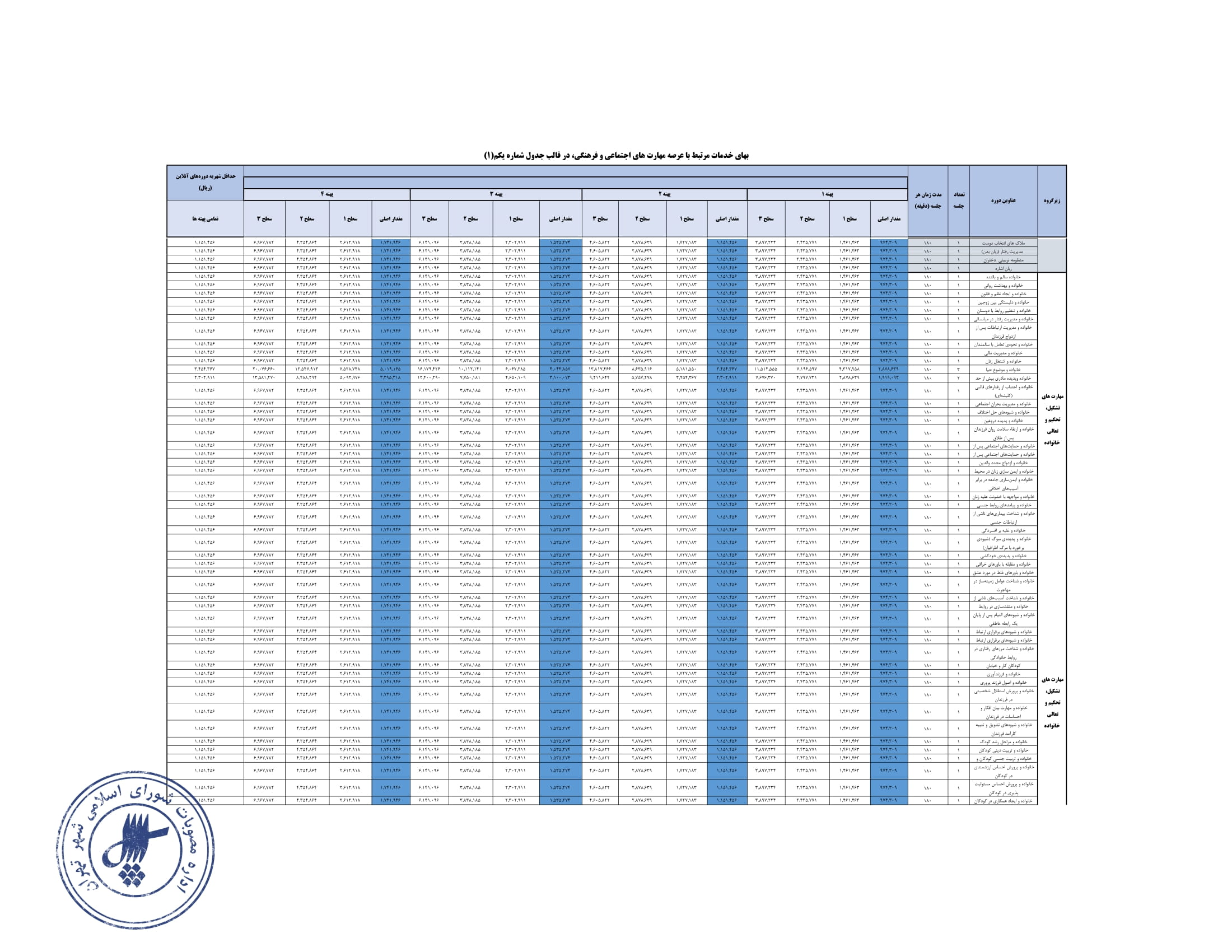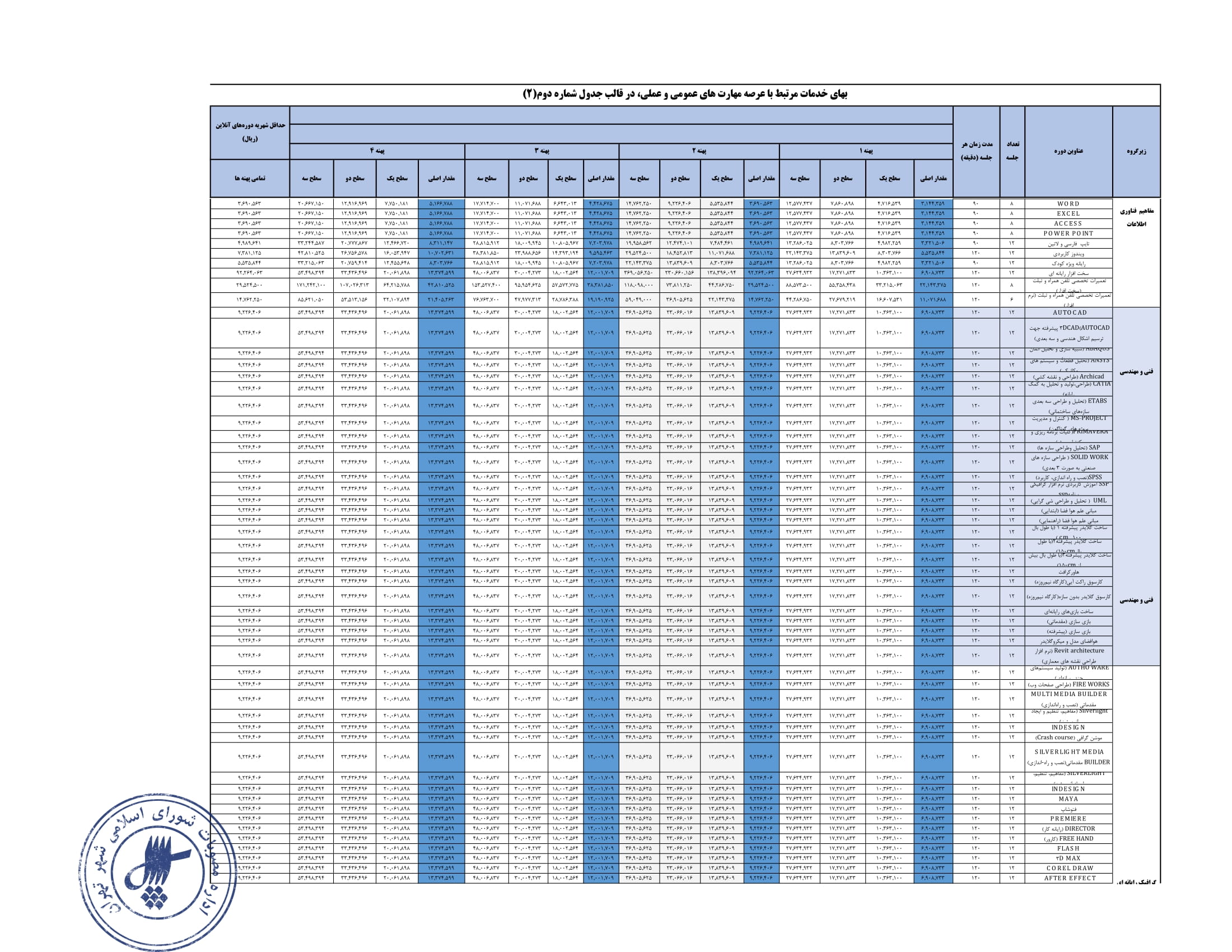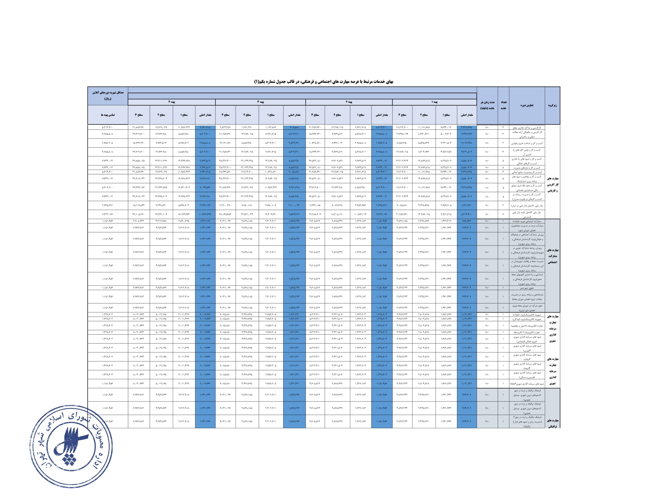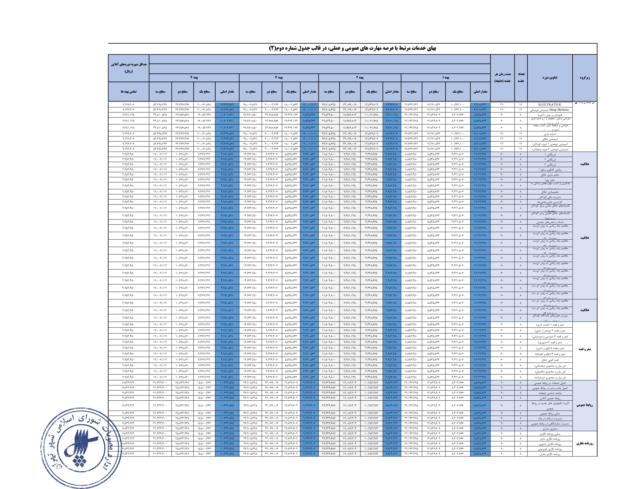 تعيين بهاي خدمات استفاده از مراكز فرهنگي و هنري - سازمان فرهنگي هنري شهرداري تهران در سال 1404