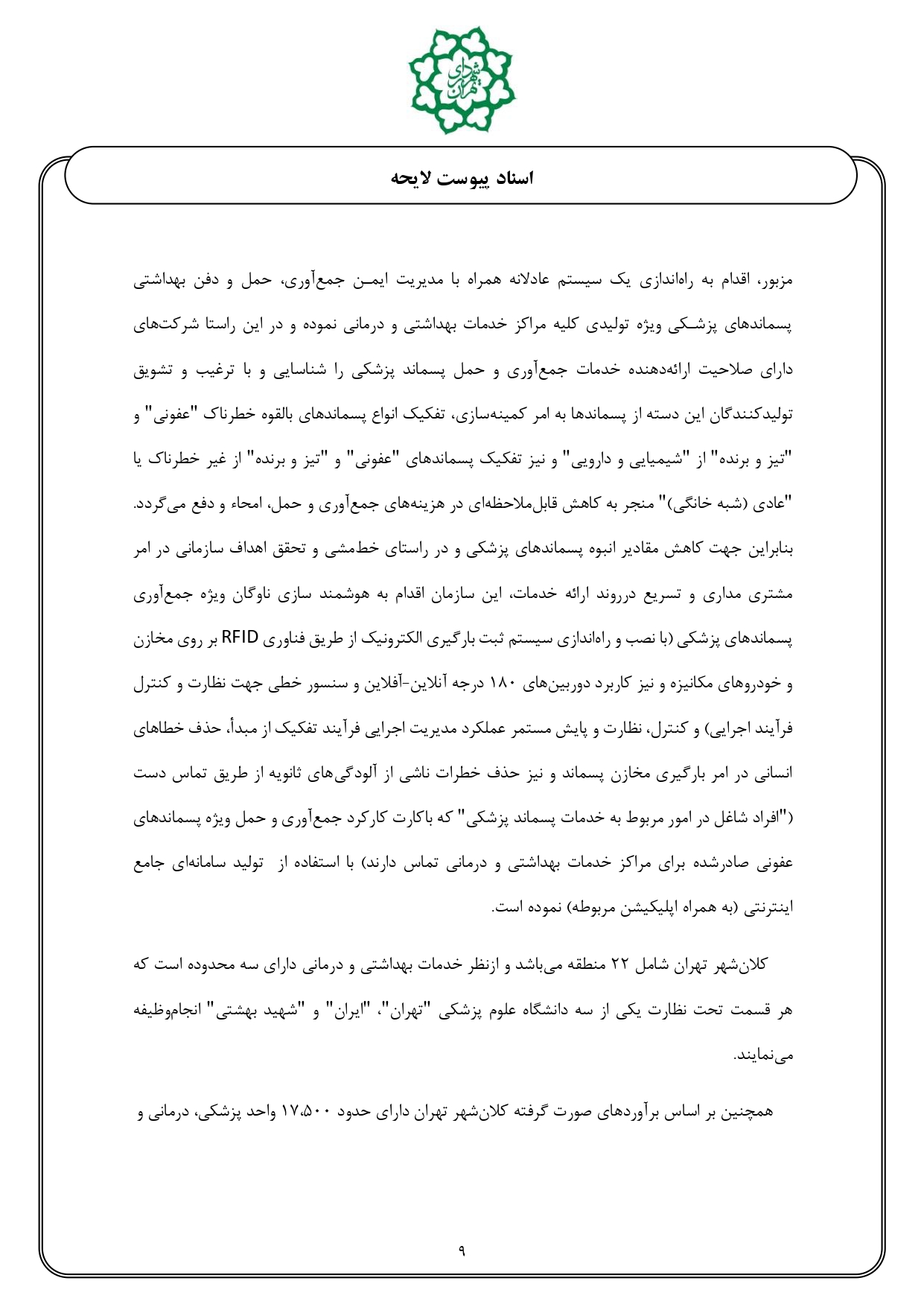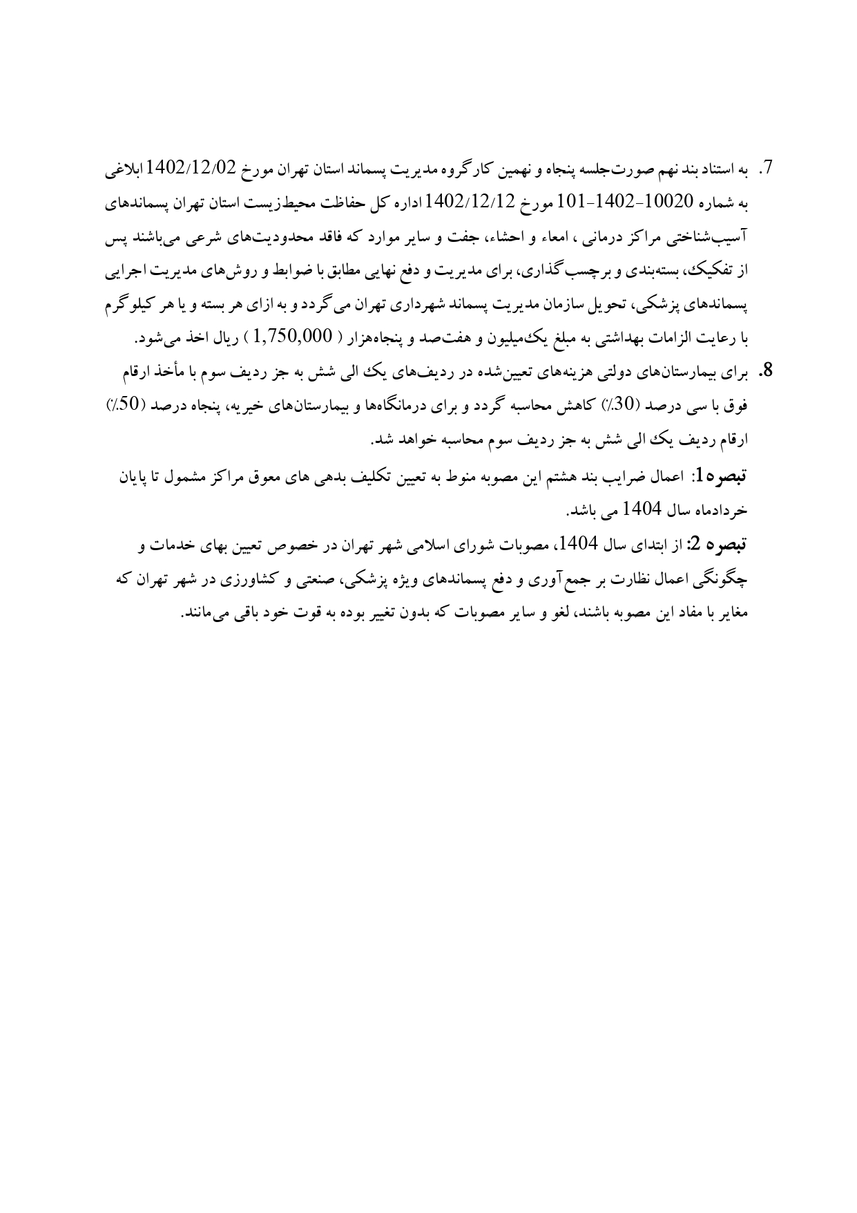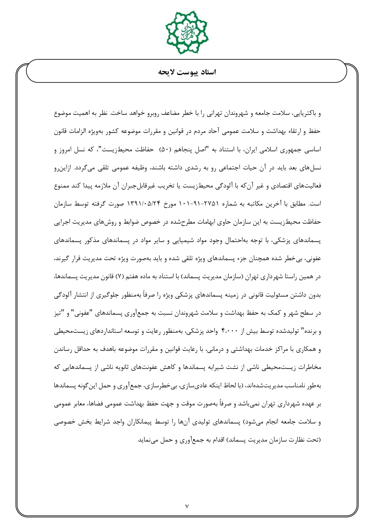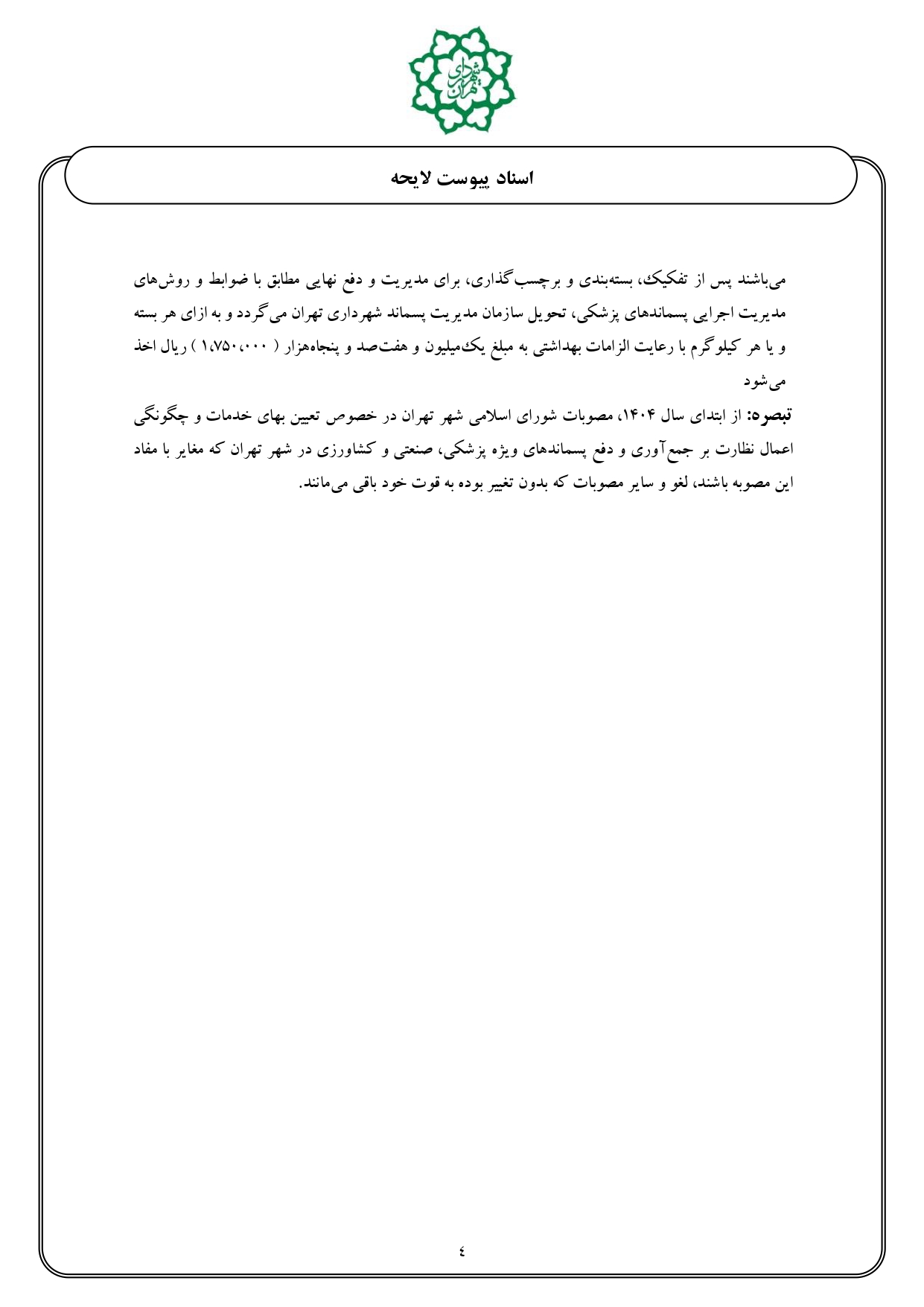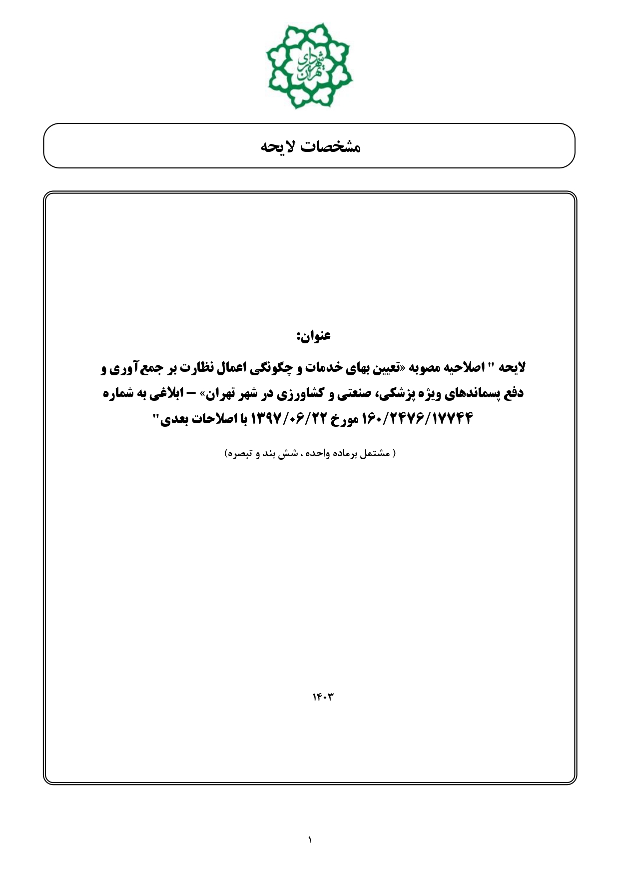 اصلاحيه مصوبه تعيين بهاي خدمات و چگونگي اعمال نظارت بر جمعآوري و دفع پسماندهاي ويژه پزشكي، صنعتي و كشاورزي در شهر تهران» - ابلاغي به شماره 160/2476/17744 مورخ 1397/06/22 با اصلاحات بعدي