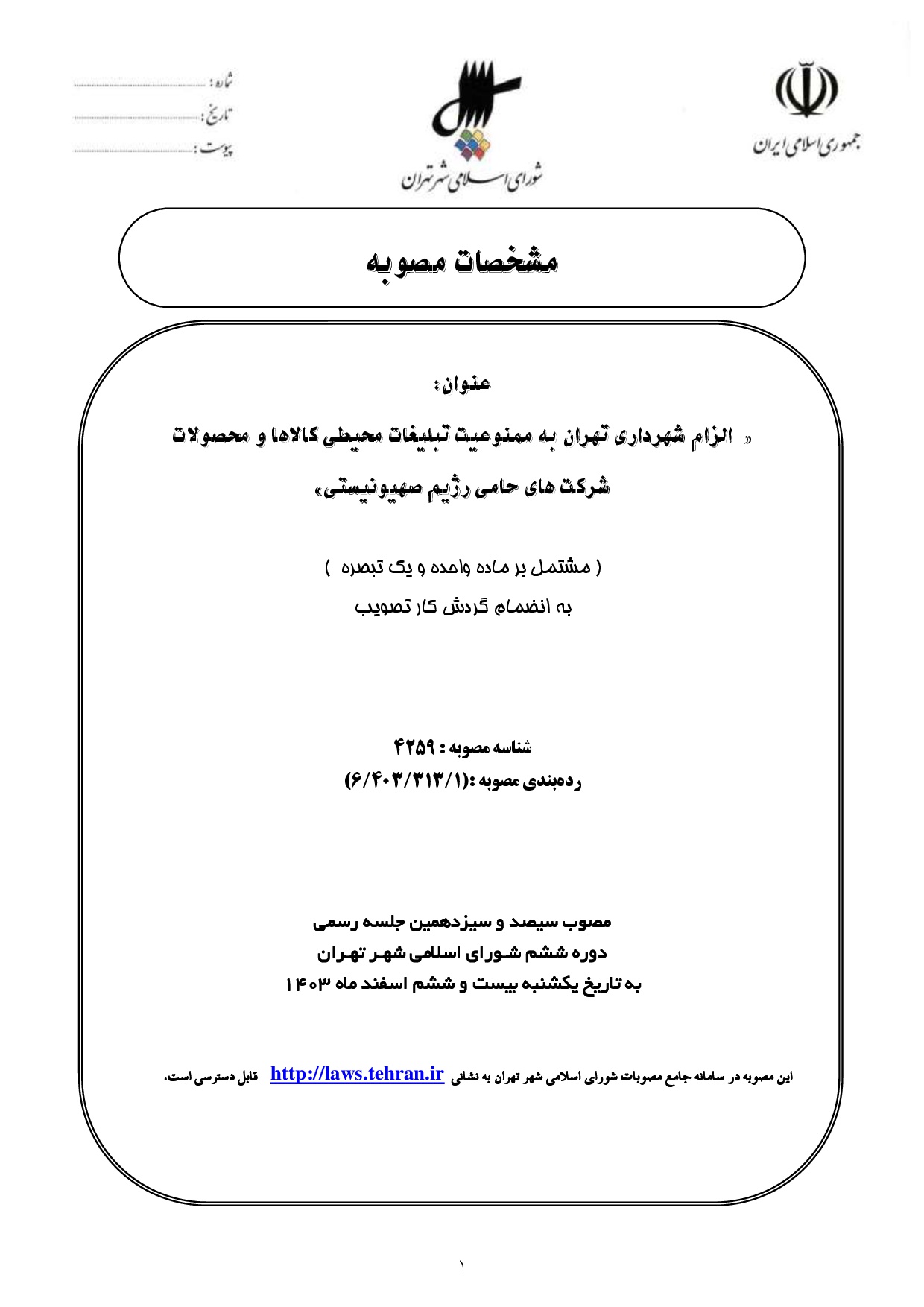 معرفی سامانه جامع مصوبات شورای اسلامی شهر تهران