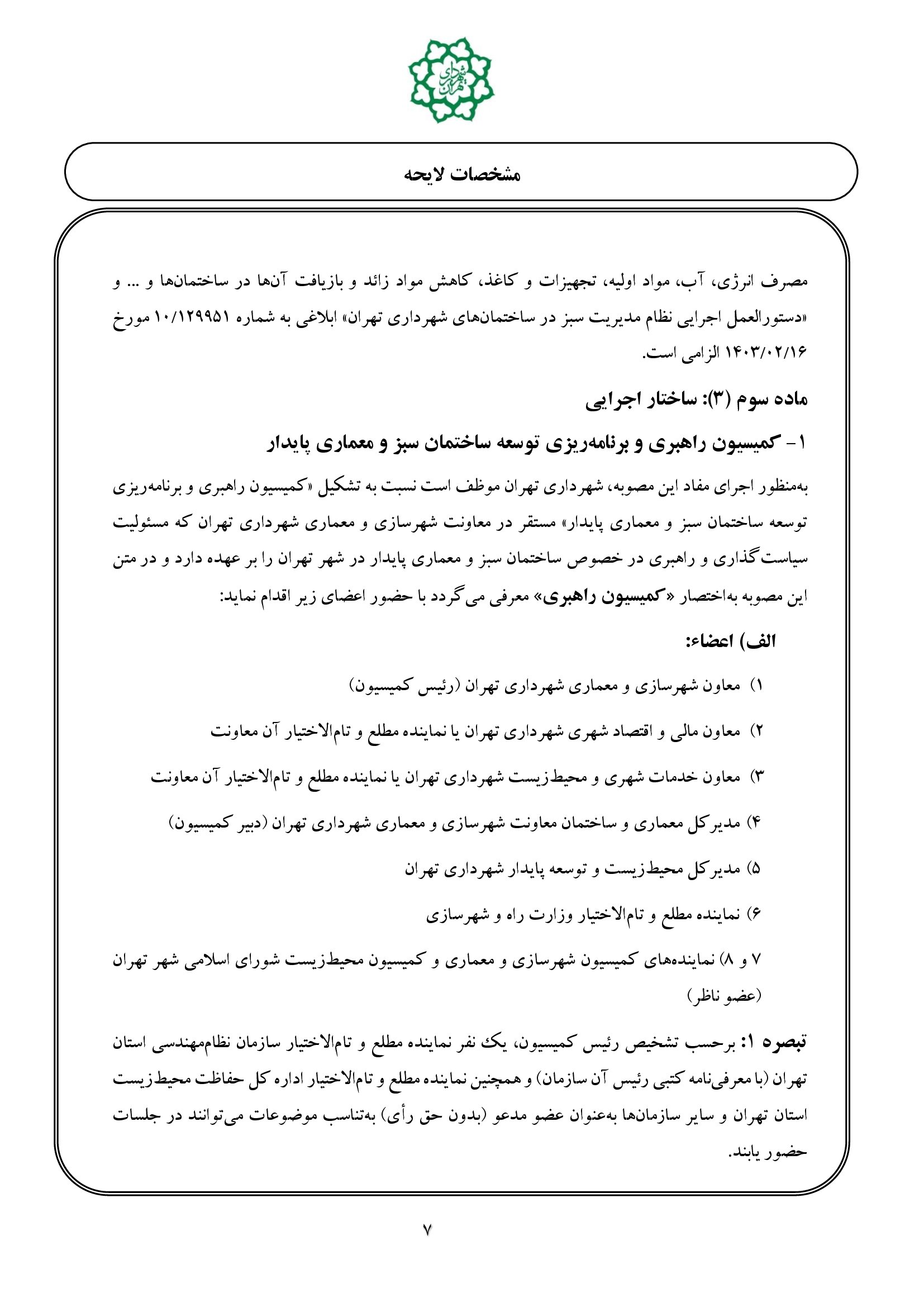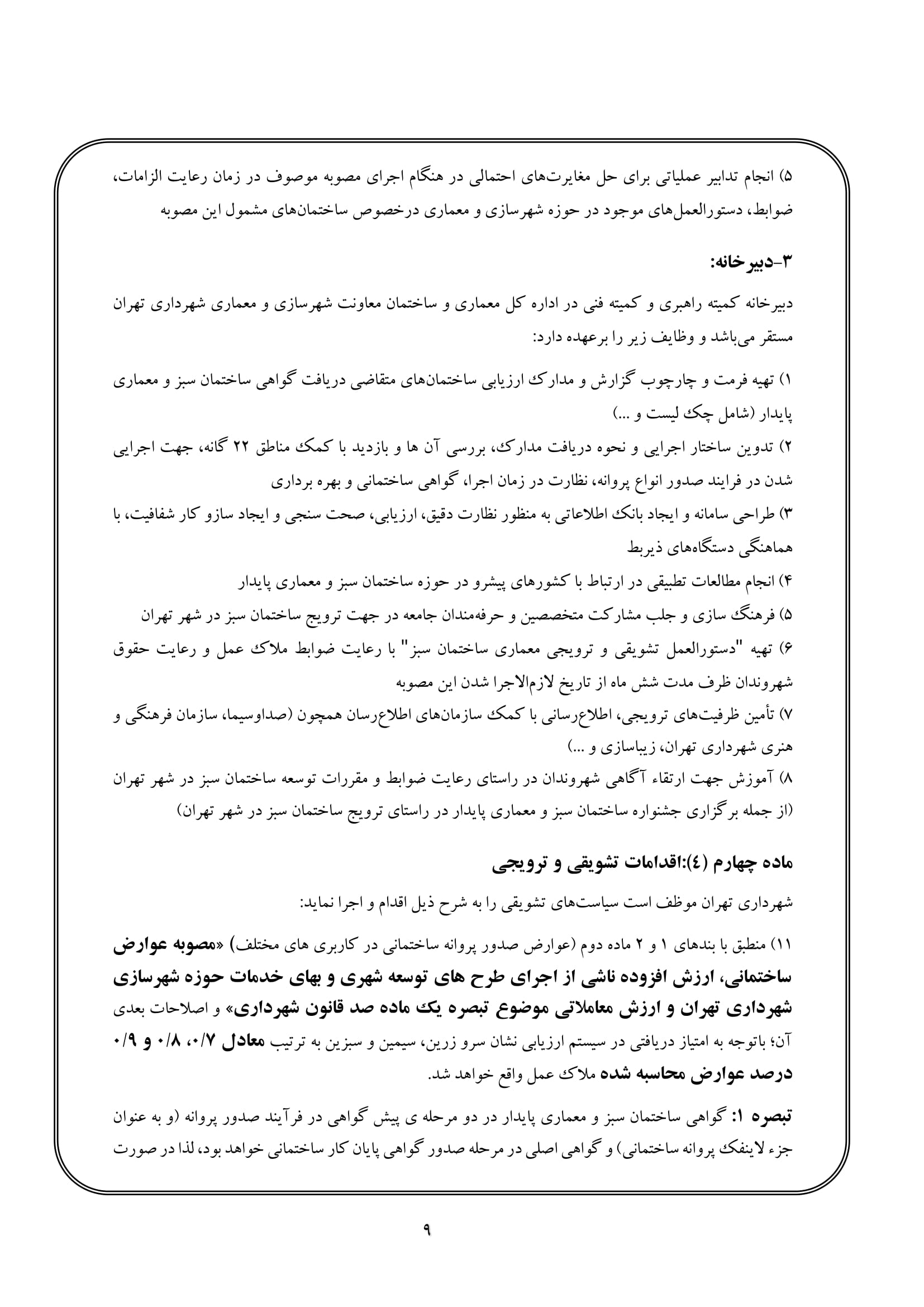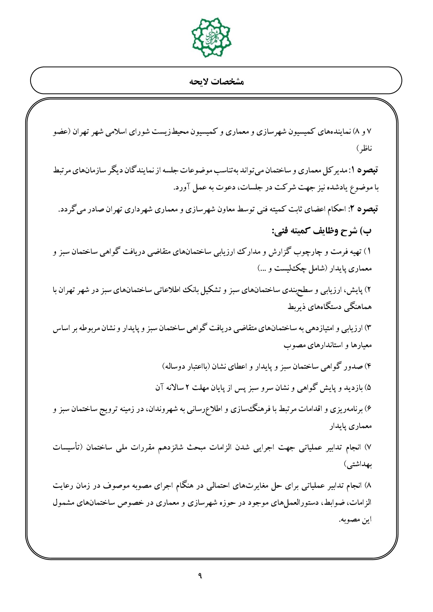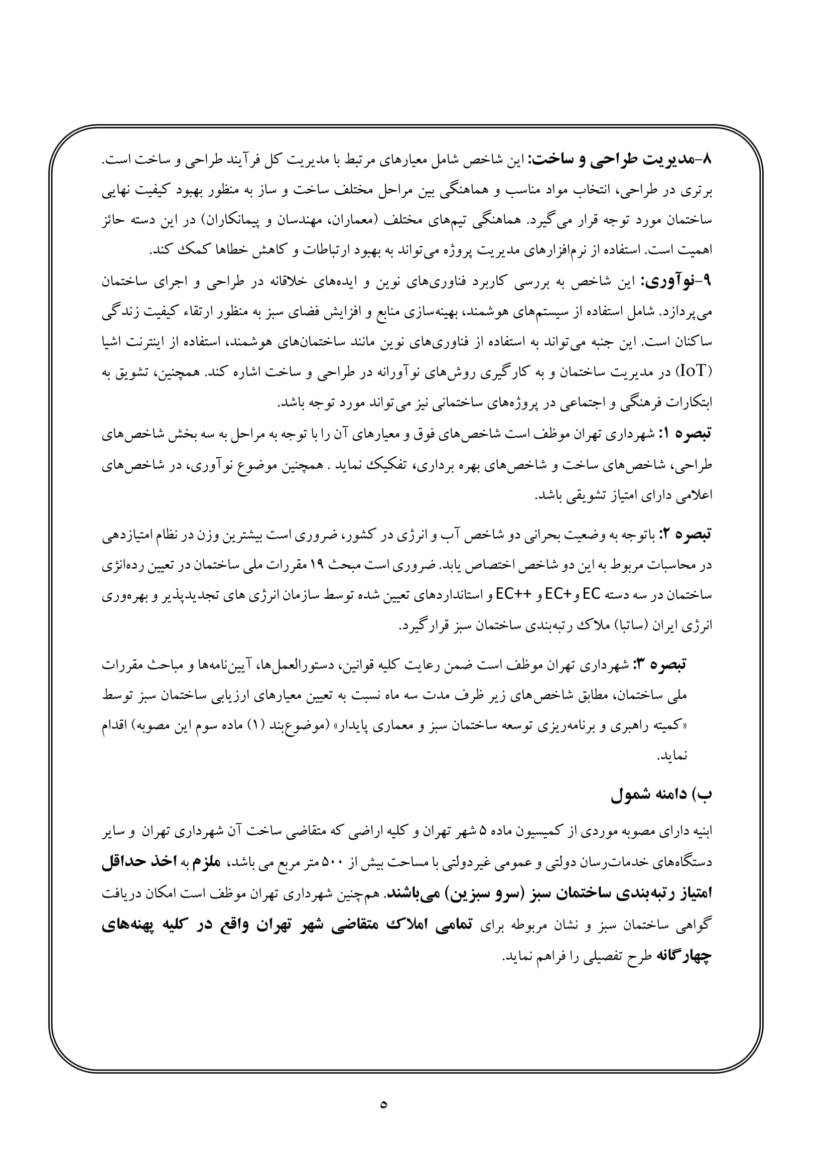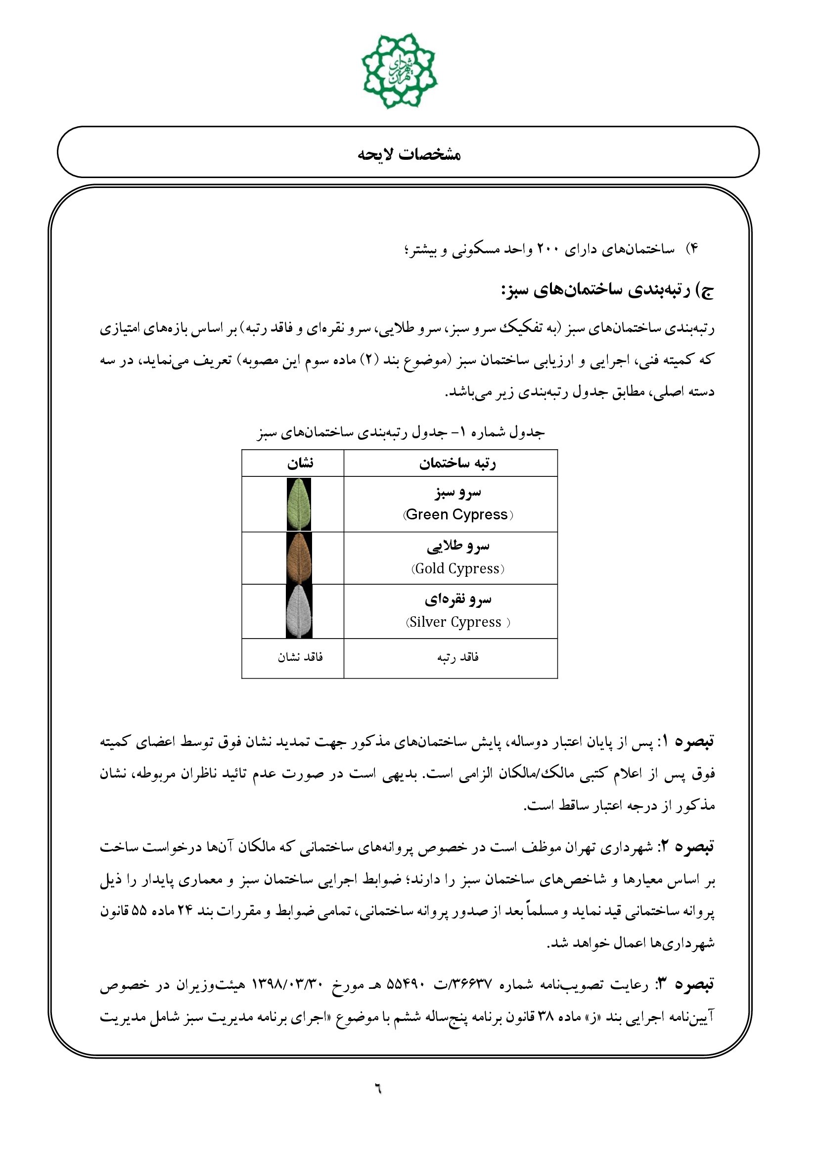 اصلاحيه مصوبه «توسعه ساختمان سبز و معماري پايدار در شهر تهران» - ابلاغي به شماره 160/2812/8480 مورخ 1400/05/05