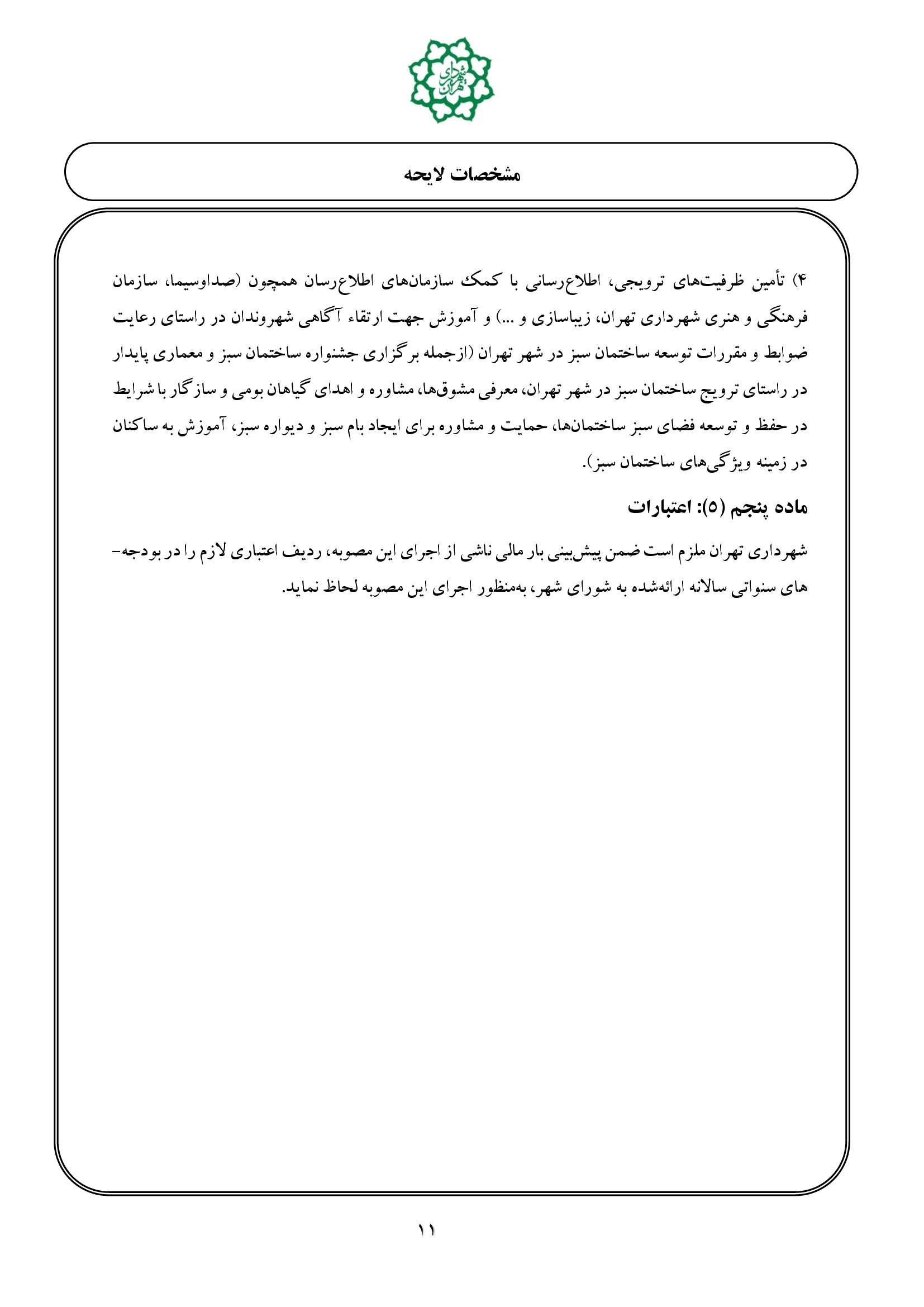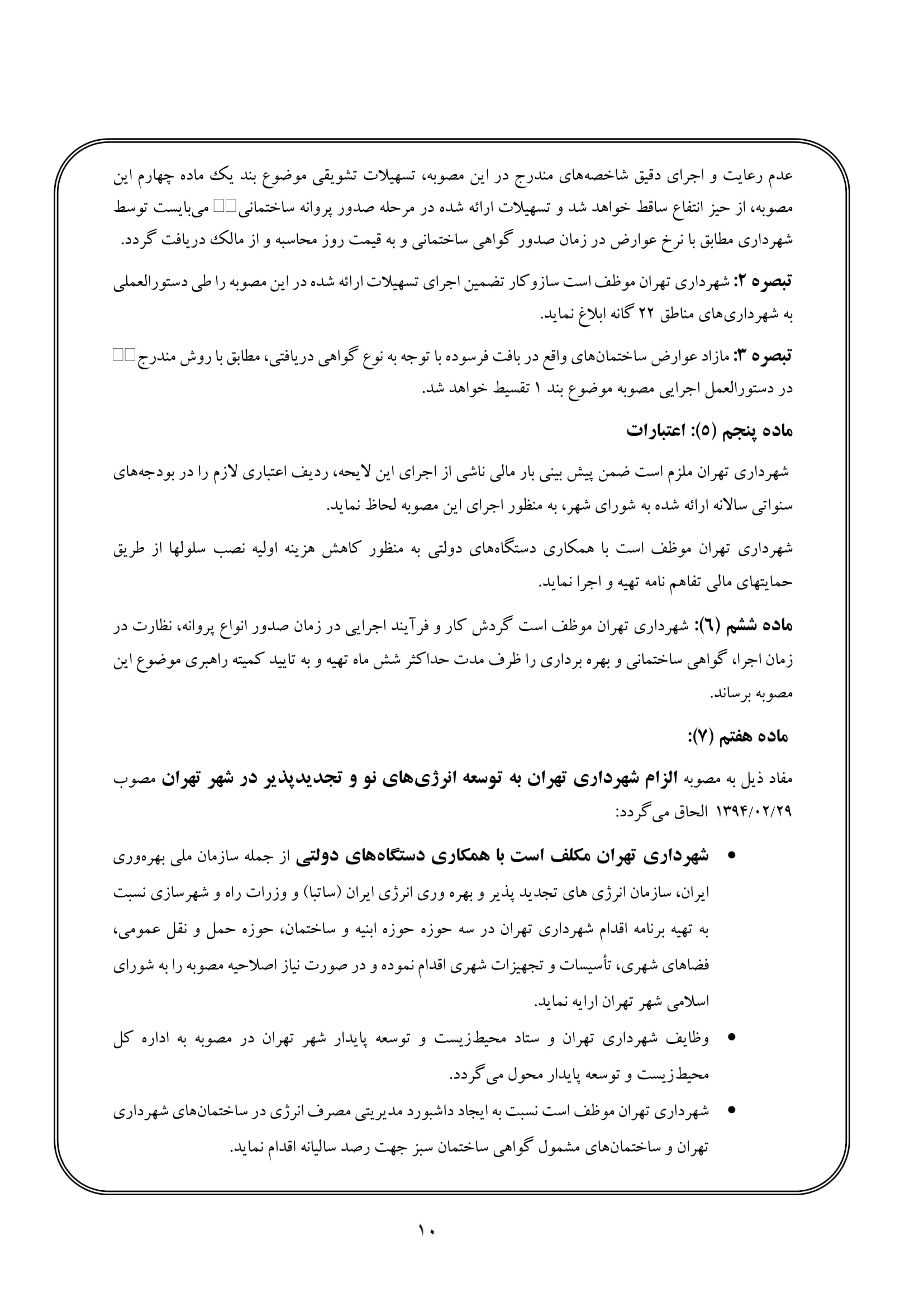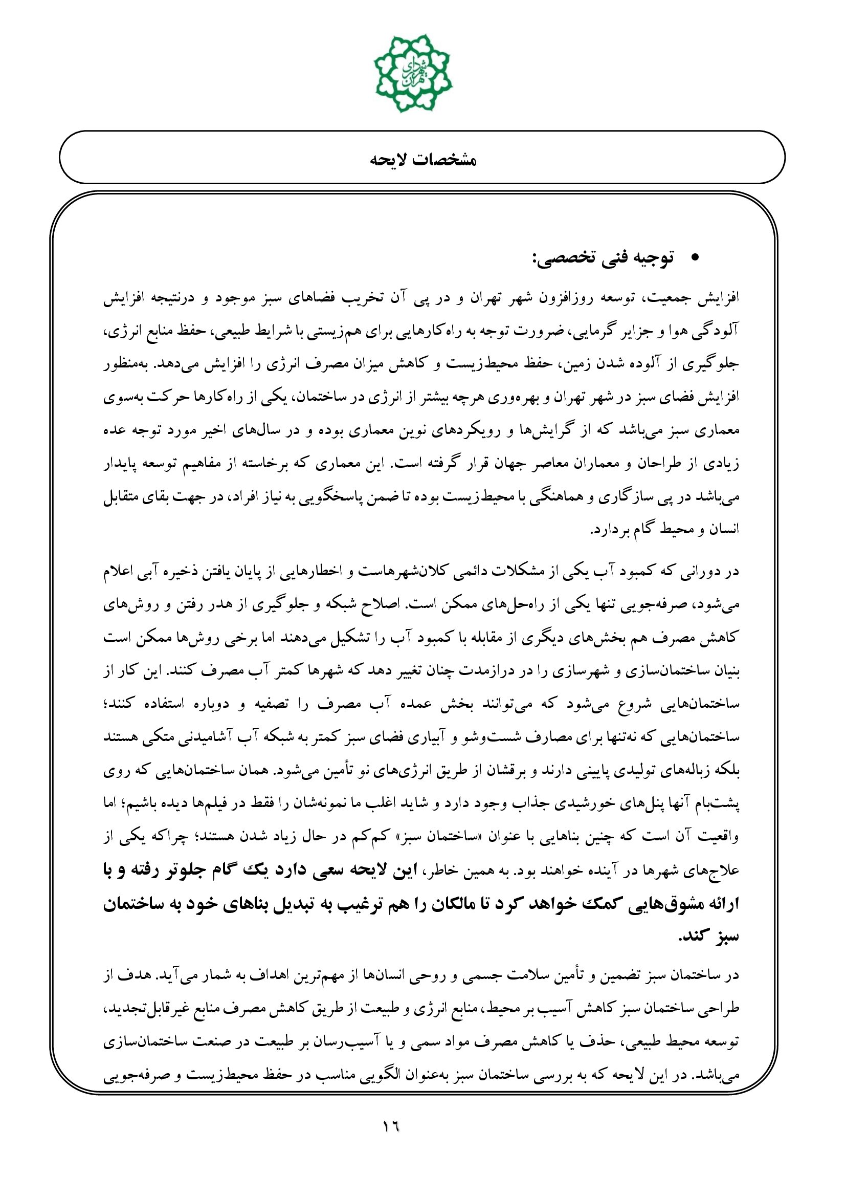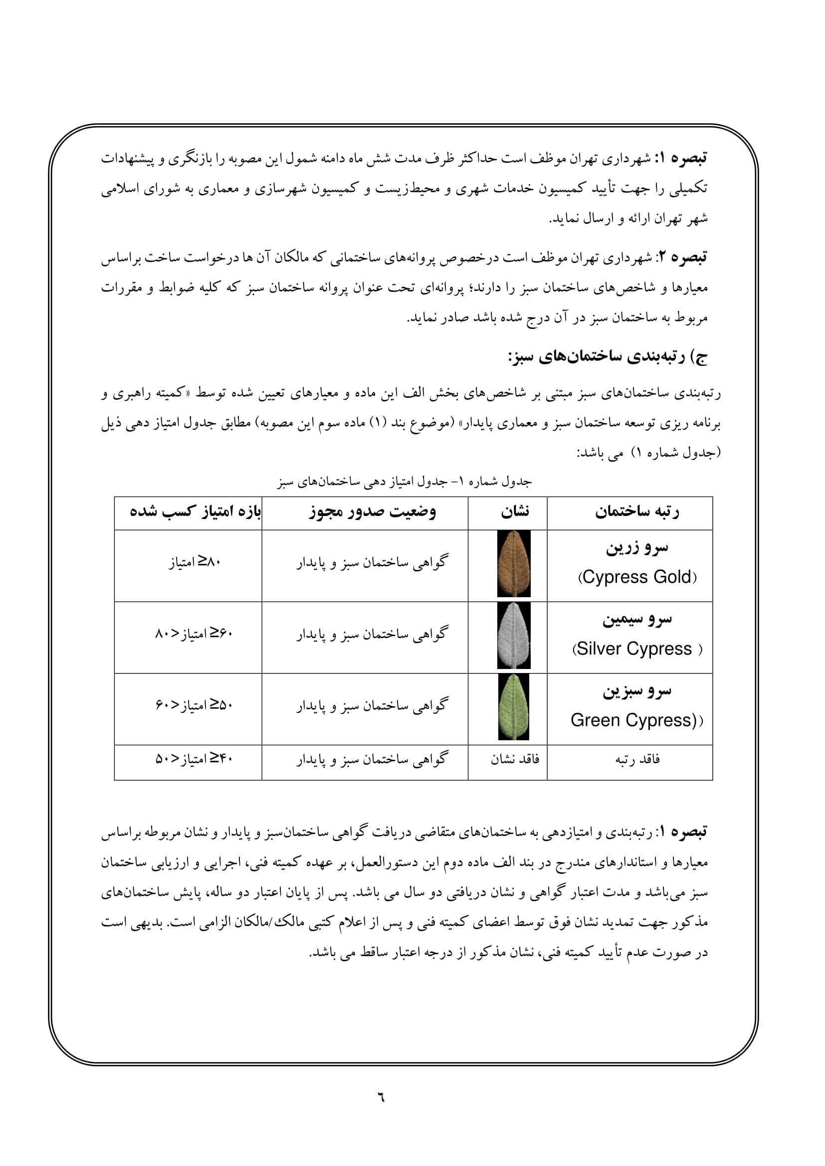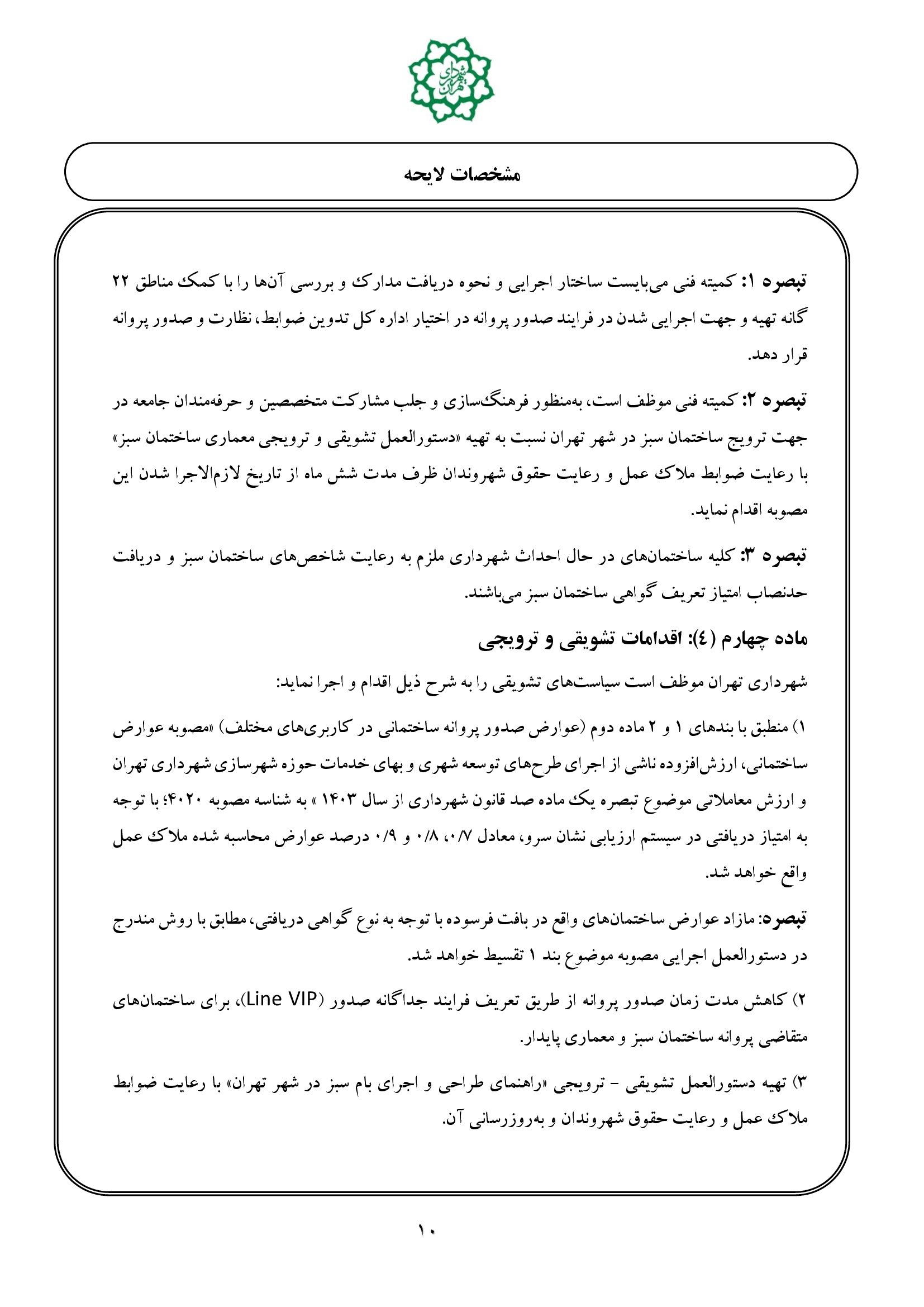 اصلاحيه مصوبه «توسعه ساختمان سبز و معماري پايدار در شهر تهران» - ابلاغي به شماره 160/2812/8480 مورخ 1400/05/05