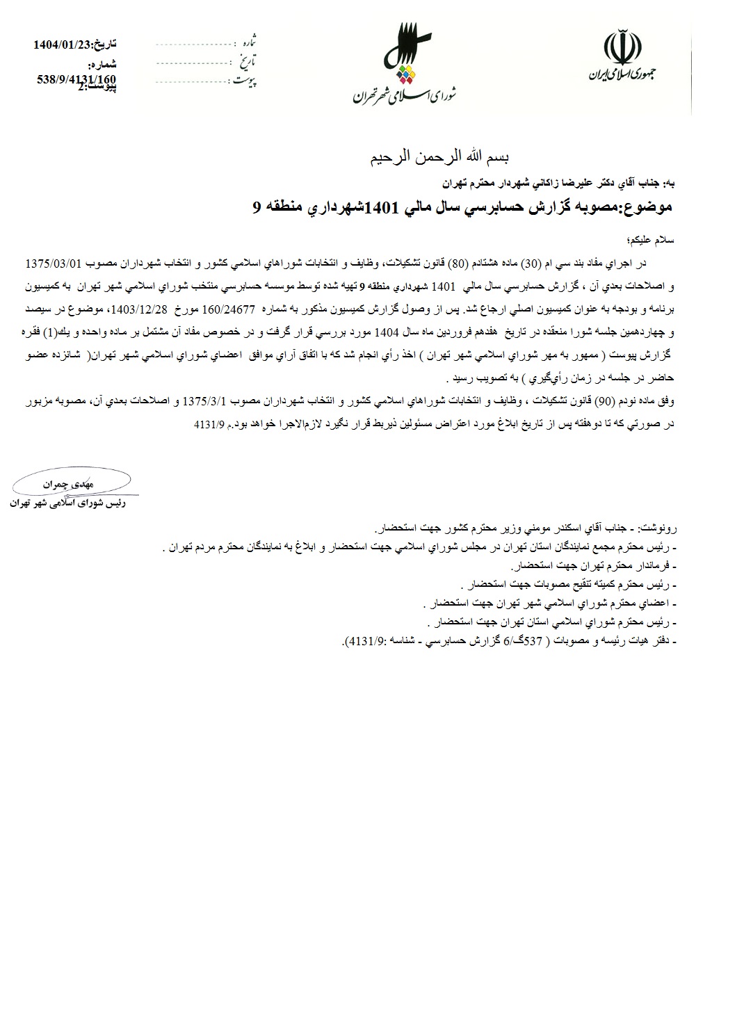 گزارش حسابرسي سال مالي 1401 شهرداري منطقه 9