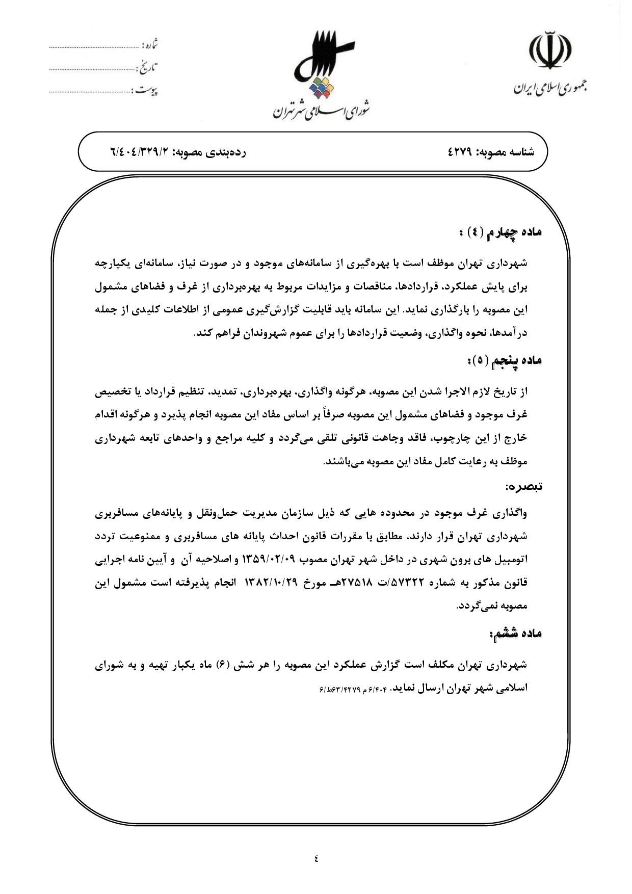 ساماندهي و بهرهبرداري از غرف و فضاهاي موجود در بوستانها و ساير فضاهاي عمومي متعلق به شهرداري تهران